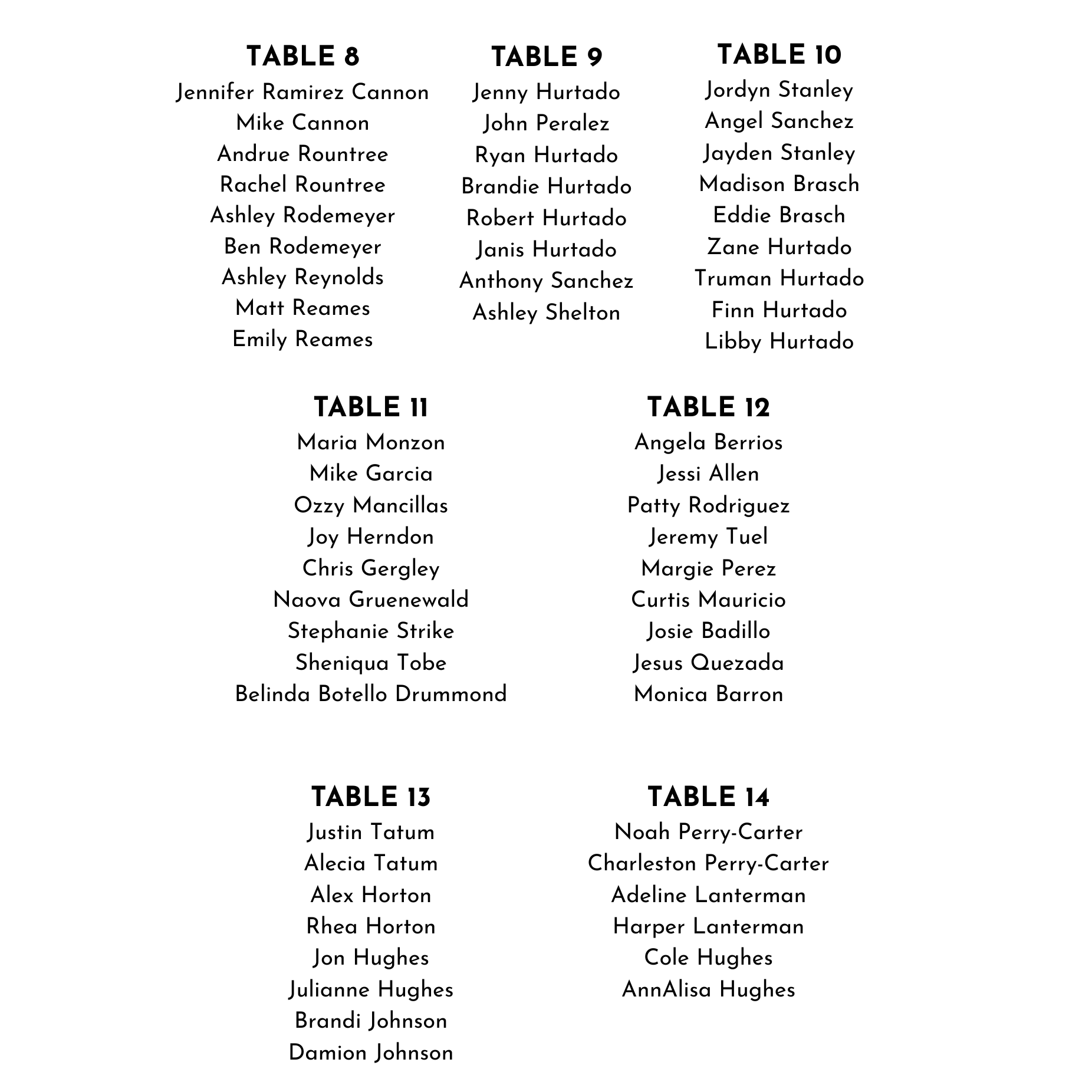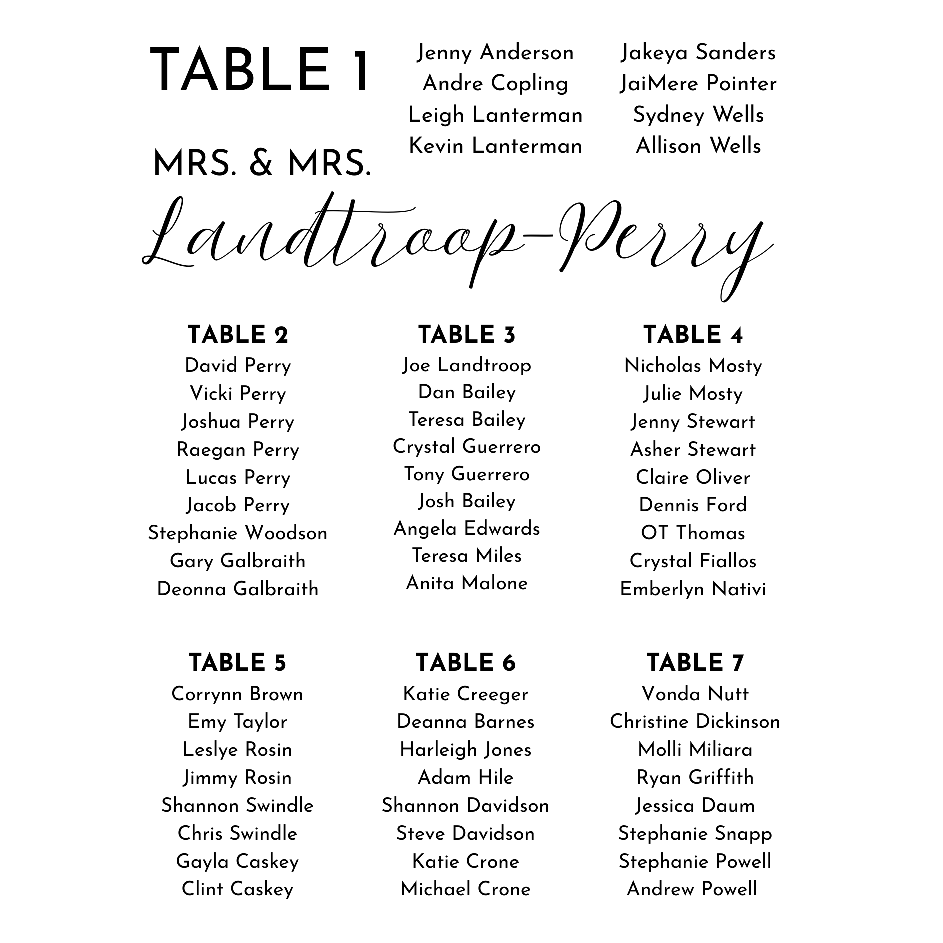 Your seating assignment is listed below. At the wedding, QR codes will be available to scan to see this information, as well.
