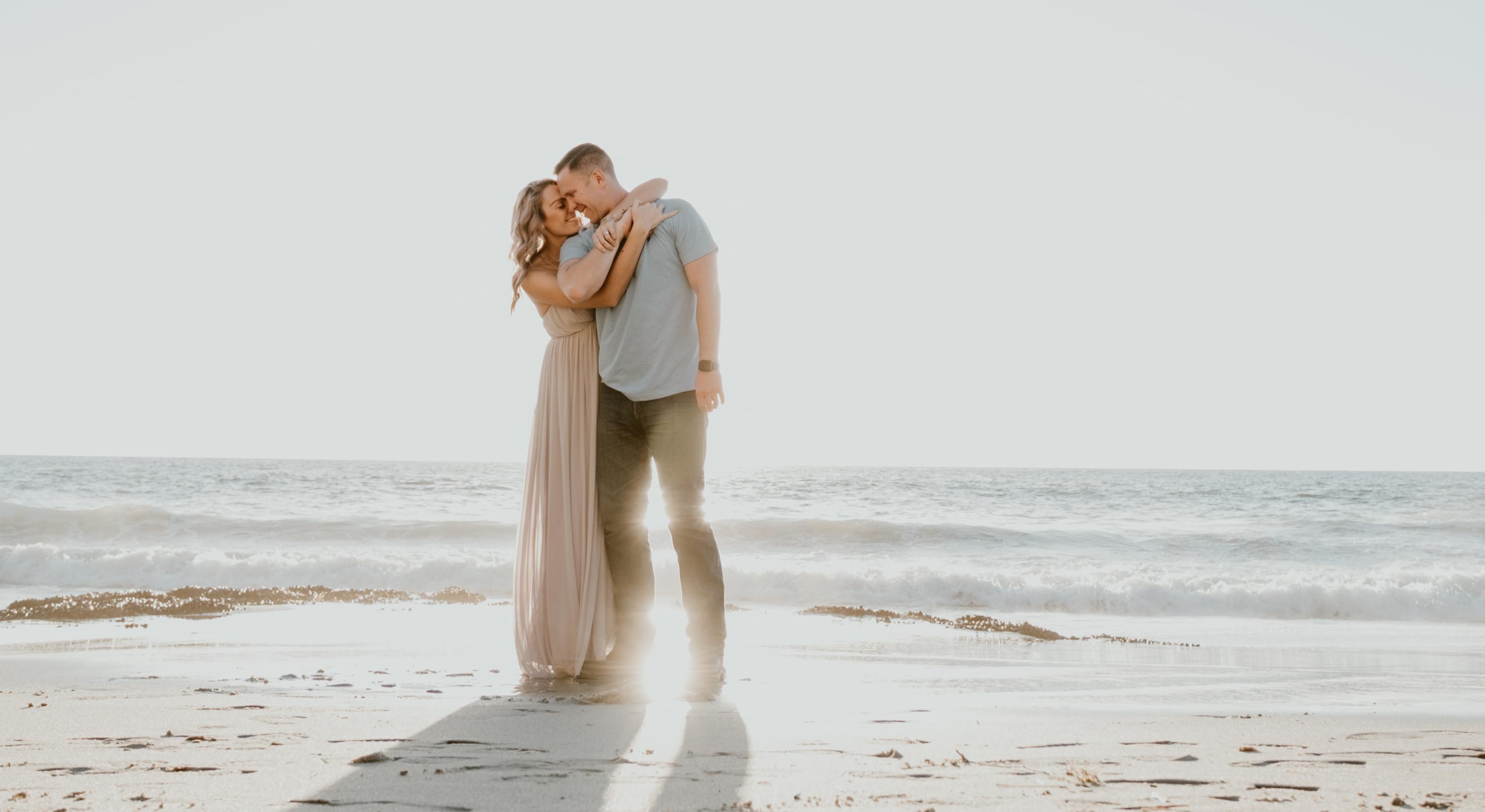 Christian and I met through mutual friends because he saw me in a photo and was incessantly asking my friend Melissa if he could meet me. After repeated naggings I finally agreed to an awkward double date with Melissa and her boyfriend that I did not want to go on. Just like I thought, I was not impressed by him at the date and Melissa and I left that night to go an event in San Diego. To my (not happy) surprise, Christian and Melissa's boyfriend decided to spontaneously join us in San Diego the next day. Begrudgingly, I again went out with the 3 of them and a bunch of our other friends to a bar. Christian and I were placed on a beer pong team together and actually started hitting it off. I thought he was cute and funny and by the end of the night, he somehow convinced me to walk along the beach next to where the bar was under the stars where he stole his first kiss. I am the first girl he has ever really dated and he has told me since then that he fell in love with me that night (swoon). The rest is history.