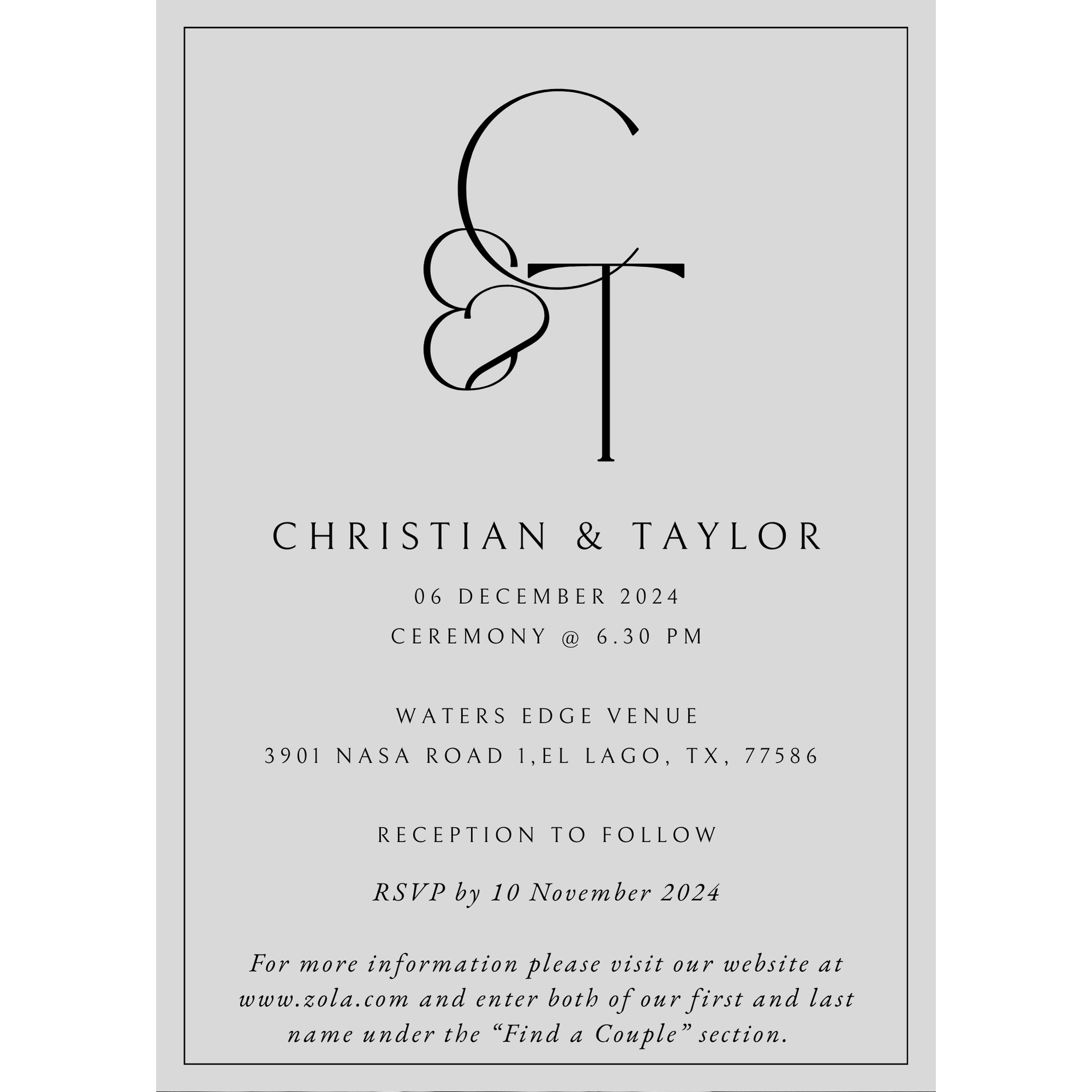 If you RSVP through the website and we have not reached out before November 10, 2024, please contact us so we can make sure everyone gets a seat on our special day!