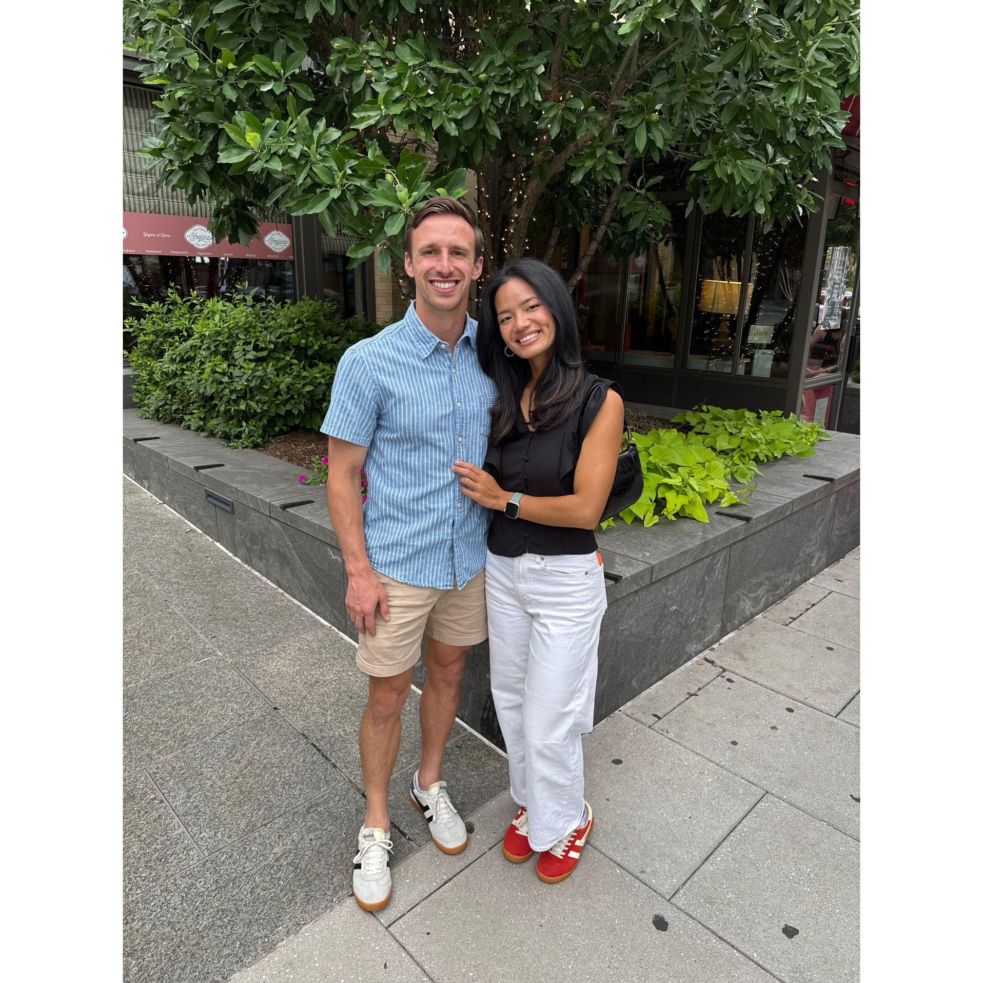 The Lord has a funny way of reminding us that his plans are better than our plans. Drew and Cing were both apprehensive about dating apps but the Lord knew that this was the only way to bring together a girl from Pennsylvania and a boy from Maryland. Cing even needed a little nudge from a friend (thanks Abby!). Neither of them thought too much about their FaceTime date on a random Friday night in December. However, after a two-hour FaceTime in which neither of them wanted to say goodbye, they both knew something was in the air. After two lovely dates meeting in the middle in Frederick, it was clear that their hearts were drawn to each other. Let the long distance begin!! The next 8 months were filled with many trips on the PA turnpike, a lot of life processing, and tons of laughter. It didn't take long to realize that they bring out the best in one another and push each other to be more like Jesus. Here's to forever!