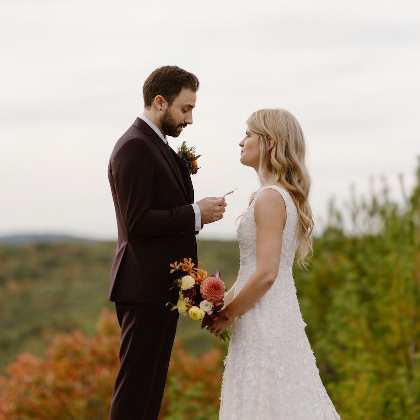 We're excited to show you our 100 favorite photos from our wedding day in the Berkshires last September. Since our ceremony was private, we wanted to include you as much as possible through photos here, specifically highlighting our mountaintop moment.