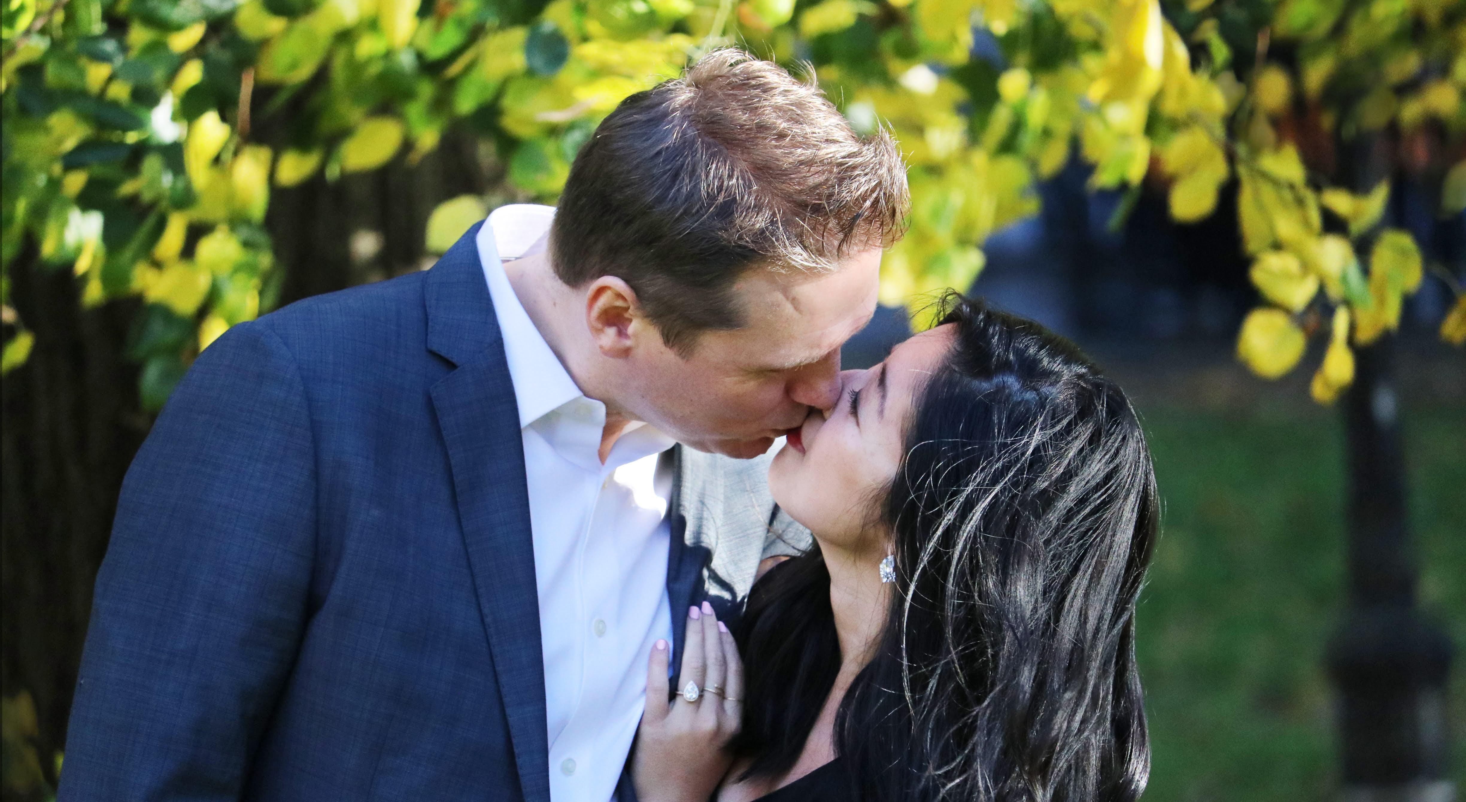 He planned a lovely picnic in Prospect Park. The sun was shining brightly, despite the forecast for rain. He played guitar and we both lounged around, singing and laughing all afternoon. It was already a perfect day, but it became unforgettable when he pulled out a beautiful ring and two bottles of our favorite bubbly! It was so much fun getting engaged that, a week later, we went for a hike and did it again. At the top of the mountain, he got down on one knee and proposed again!