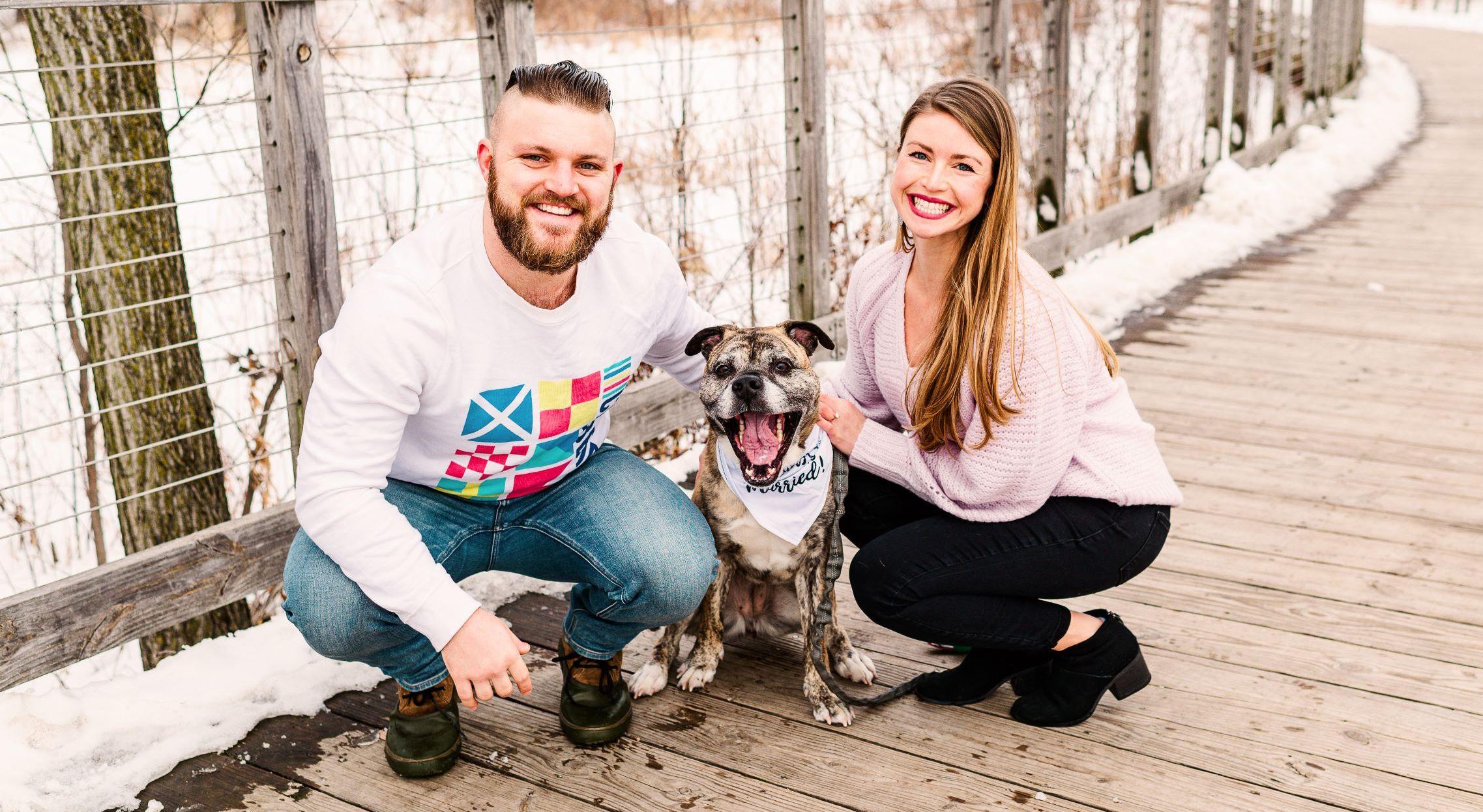 It all began shortly after Trevor moved from Wisconsin to St. Louis Park, in the same neighborhood as Courtney! We both were perusing the Bumble dating app one Saturday afternoon in November. He swiped right because of Courtney’s big smile and Courtney did because she thought Trevor had a kind & handsome face. A date was quickly planned at The Loop in the West End nearby. Trevor arrived first, nervously sitting at the bar awaiting Courtney’s arrival, “I’ll be the guy in the blue plaid shirt”, he texted. Courtney walked in a few minutes late, per usual, and we started our memorable first date filled with good cocktails, conversation & chemistry. The snowy afternoon turned to snowy evening and the date continued. A round of drinks turned to dinner where Trevor learned Courtney was vegan. All the usual questions followed, “but why?” “for the animals?” “you don’t miss burgers even a LITTLE?”. We ambled to the next bar, Cooper’s, to carry on. Courtney remembers the love on Trevor’s face as he talked about his family and how easily he made her laugh. We both reluctantly called it a night as bar close came, but not without making plans for a second date, the very next day, doing one of Courtney’s favorite things: grocery shopping. Courtney smiled on the entire drive home that first night. Trevor was excited for the first time in his life to go grocery shopping. The rest, as they say, is history.