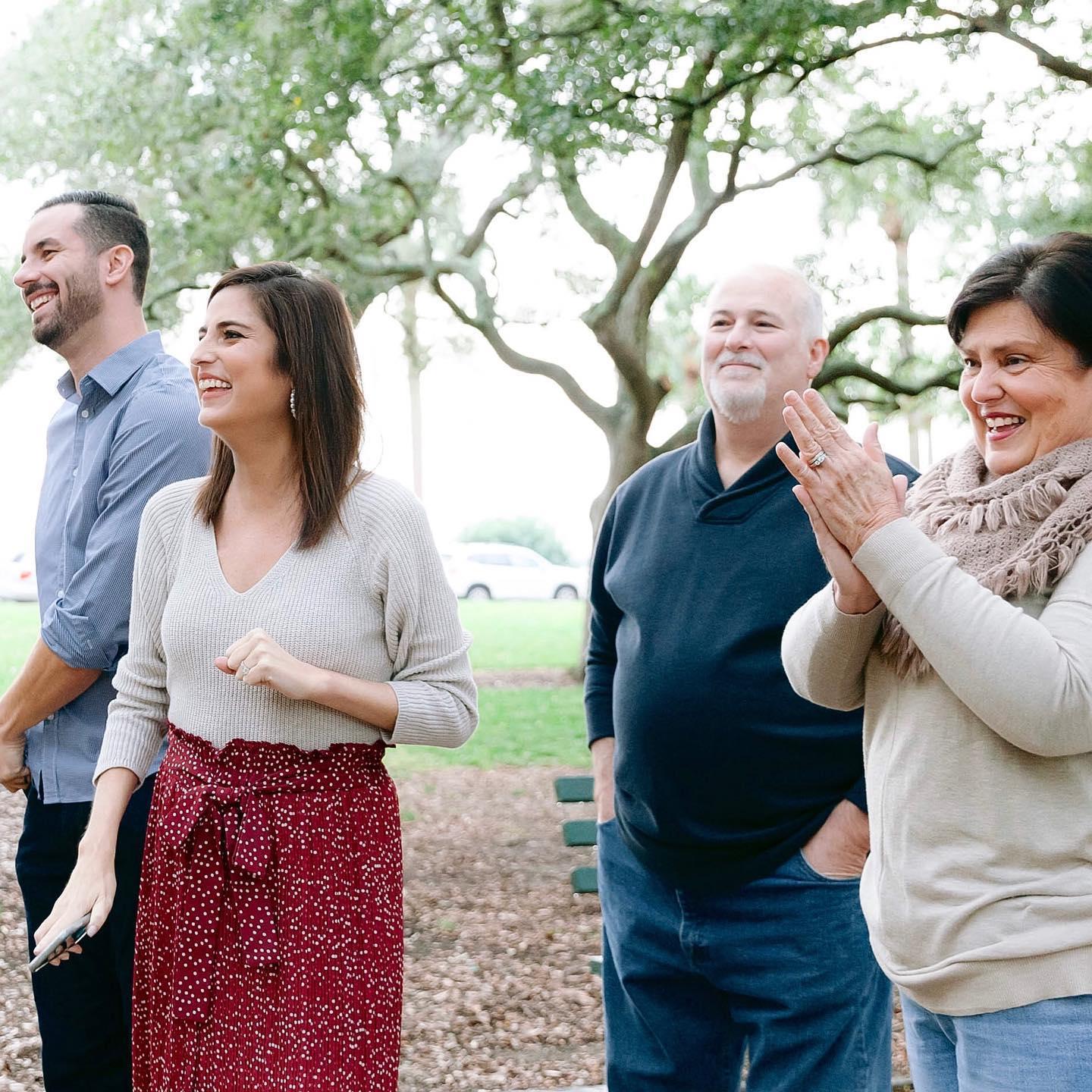 What I thought was a family photo shoot booked by my sister, who loves family pictures just as much as I do. Turned out to actually be an engagement shoot booked by Frank earlier in the week and Caro and my parents were in on the whole plan. Those of you who know me, know I am very hard to surprise — but he got me soo good! Before the photo shoot I told Frank I was leaving my purse and phone in the car so that I wouldn’t have bulky pockets for the pictures and even suggested he do the same but he assured me it wouldn’t show. (Ha! Good thing I didn’t ask what was in his pockets!) We got a few family shots in and then it was time for couples. We get a smiling picture, a kiss, and then I feel him reach for his pocket. My thoughts were, “Wow he sure does listen. He’s making sure his pockets don’t look bulky!” HA! I got the biggest surprise of my life! Frank got down on one knee and asked me to marry him with the most beautiful ring and my response was “OF COURSE!” 💕