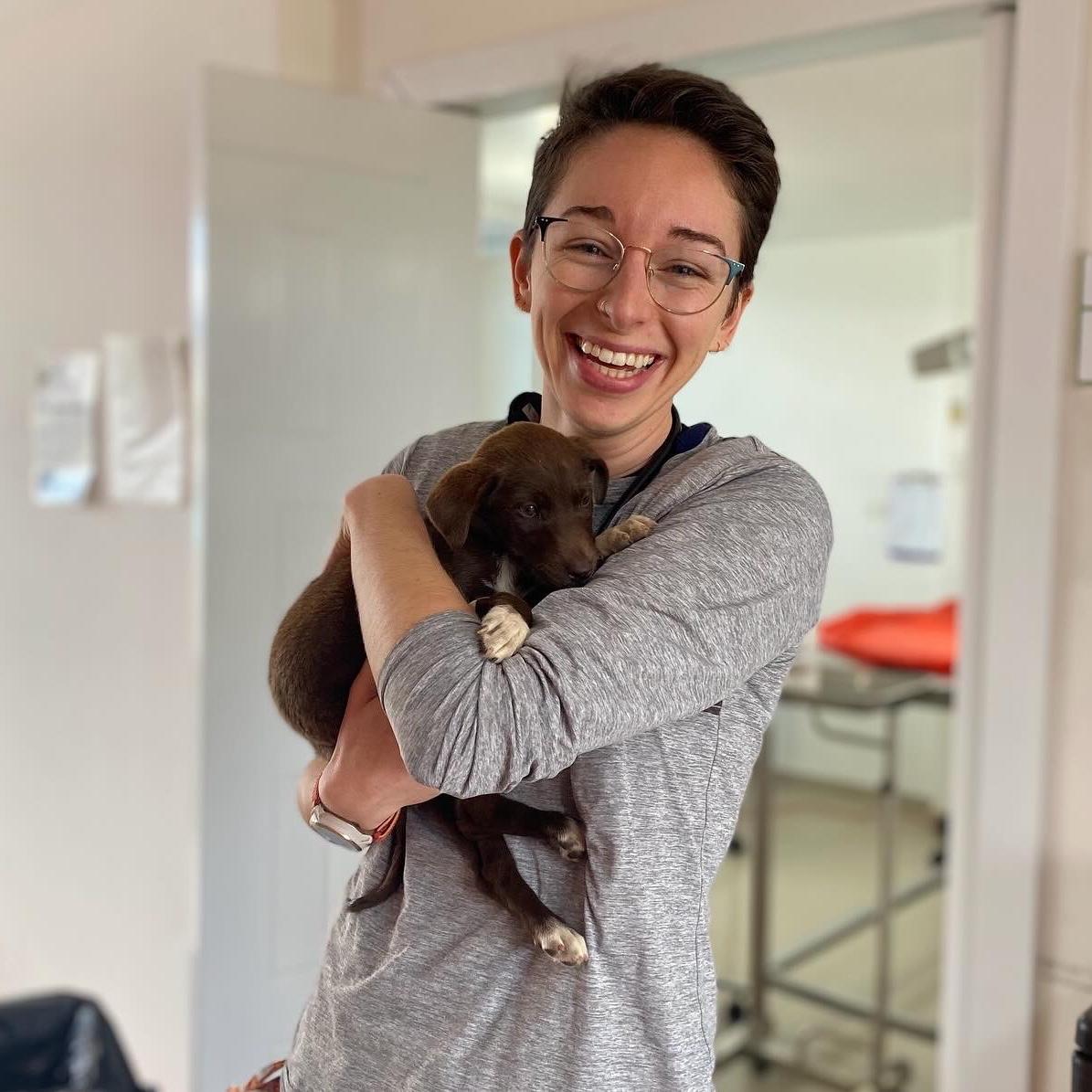 Hannah (she/her) and Alison met during first-year of vet school and have been inseparable ever since! Hannah just moved to California to start her new job as a shelter vet, and begin her new life with her fiancé Marly, and their 5 cats and 2 dogs.