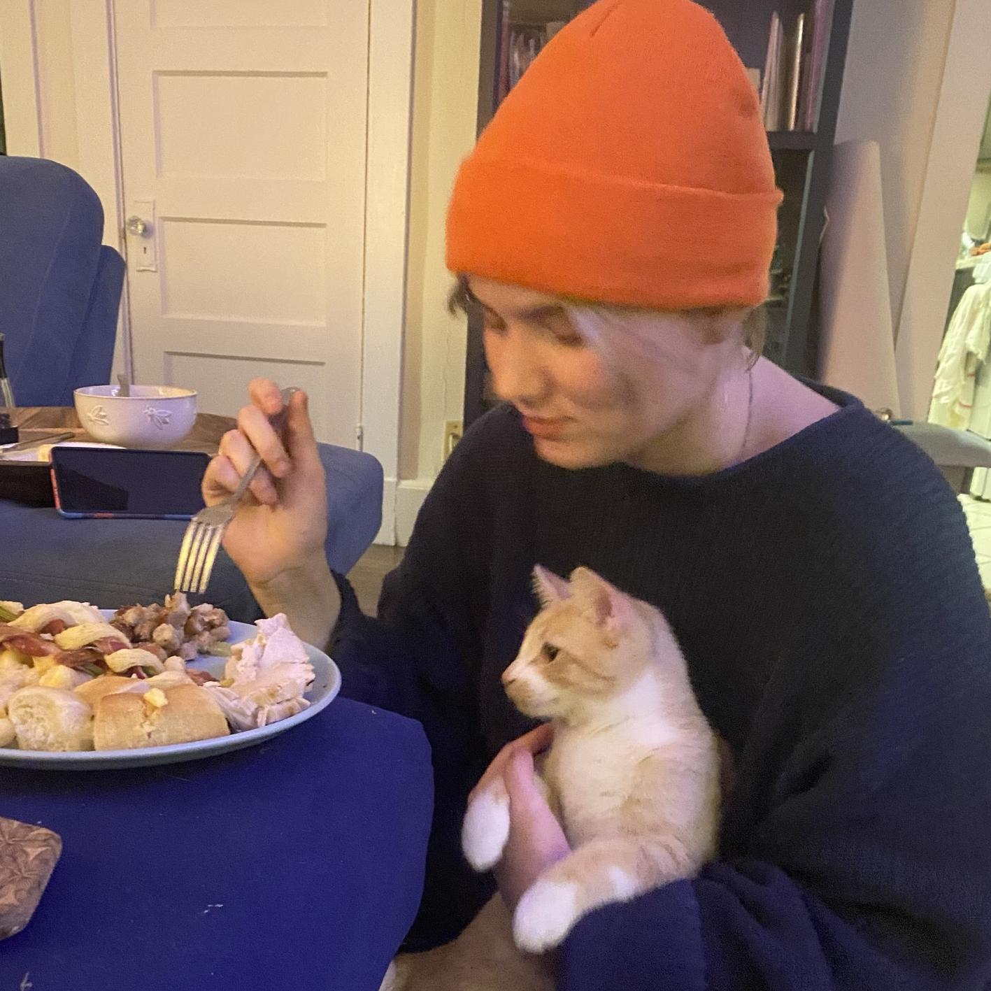 Rachel is so wonderful. she gets all my jokes and knows exactly what to say or not say when ever I need it. The best hugs and truly such a darling person. We share brain cells so it’s never been difficult to for us to understand each other. The picture I used for her profile is one of my favorite thanksgivings! Butter was hatching a plan to steal her turkey.