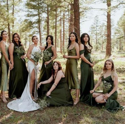 Ženy: dlhé/polodlhé šaty v zelenej palete farieb (inšpirácia nižšie).