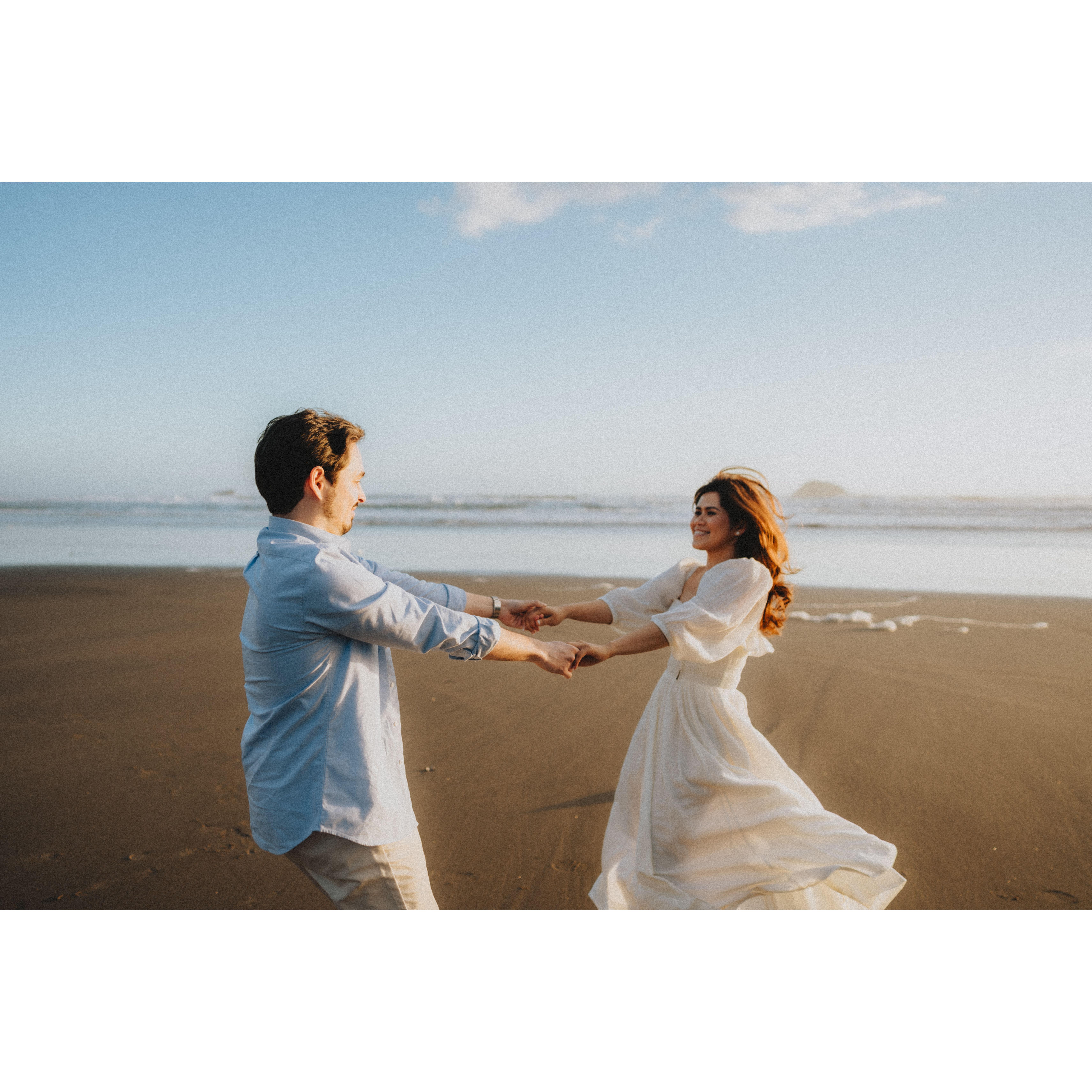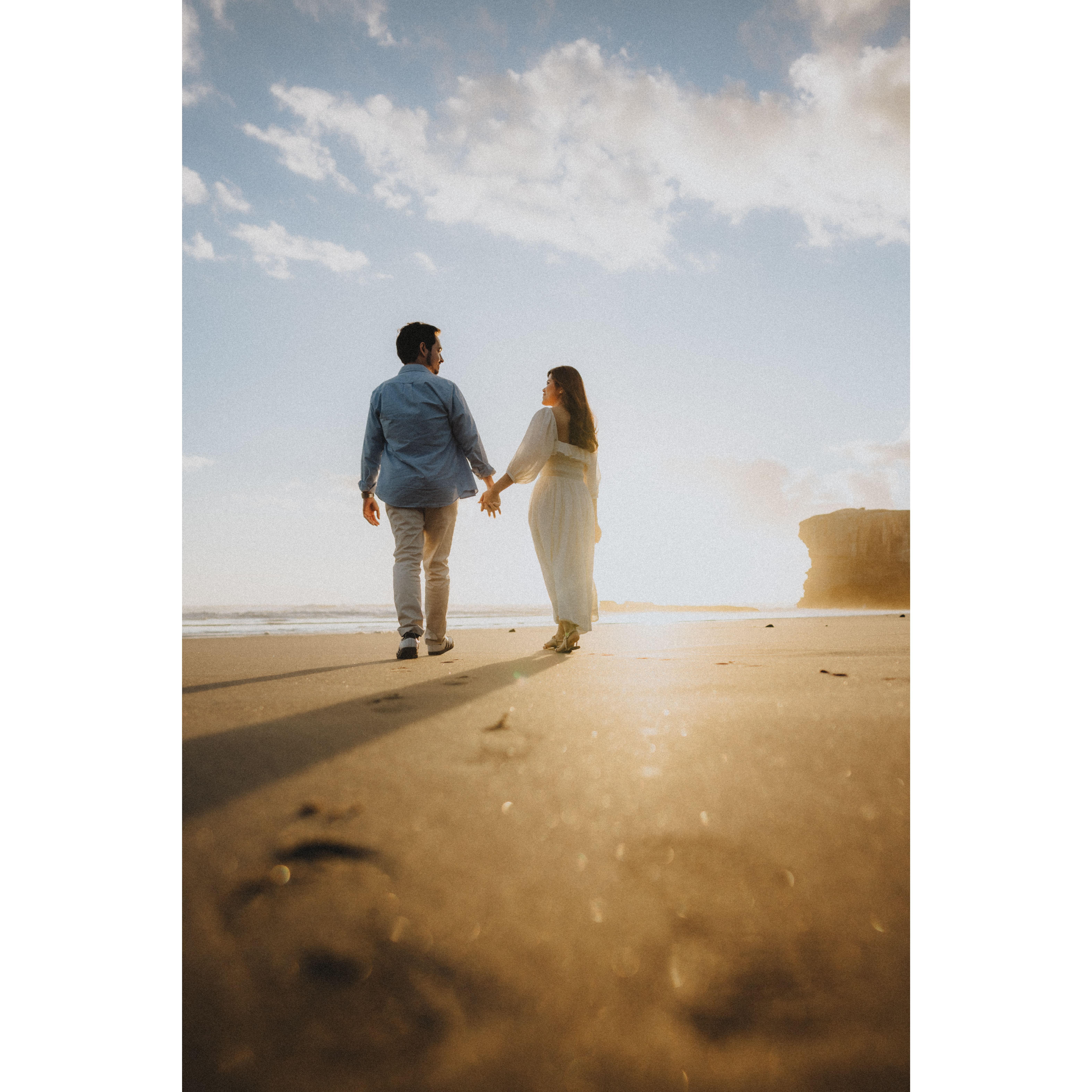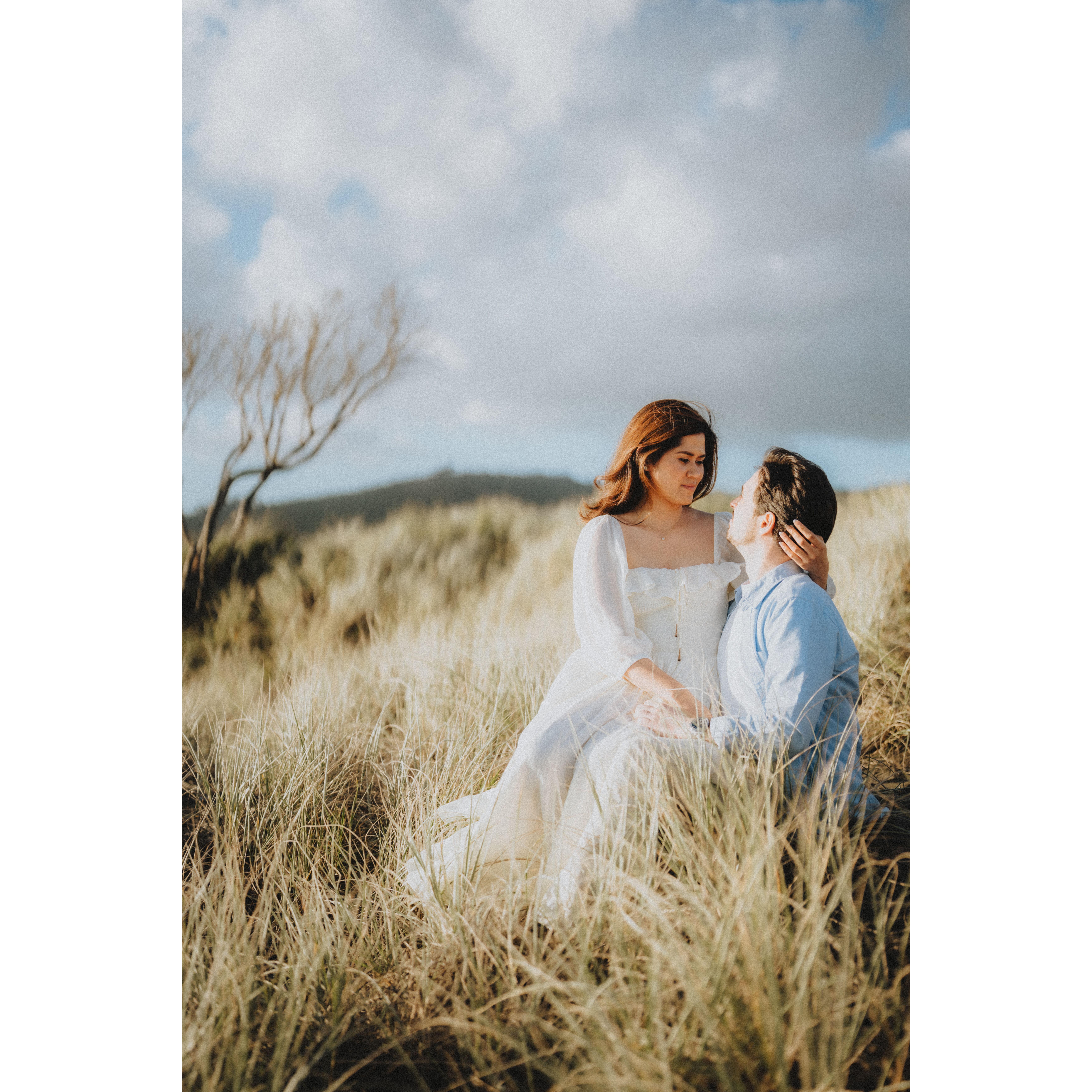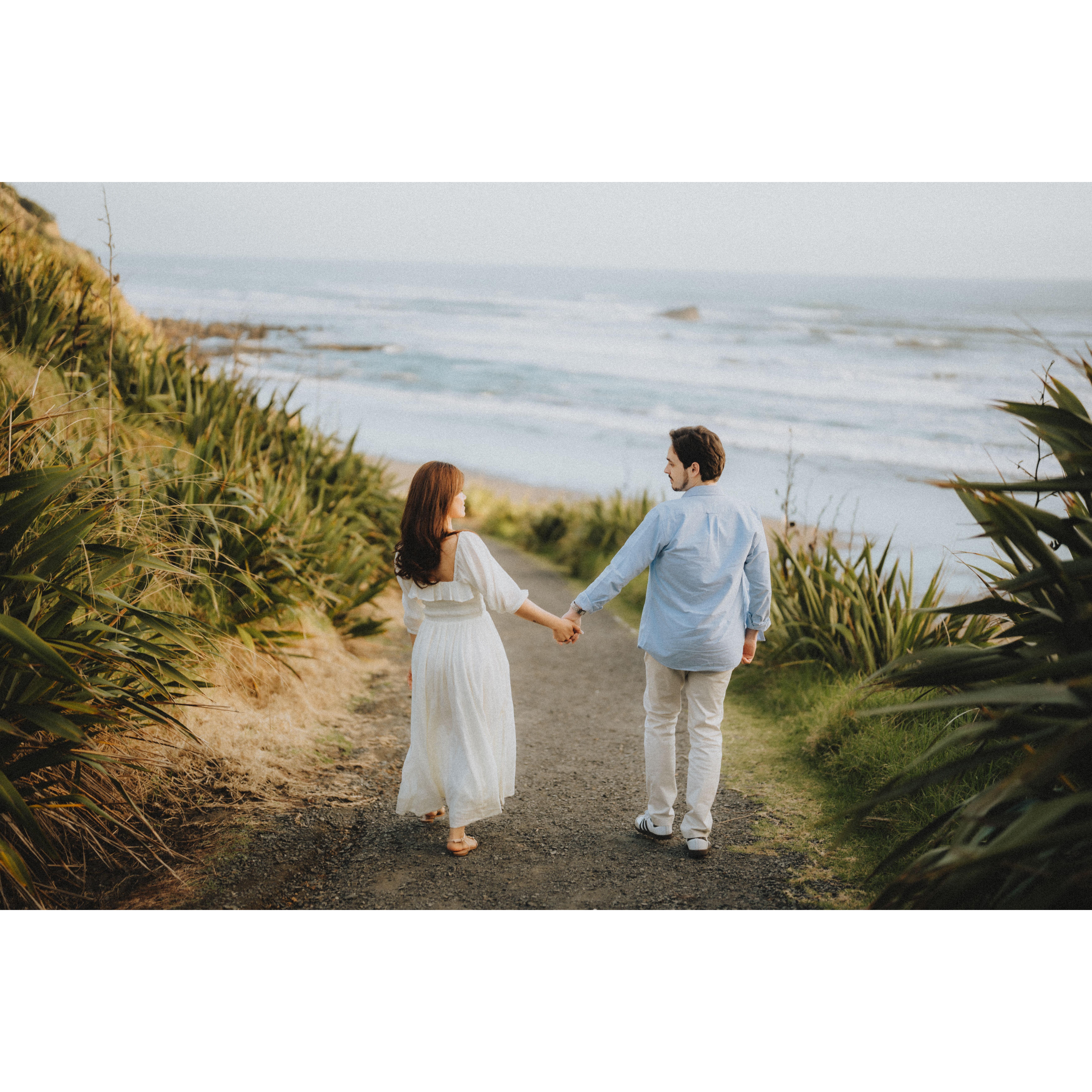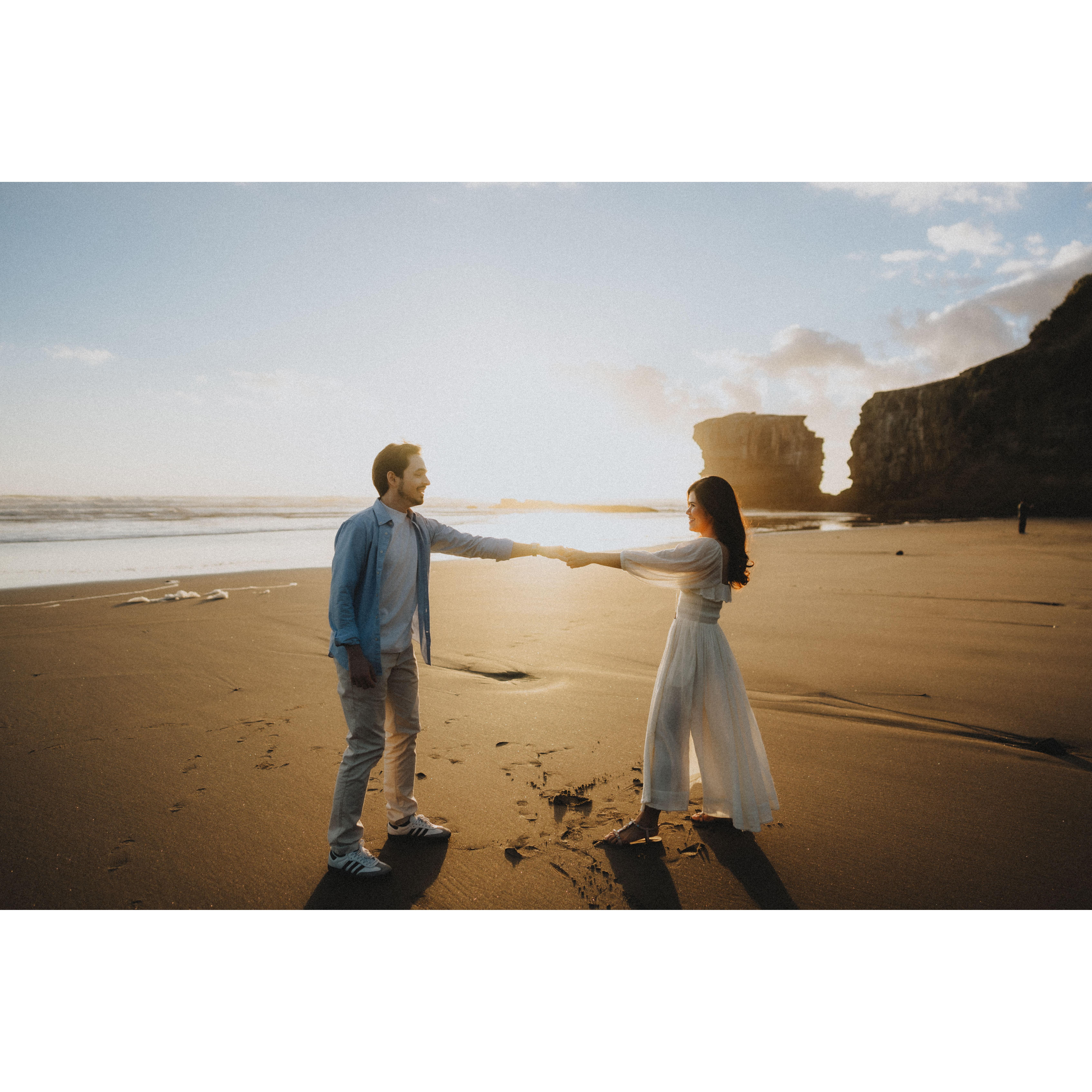 "Sharing some snapshots from our engagement on a stunning New Zealand beach. It was everything I’d ever imagined—the dreamiest sunset, the soothing sound of the waves, and the start of our road to forever! 💍🌊✨" -Rowena