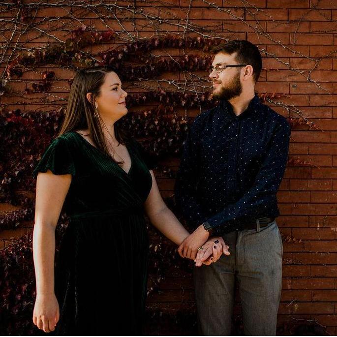 Sarah's ring has a dark green/blue sapphire as the center stone and Daniel picked the stone and setting on his own from Sarah's favorite jeweler (Anueva Jewelry)