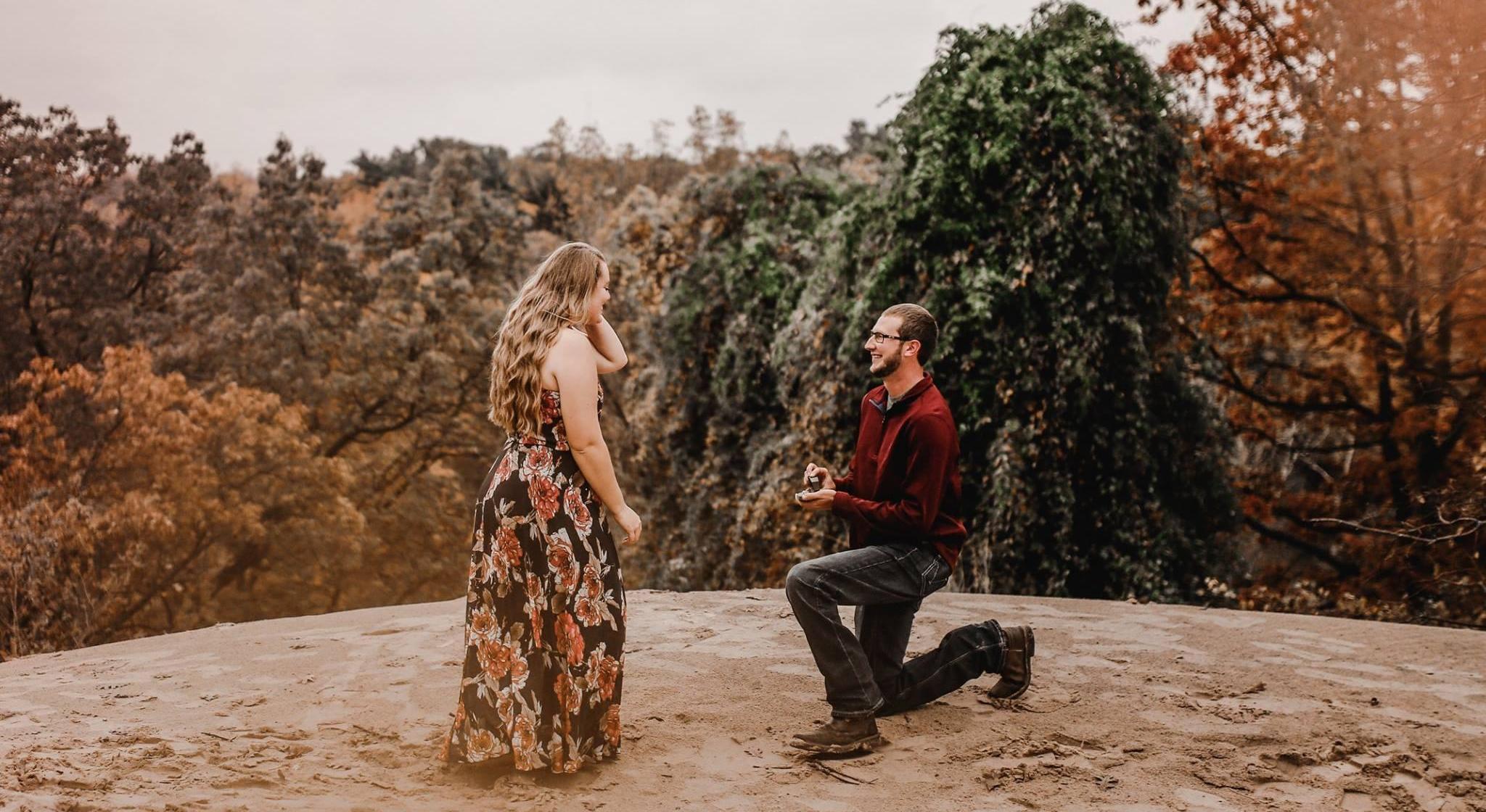 We first began dating on November 5th, 2014. We always try to celebrate it every year, whether it's just a small date or going out to dinner. Our 3 year anniversary (November 5th, 2017) we decided we wanted to have pictures taken. Connor setup a photography session with an old friend from college, Lauren (who is absolutely amazing!), and we headed to Indiana Dunes to meet up with her for pictures. It was a cold, rainy November day so we were hoping for the best and pushed through the wind. We headed up a tall dune taking pictures as we went. Once we were at the top, we took a couple pictures then I changed into a flowy dress and proceeded to take some more pictures. Lauren was putting us into different poses, and asked us to face away from each other. She took a couple pictures, then told us to turn around. Much to my surprise, I saw Connor down on one knee with a ring in his hand! I said yes and Lauren was able to capture it perfectly. ❤