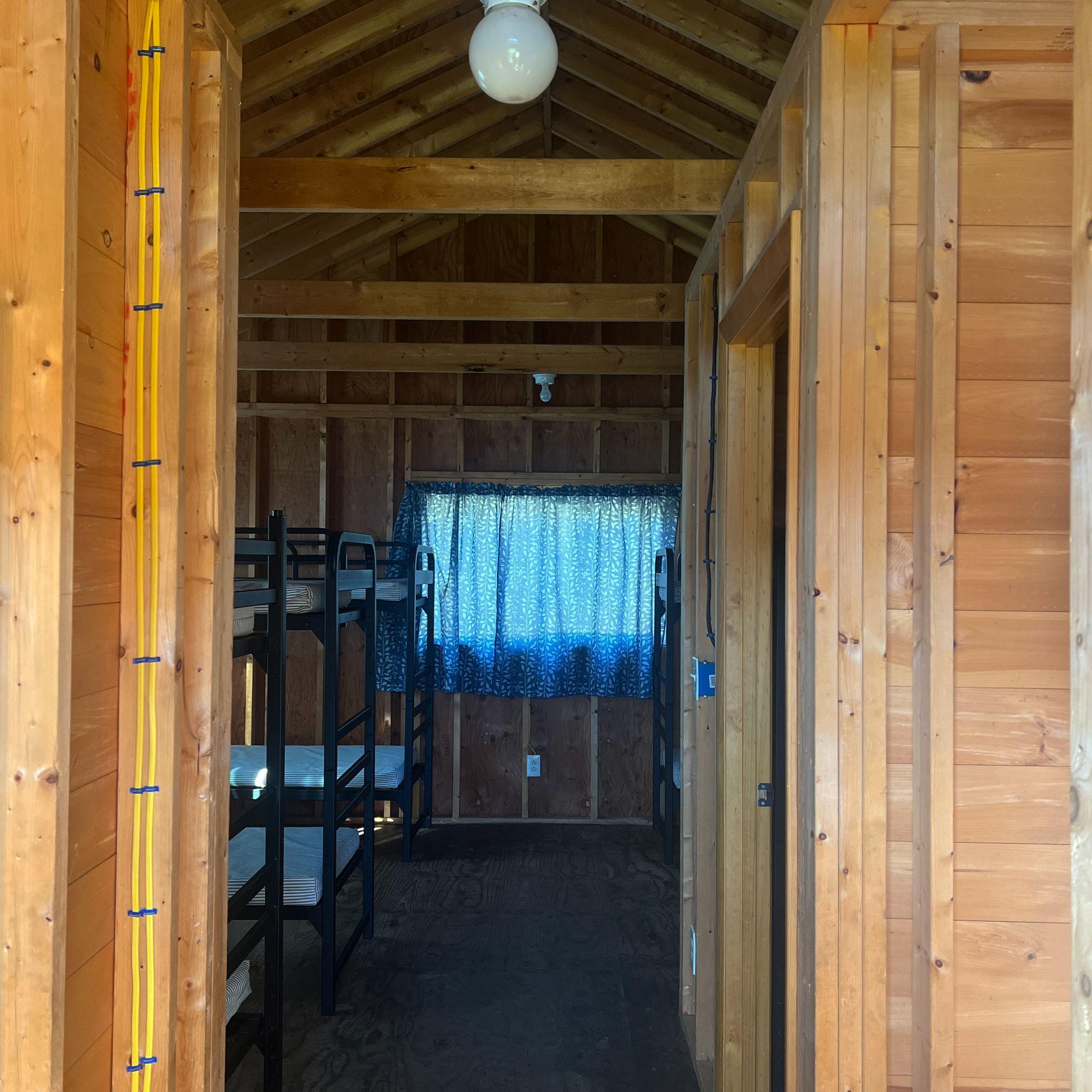 Camp Neringa cabin interior. Cabins can sleep 12 in bunk beds – XL twin size.