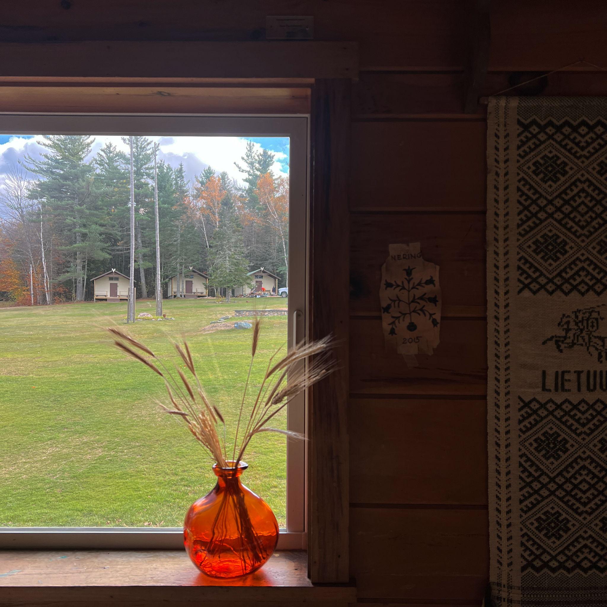 Camp Neringa cabin exterior in October