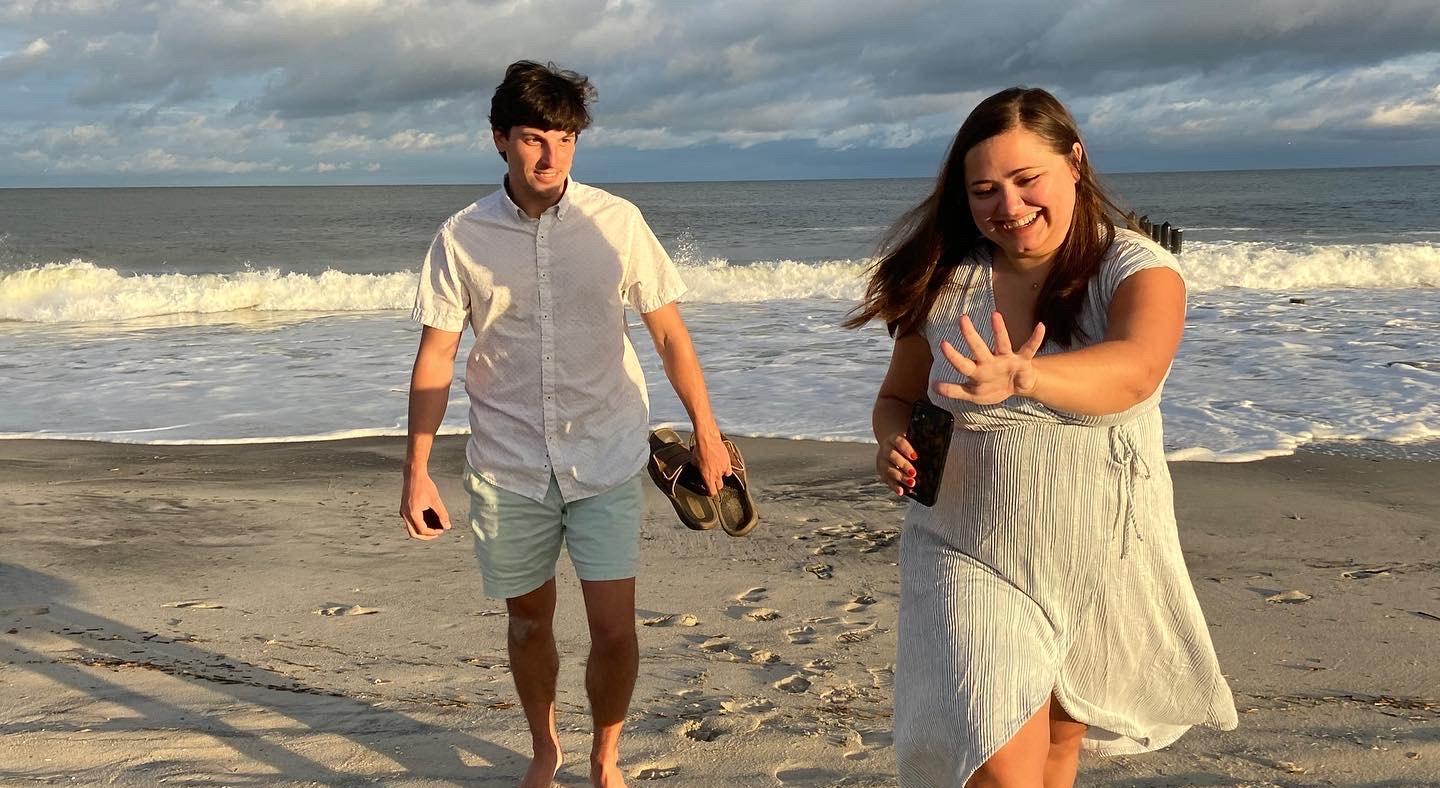 It only took 10 years, multiple cross-country moves and a global pandemic for Sam and David to both be in the same state at the same time. And, as David put it, "girlfriend" was starting to sound to juvenile, so it was time for an upgrade to fiancée. David got both of the families together in Cape May and popped the question! Obviously, Sam said yes!