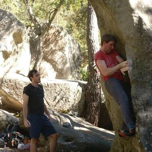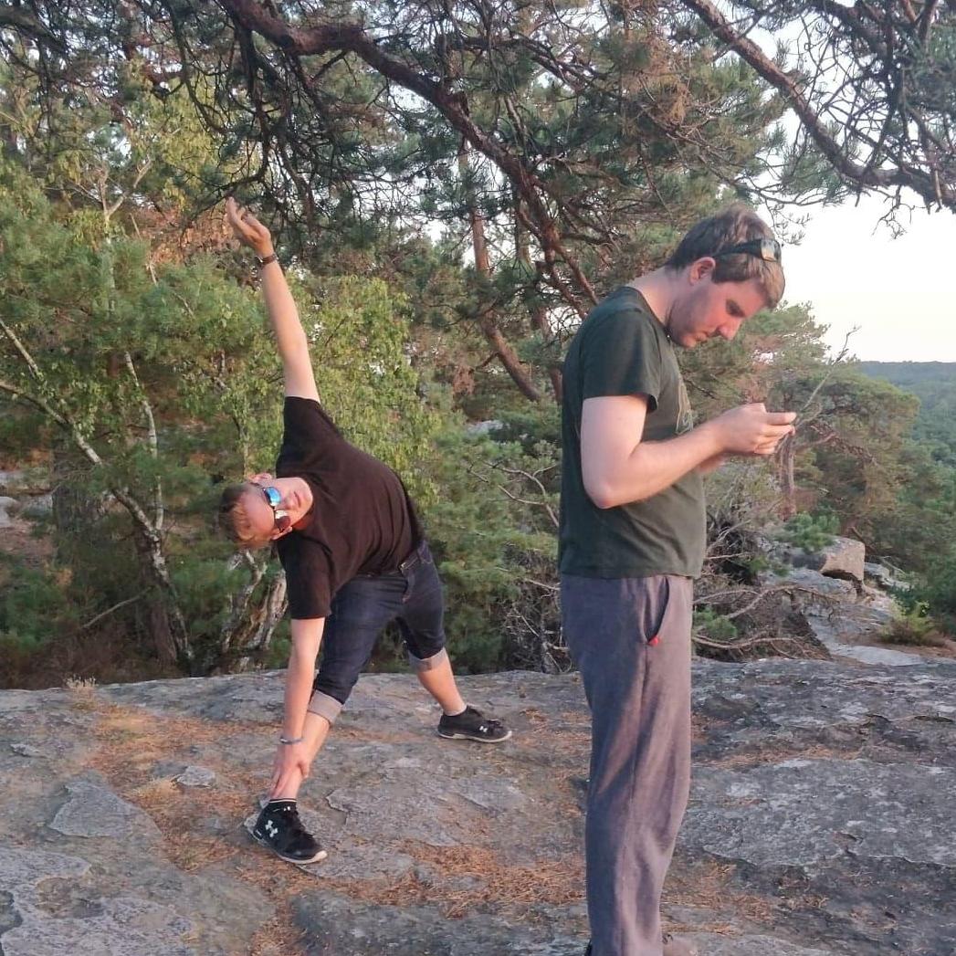 Ask him about: climbing "Vishnu" during our trip to Fontainebleau.
