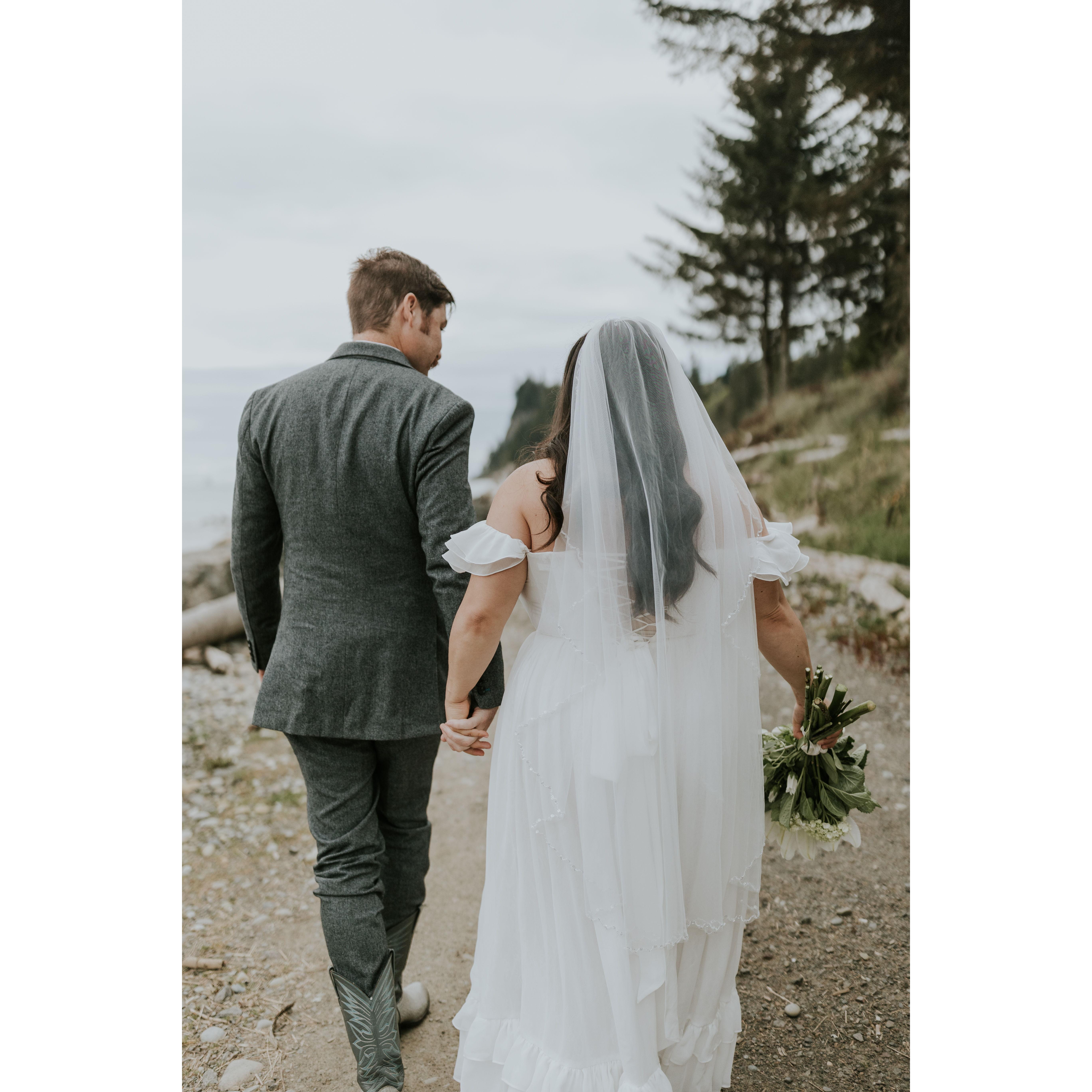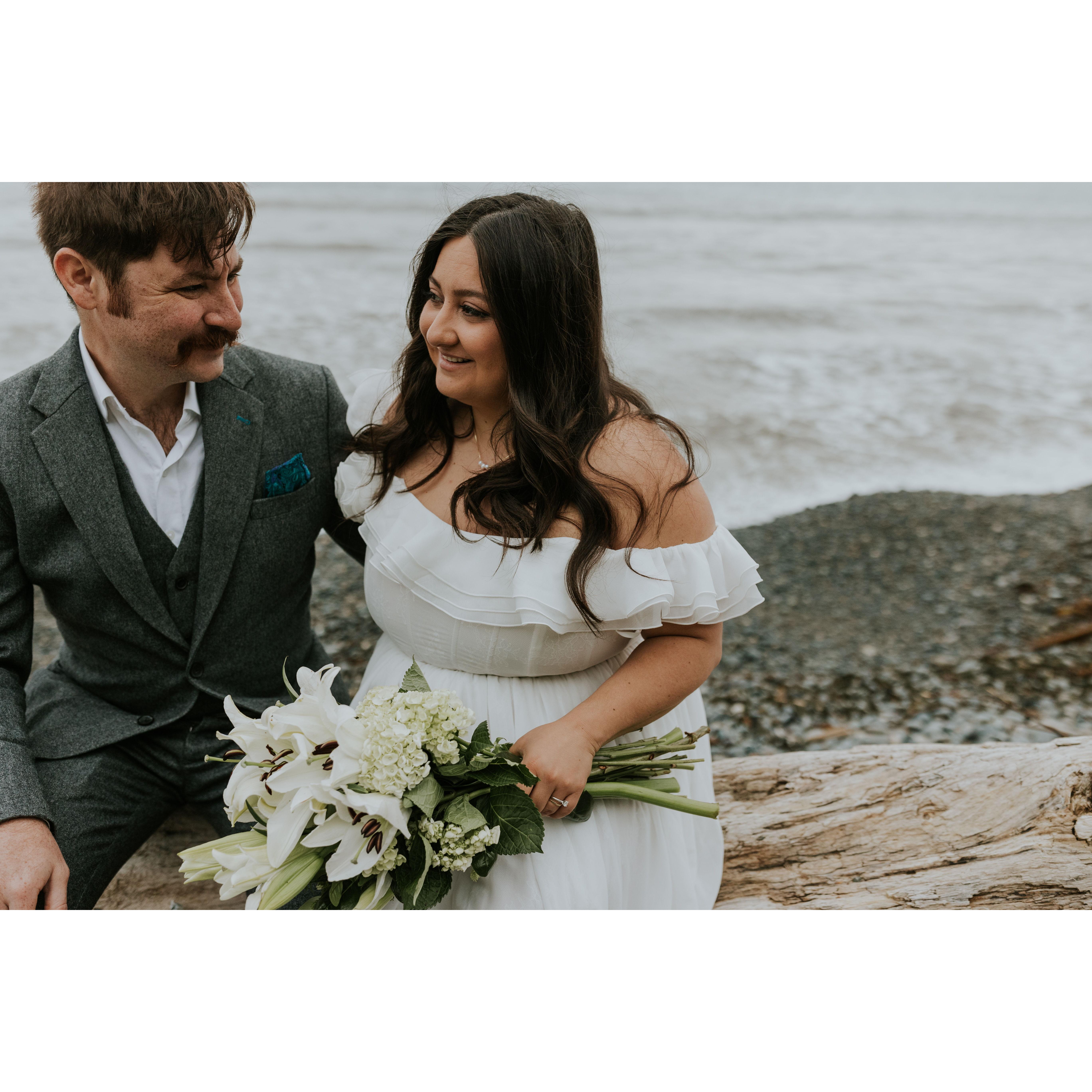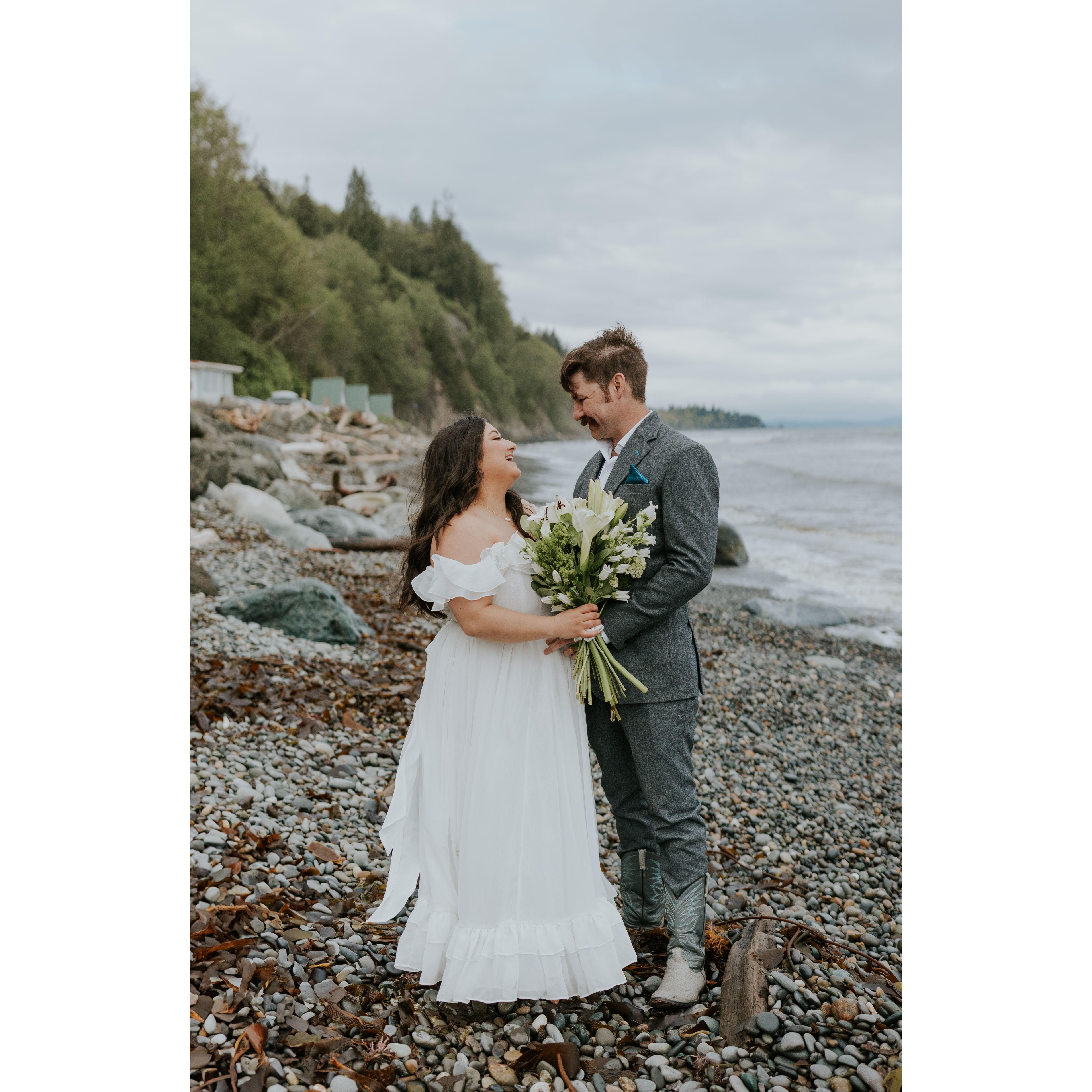 We eloped on April 20, 2025 in Port Angeles, Washington in the company of only each other and a photographer. We said our vows, exchanged rings, and said I do! We had our family in friends in our hearts, and cannot wait to celebrate with you.