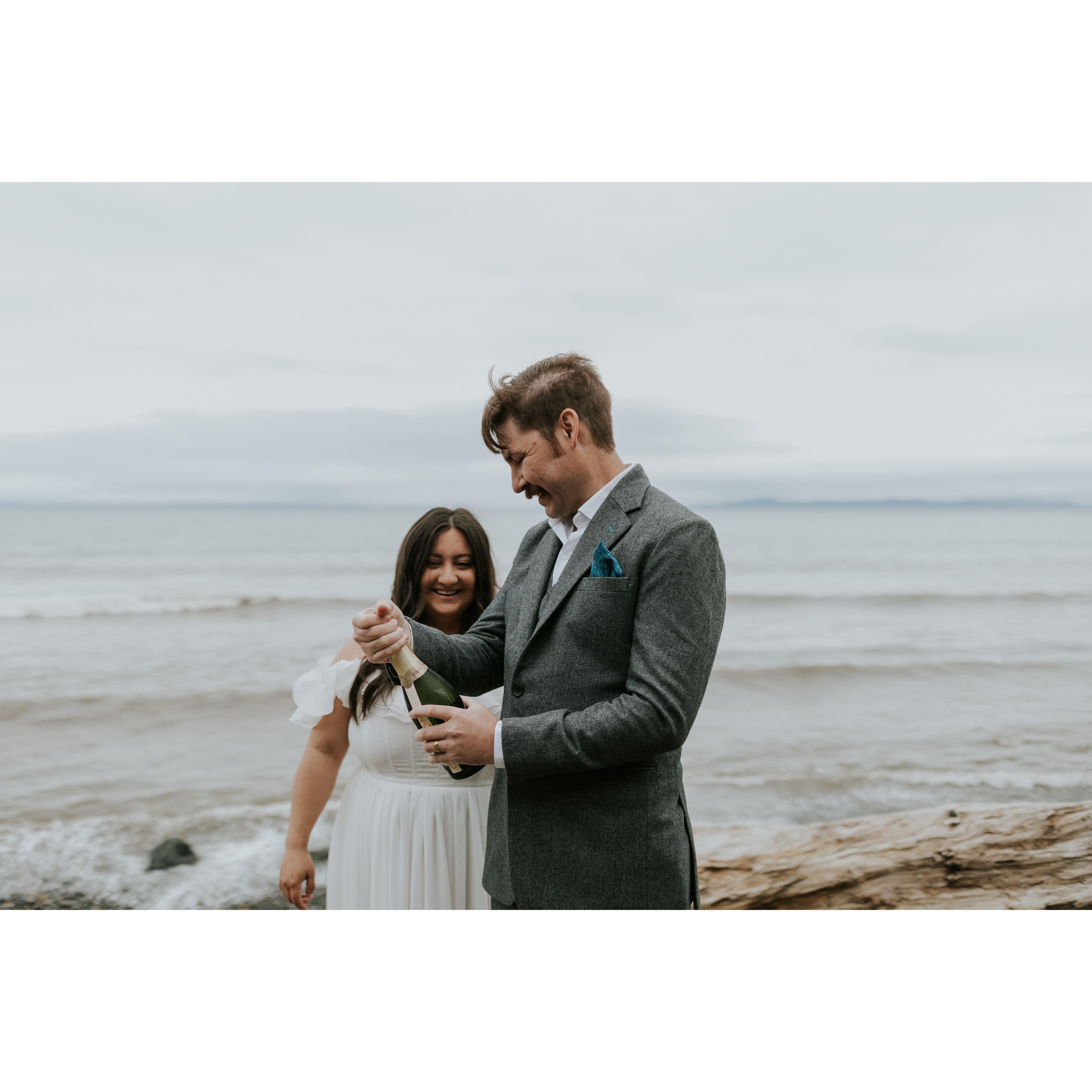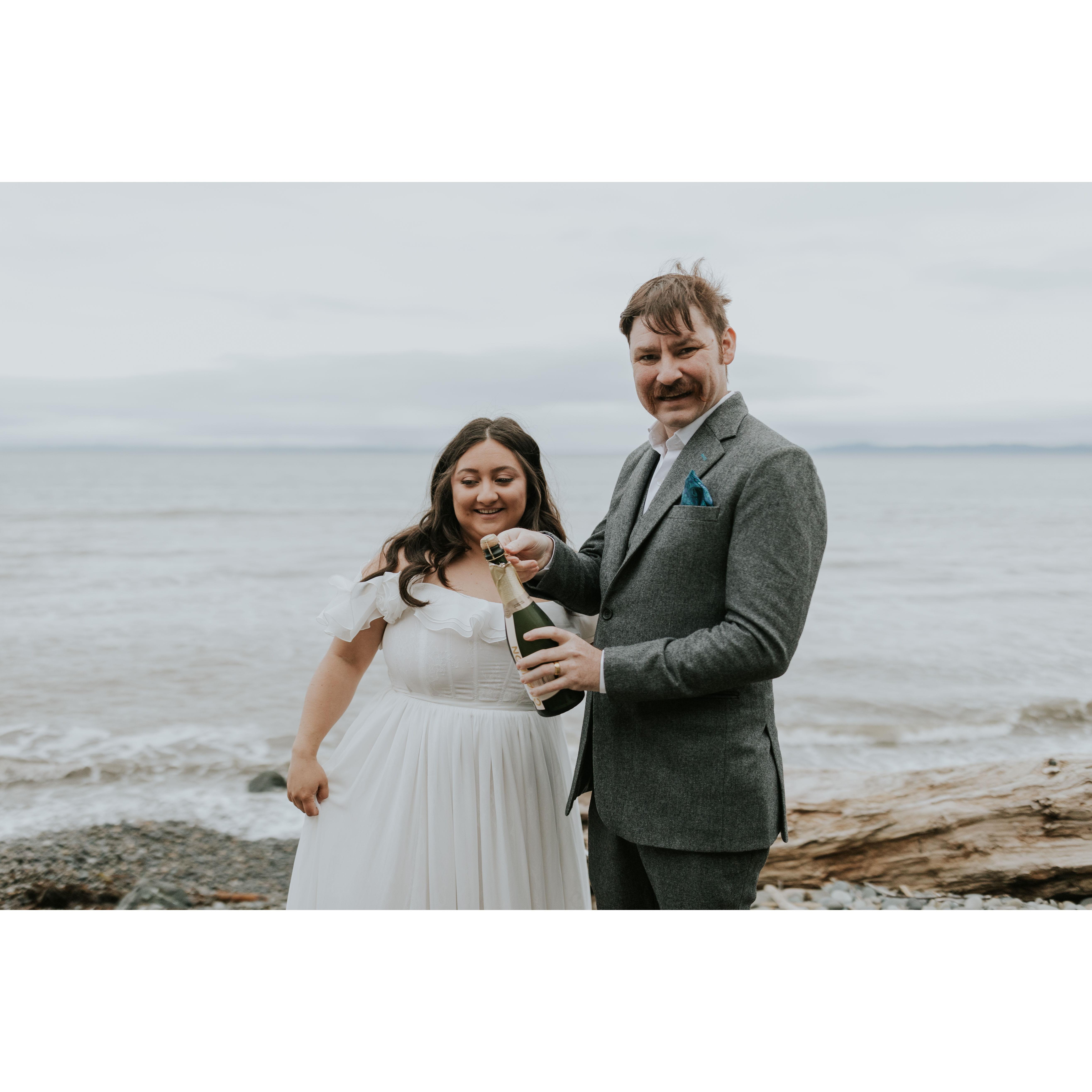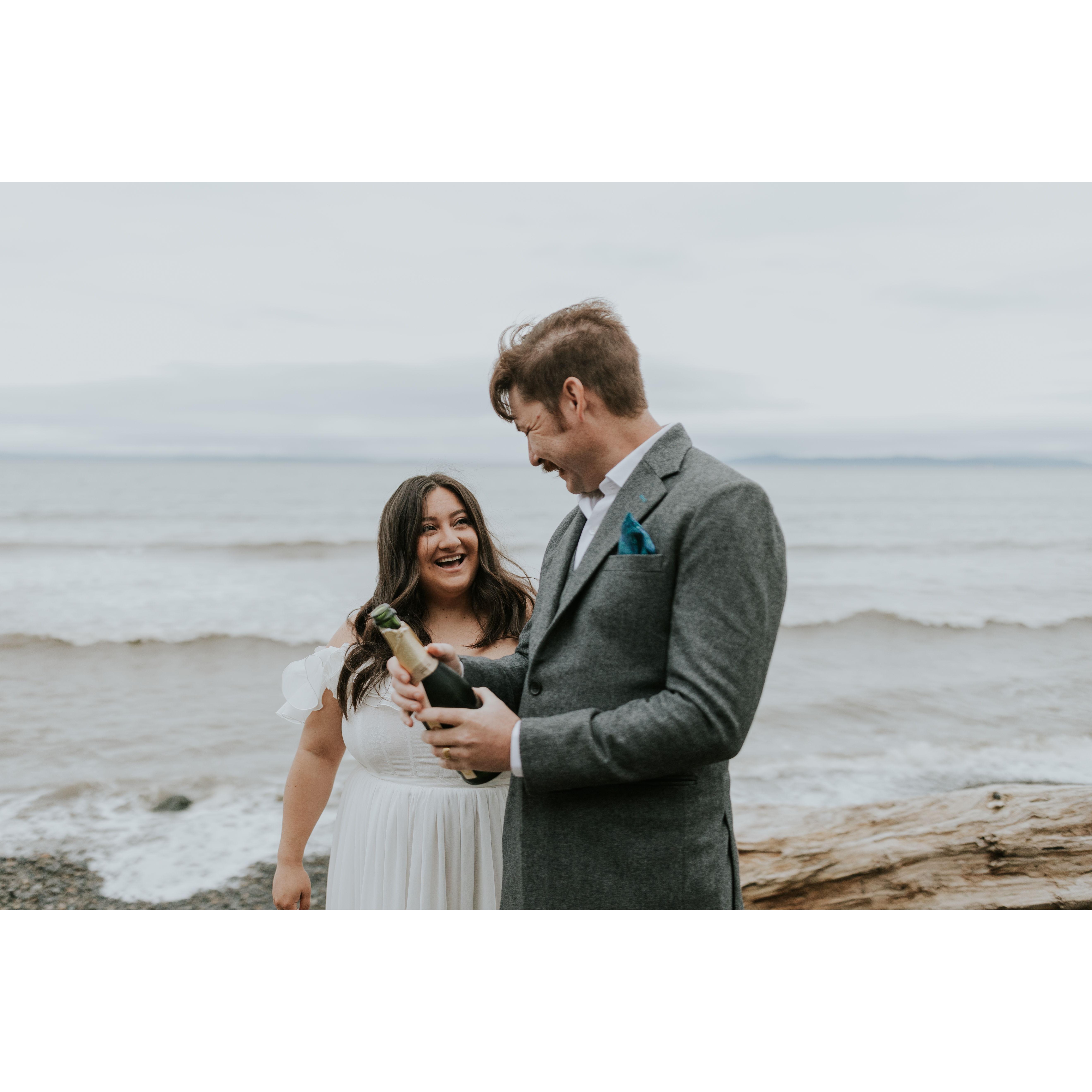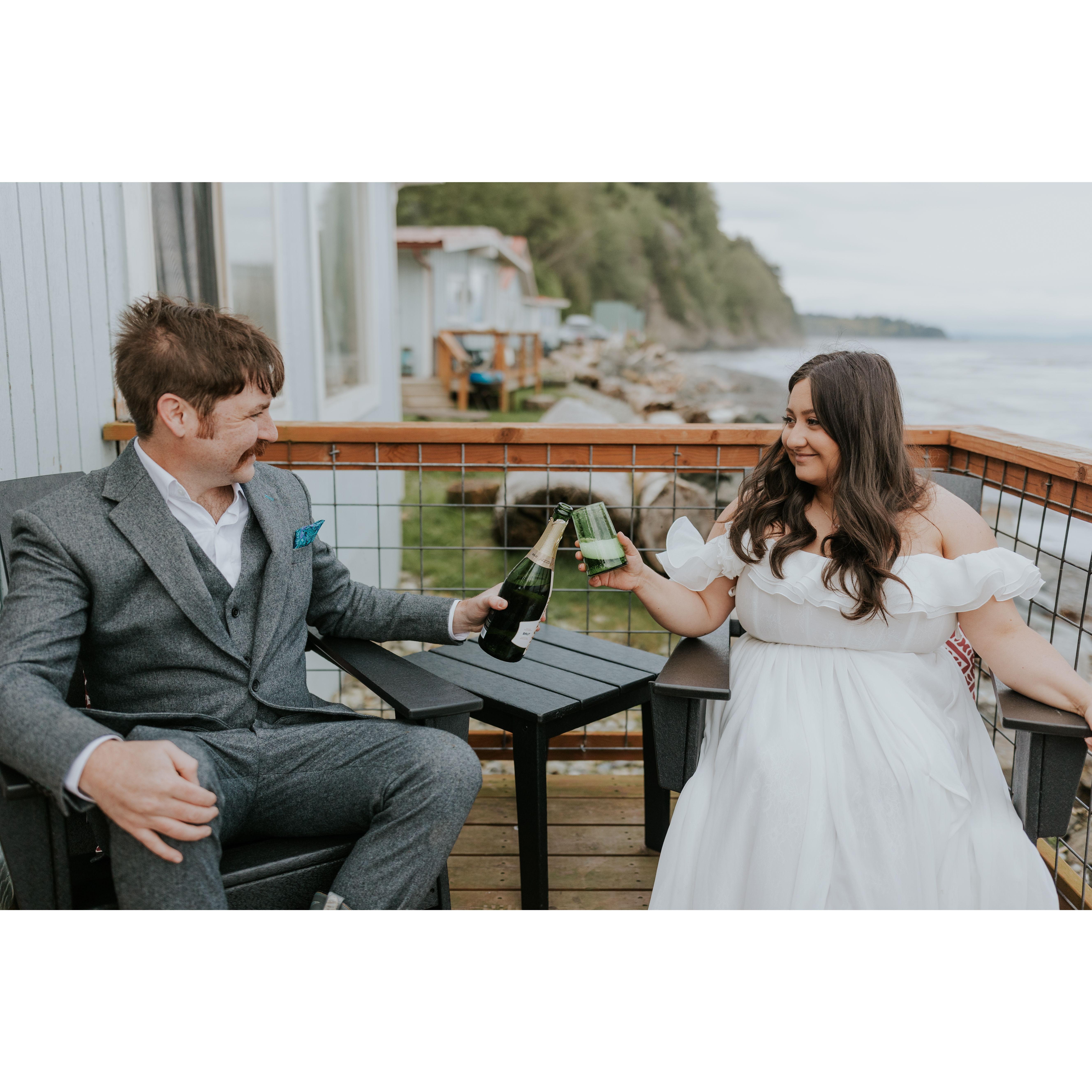 We eloped on April 20, 2025 in Port Angeles, Washington in the company of only each other and a photographer. We said our vows, exchanged rings, and said I do! We had our family in friends in our hearts, and cannot wait to celebrate with you.
