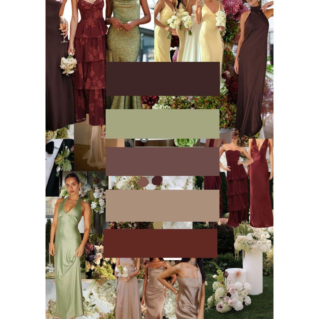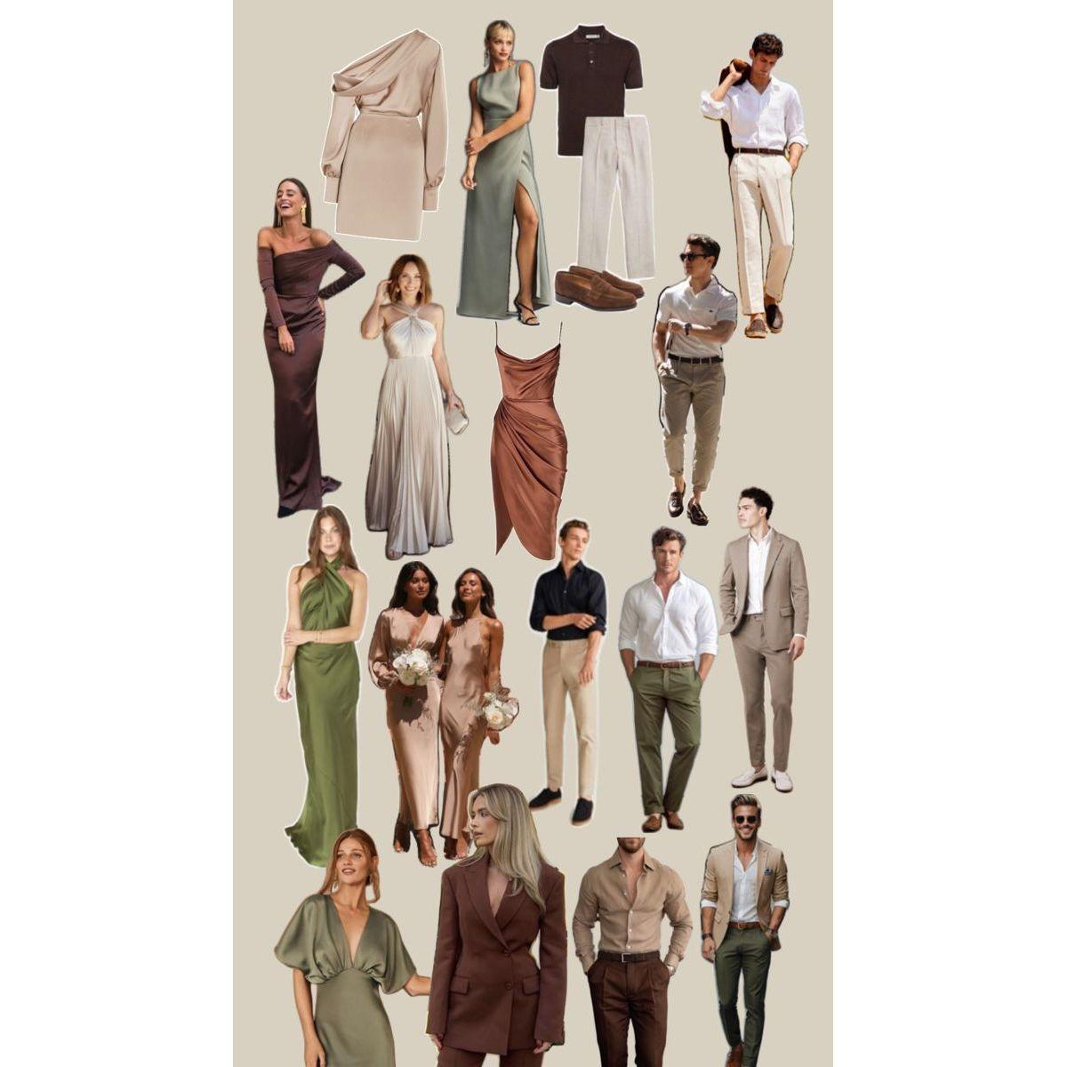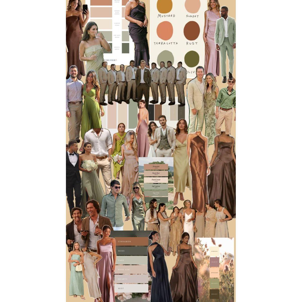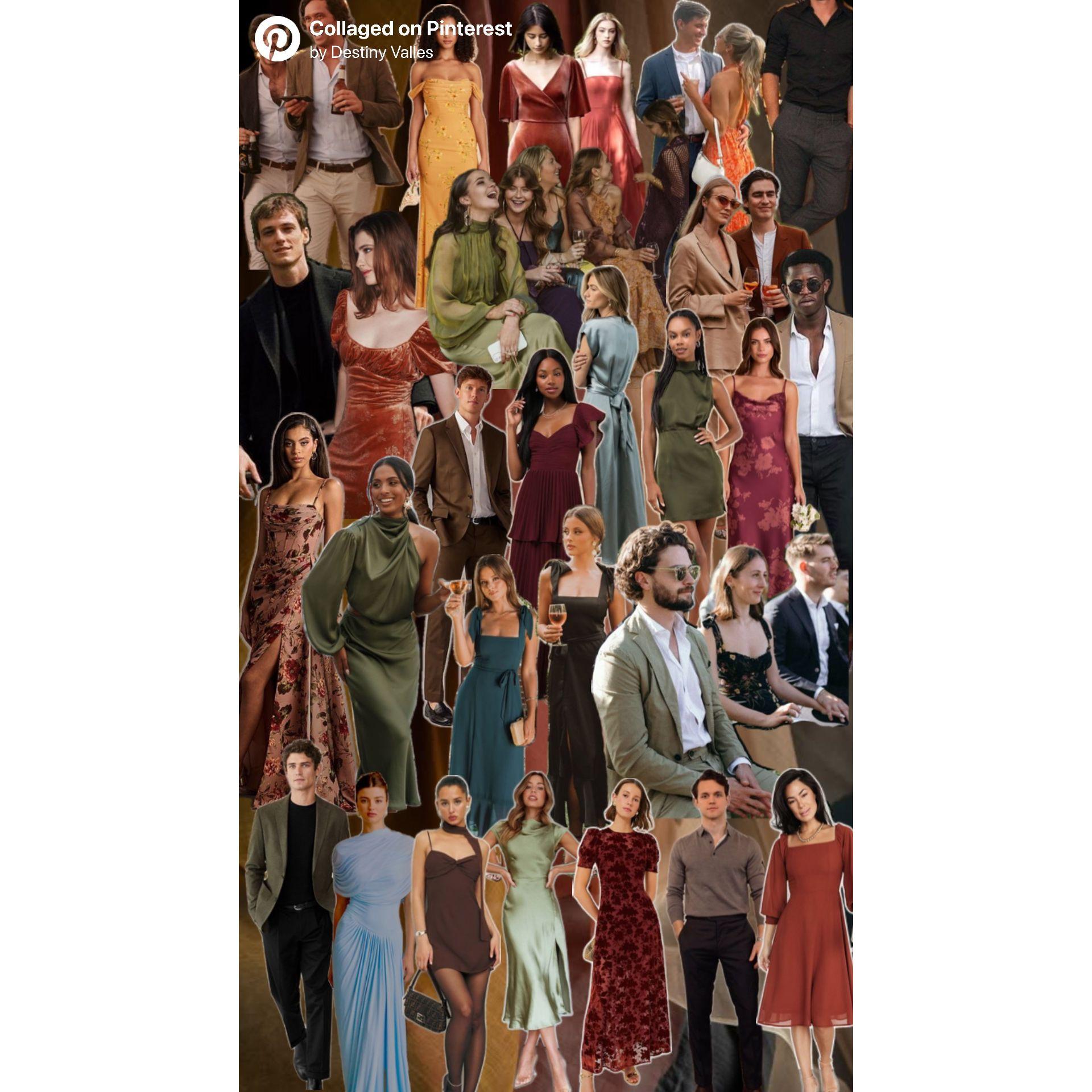 We hope you have so much fun dressing up to fit with the vibe of our wedding, as we will have a portrait photographer at the reception to capture nice photos of all of our guests! See below for some color palette inspiration, and please note that color/style is not subject or limited to the images below.