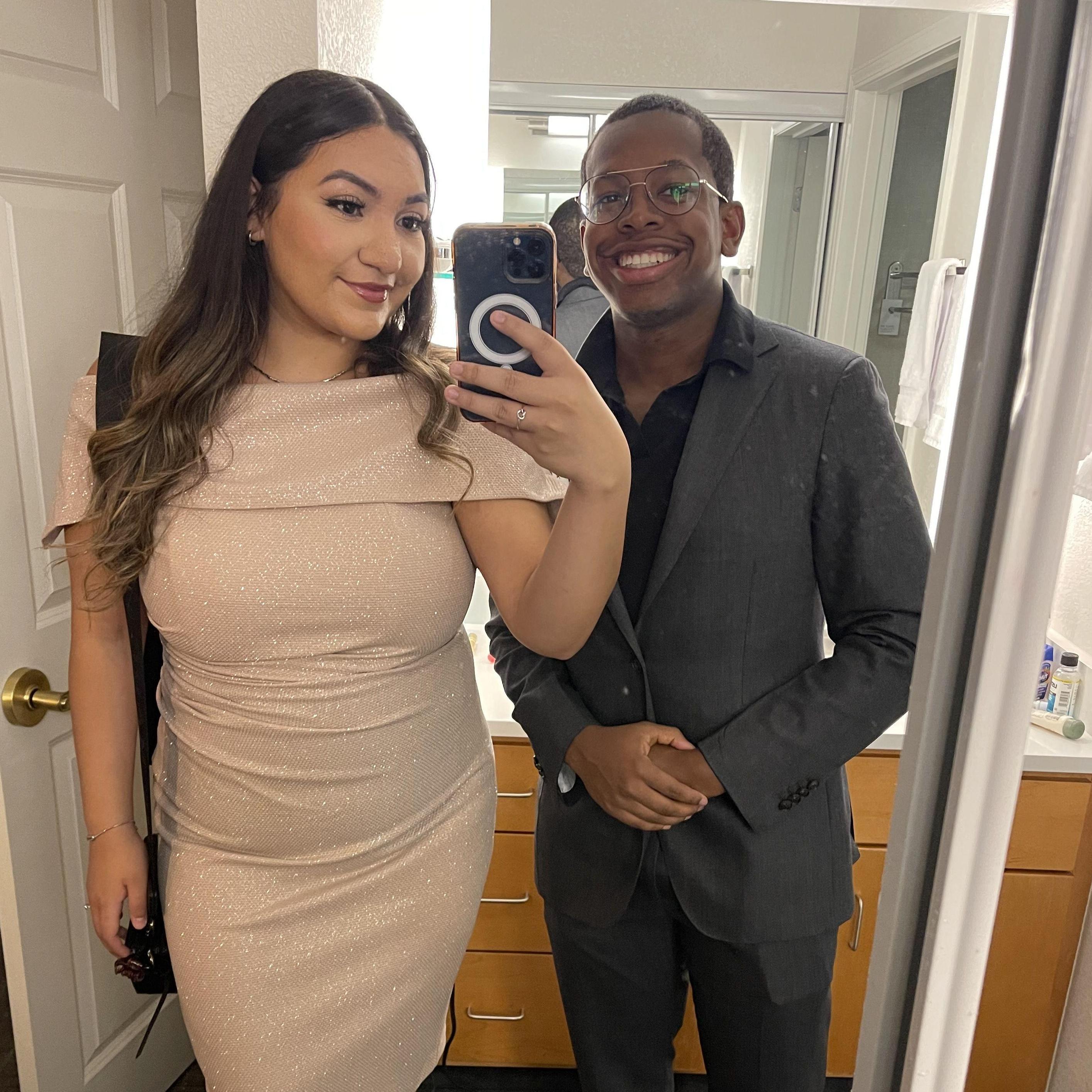 Jamal celebrating with Dianira on her ring ceremony at Texas State during December 2021.