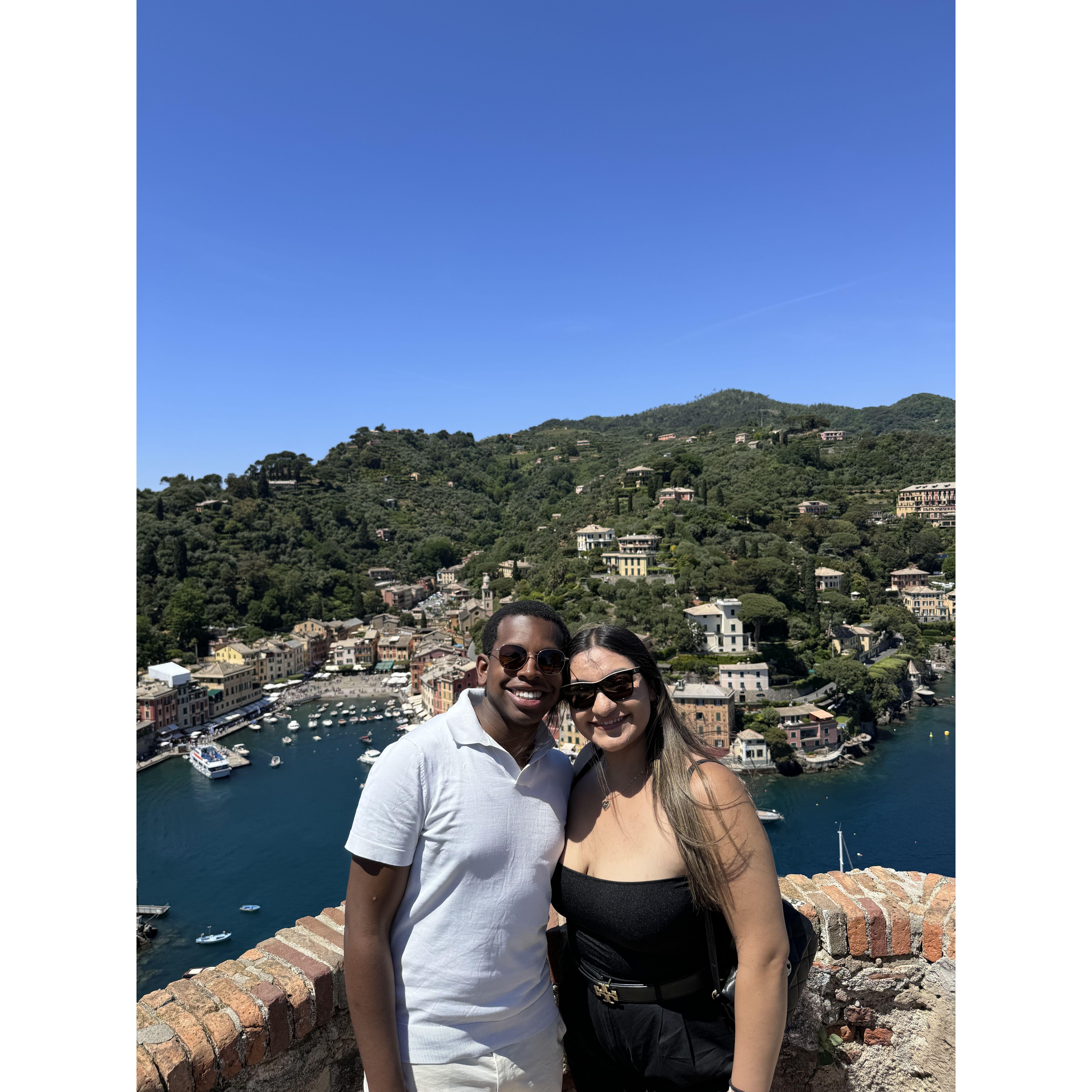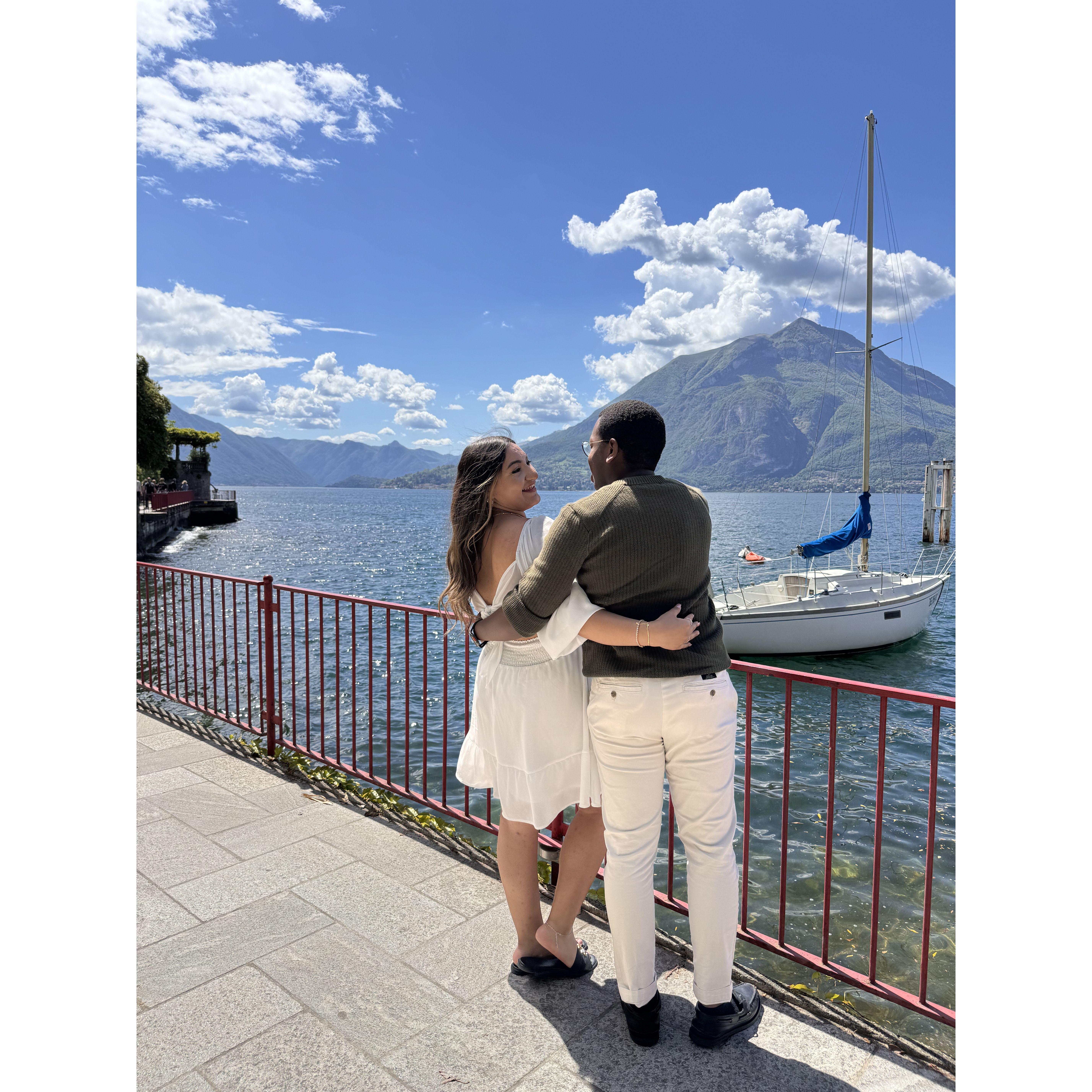 Dianira was recording a video of the castle in Lake Garda, Italy when Jamal went on his knee to propose!