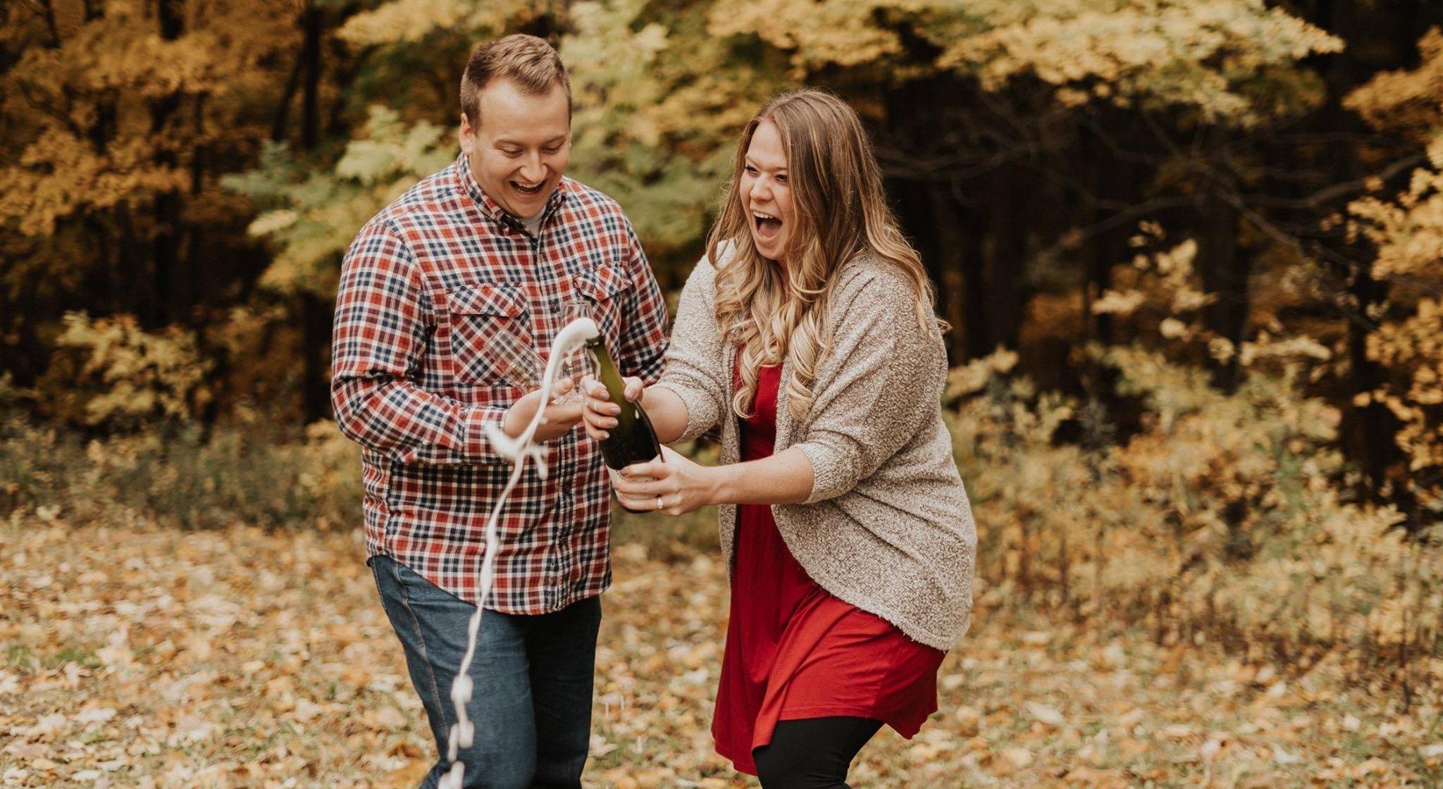 It was less than a year after dating Alacia and I decided we were ready, we both knew we had to spend the rest of our lives together. I like to think I knew sooner than Alacia did ;). It was a random September weekend in 2017 that we saw our local Zales was having sale on engagement rings. Luckily for me Alacia knew the type of ring she wanted, so we decided to go look and see what they had in store. We found a ring we both loved, and after much thought decided to get the ring! Now the next step was how and when to propose. Alacia kept asking me when I was going to pop the question, but I kept it a surprise and gave her a window of time. It would happen between November-January, plenty of events where and when I could propose during that time. I planned to propose on our 1 year anniversary, November 2nd, 2018. Truth be told I could not wait to call her fiancée, so the sooner I could get on one knee and ask the better. We planned to go to dinner that night at a local sushi restaurant that is a favorite of mine in Excelsior, MN. I would then ask her to walk to the lake for a late night drink, and along the way there is a beautiful public garden that would be the perfect spot to propose. Nov 2nd was a Friday, Alacia had a pre-planned work happy hour. During that time I met Nathaniel (Best Man) in the excelsior garden where I planned to ask Alacia. He and I talked through the plan of when we would walk through and where he would be hiding to take the photos. Alacia and I met for dinner, during which I was secretly texting Nathaniel confirming when we would leave to walk through the proposal spot. We finished our meal, and began walking towards the lake. We approached the garden and I got down on one knee to her surprise. We don’t remember exactly what I said, but we do remember the most important thing Alacia said as Nathaniel captured the moment perfectly; “YES!”