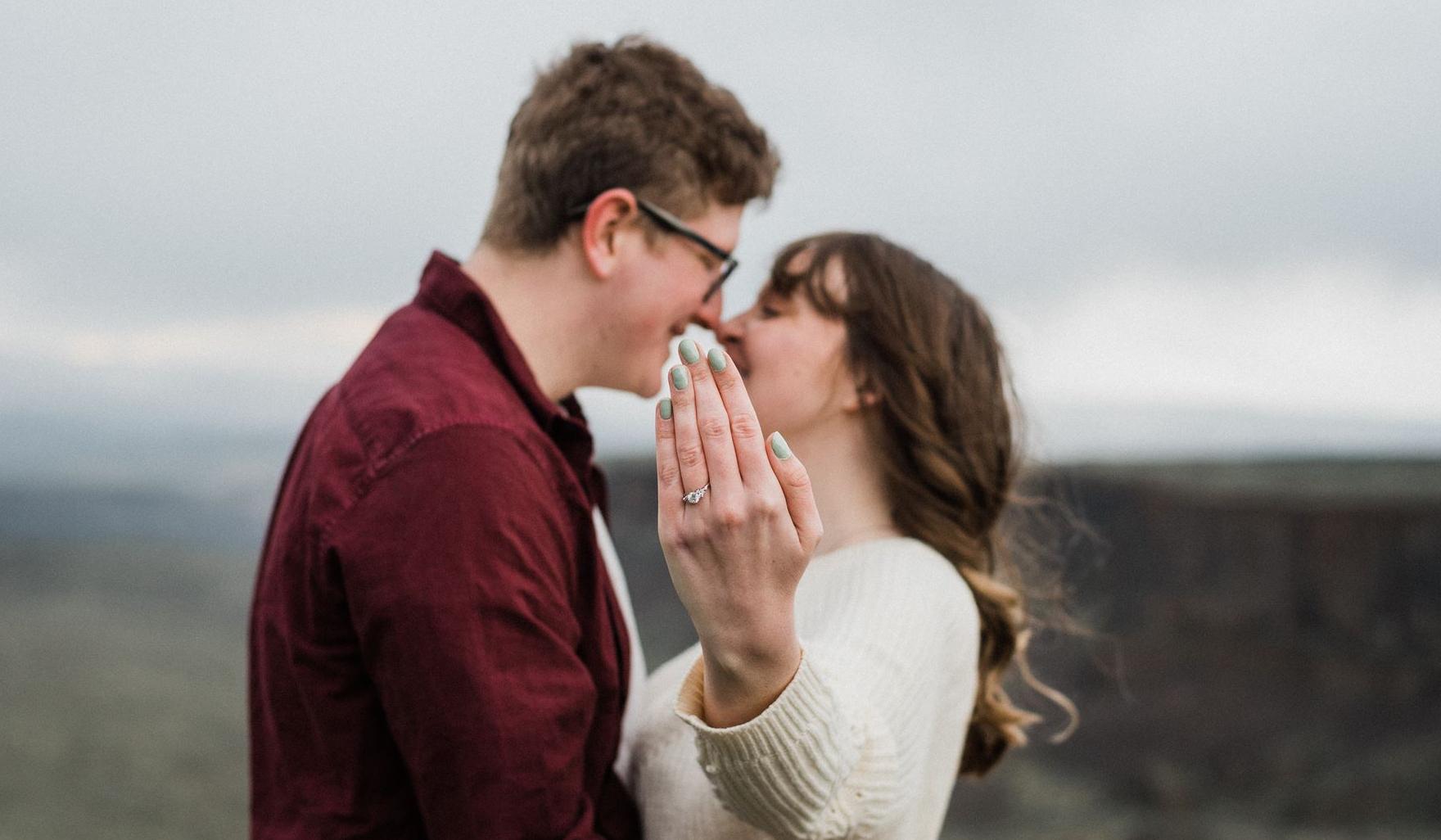 Her Side: I had suspicions that Sean was going to propose to me soon. Mainly because he accidentally told me, while he had the flu, that he had purchased a ring. Out of the blue, he mentioned that he wanted to take me to the Roslyn Café and that we could get all dressed up for this date. I didn't want to get my hopes up though, in case he was not actually going to propose that day so I tried to get it out of my mind. The days leading up to this date, my roommate was very concerned with what outfit I would wear, along with asking if we could paint our nails the night before. The day of, Sean picked me up from my house and we started our drive to Roslyn. I held his hand as he drove, and I noticed his hands were more sweaty than usual. He started to point out the houses we were driving past, and said we should take a detour to check them out. He turned down a road and pulled off into a parking lot (at this point I was nervous, especially because I had spotted my friends car hiding in the bushes). We started walking down a trail and taking in the beauty, and in the distance I spotted something sitting in the middle of the trail... it was a coffee cup. The same type of cup he had originally wrote on when we first started becoming friends. The cup had a sweet message on it, and further down the trail I saw another one. I followed the cups, while reading the notes on them, and they led me to the river. We stood next to the water, and Sean pulled out a letter which was a continuation of what the cups said. He read the letter (which made me cry), and got down on one knee and asked me to marry him! Obviously I said yes. Next thing I knew, our closest friends started running down the trail to celebrate with us. Then we got milkshakes and spent time with our dog, exactly what you would expect a newly engaged couple to do.