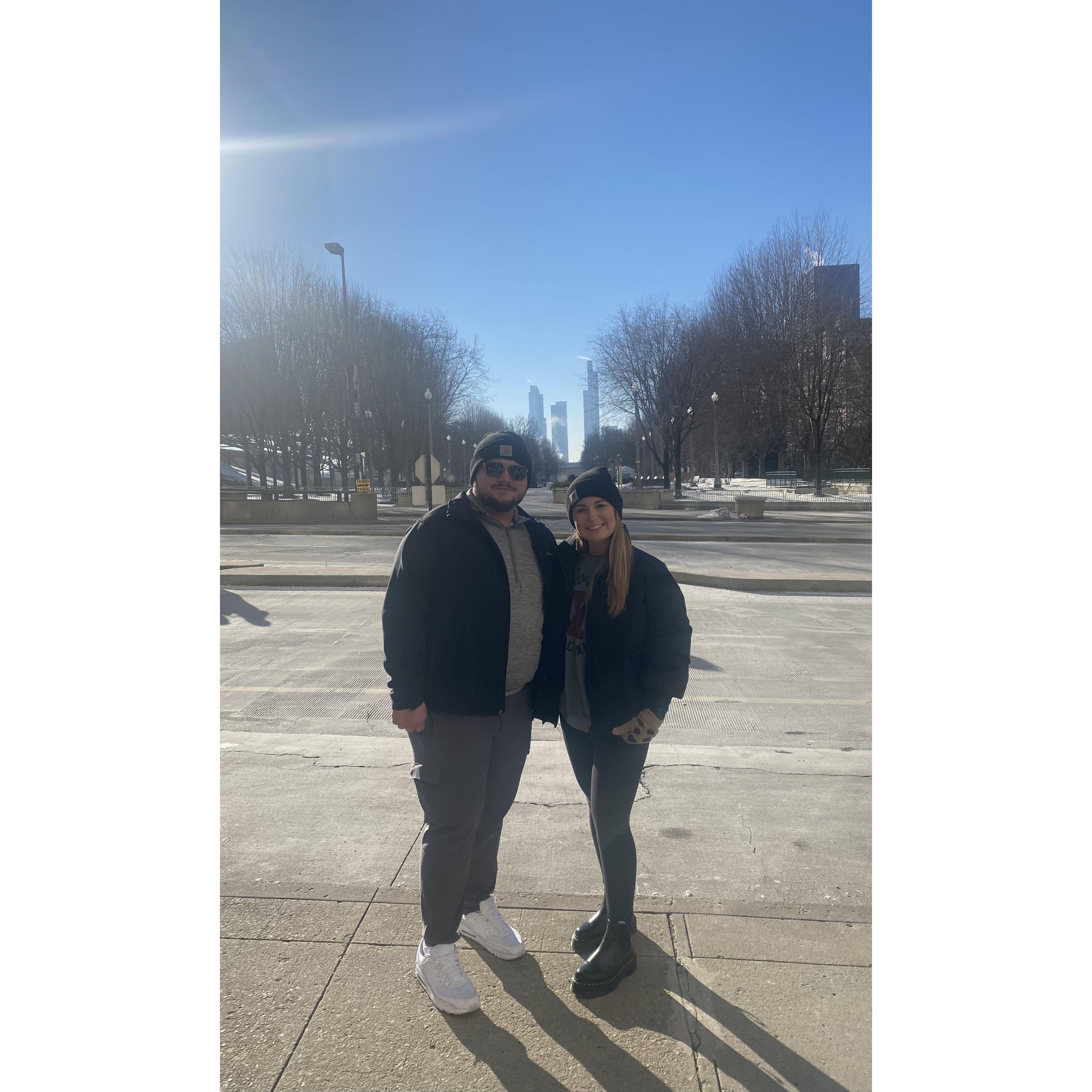 Us in front of our wedding location! We had no idea that we would be saying “I do” here 2 years later!