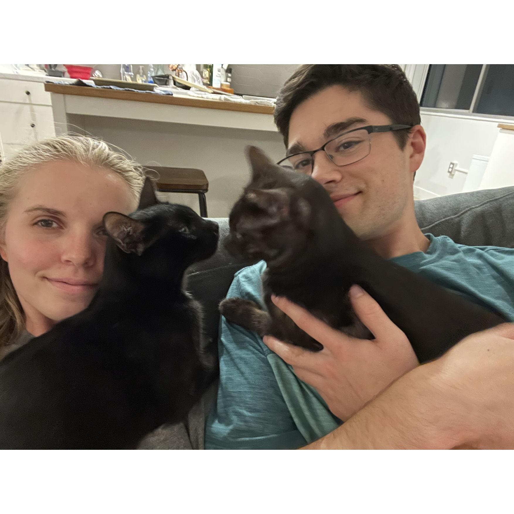 Snuggles with Poppy on our 5th anniversary