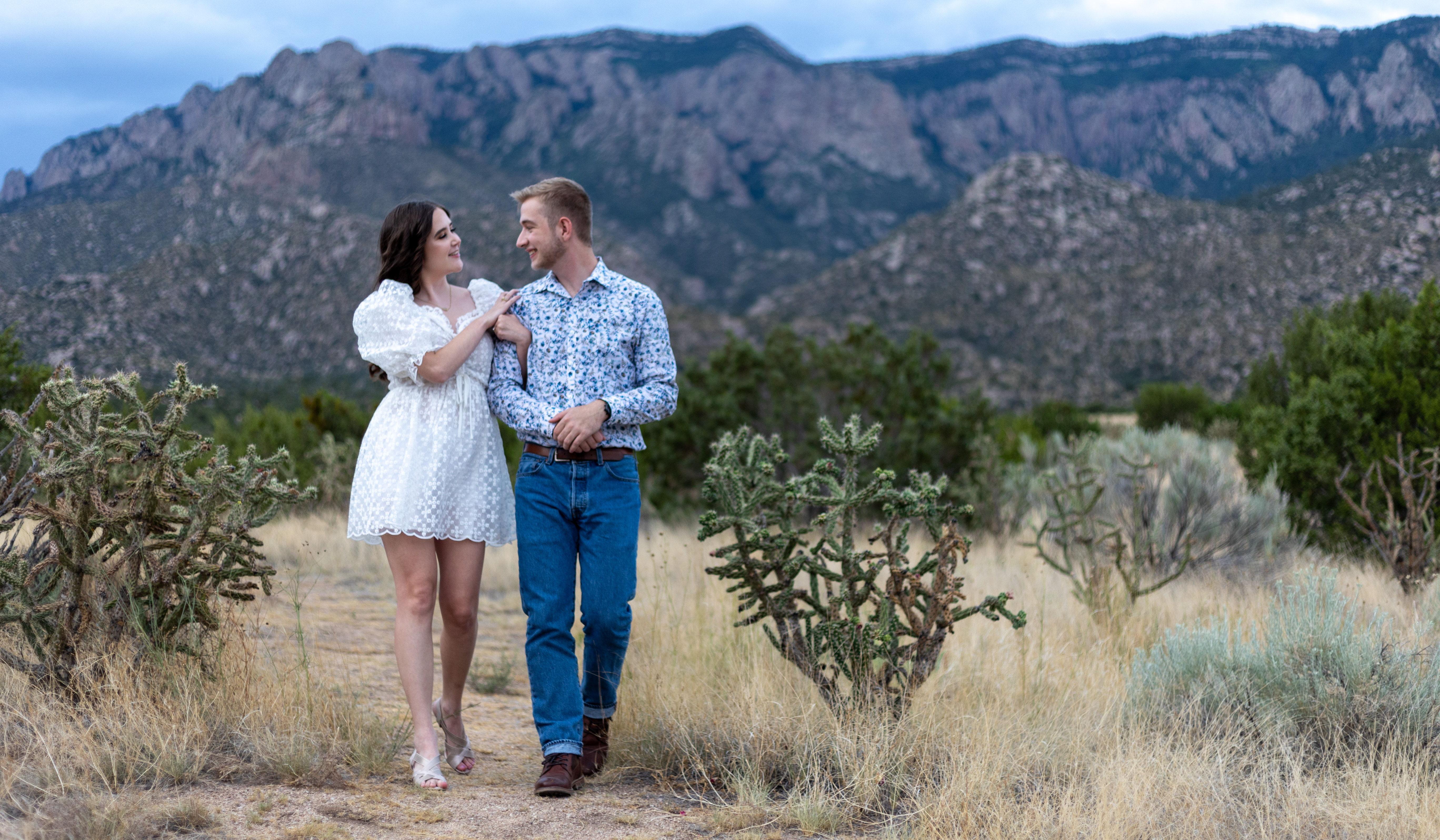 Clark and Emily found each other in the most wonderful way - on a dating app. Okay, maybe that isn't so wonderful, but their relationship certainly has been. Clark and Emily found each other on the dating app Bumble. Emily was charmed by Clark's handsome pictures and his profile that outlined his love for baking chocolate chip cookies. Emily's profile caught Clark's eye with her cute photos and the inclusion of her adorable cat Dinah. Clark and Emily first met in person at a boba tea shop in College Station called "BonAppeTea". They were both nervous to meet each other in person after around a week of only talking online, but after the date they both knew for certain that they needed to see each other again. Clark and Emily continued to date, travel, meet each others' families, and fall deeply in love as Clark continued his master's degree and Emily finished her undergrad. As Emily's undergraduate degree came to a close, she desperately sought a teaching position within reach of Clark. However, Latin teaching positions are few and far between. It seemed that fate was looking out for Emily, though, as a position opened up in Bryan, Texas, right next to College Station where Clark was completing his master's degree. As Emily taught Latin and Clark finished his last year of graduate school, the couple passed their time watching shows, building lego sets together, playing games on Emily's Nintendo Switch, traveling, and going on unique dates. Over time, Clark and Emily felt more and more certain that their close bond was something truly special. In March of 2023, Clark proposed to Emily on the swingset at Hensel Park in College Station, where they had shared dates early on in their relationship. In June 2023 after the completion of Clark’s master’s degree, Clark and Emily moved to Albuquerque, New Mexico. Here Clark is beginning his exciting career as an aerospace engineer and Emily is finishing her Master of Education. Clark and Emily are excited to get married and host their reception at Hotel Albuquerque with their close friends and family on Thursday, July 25th, 2024!