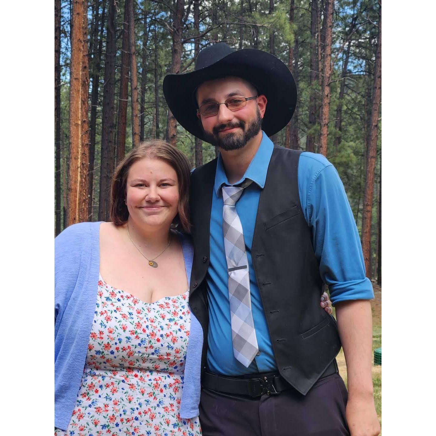 At Emma's dad's wedding! It was Josh and Emma's first time at a wedding.
