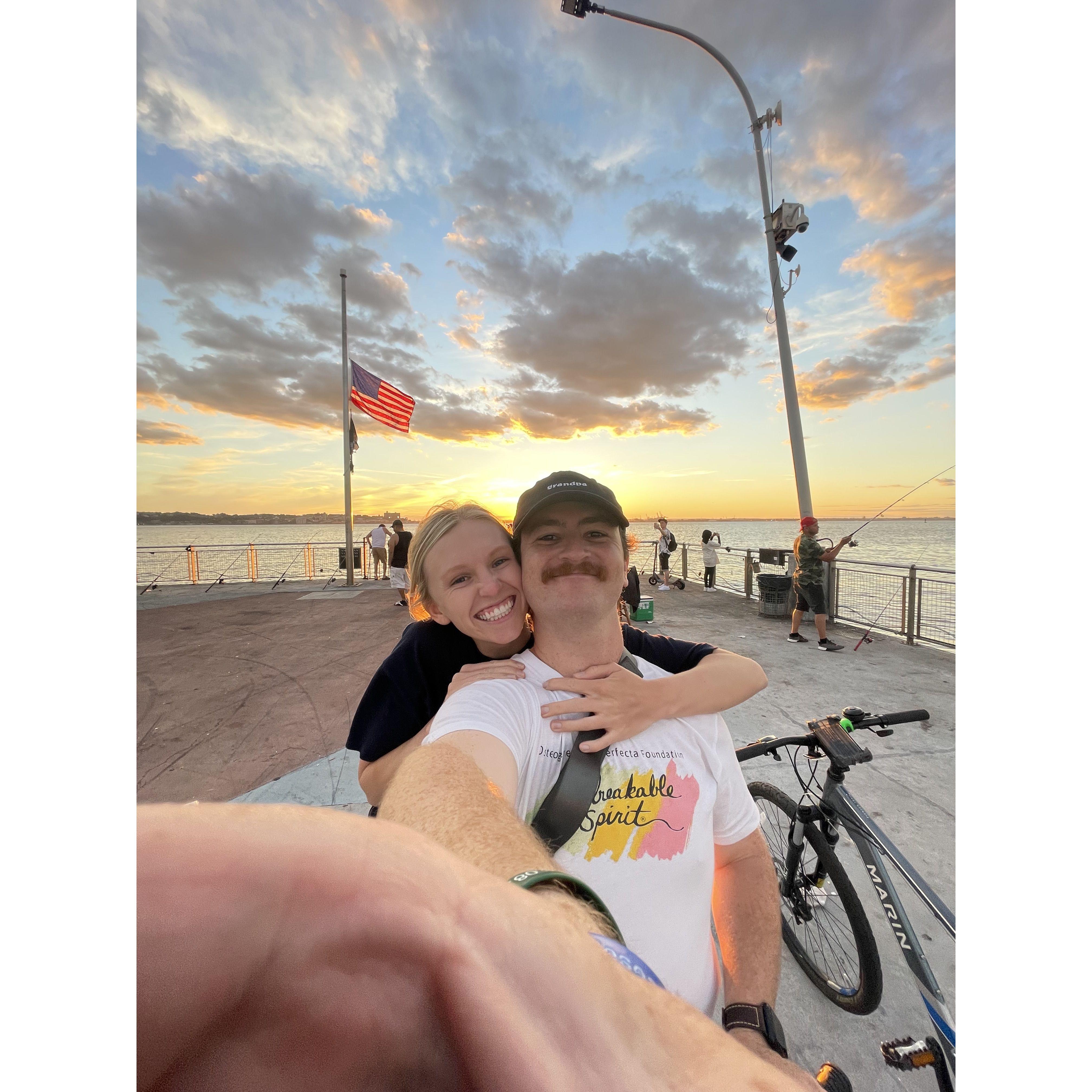 Us at one of our favorite spots, Prospect Park Dog Beach