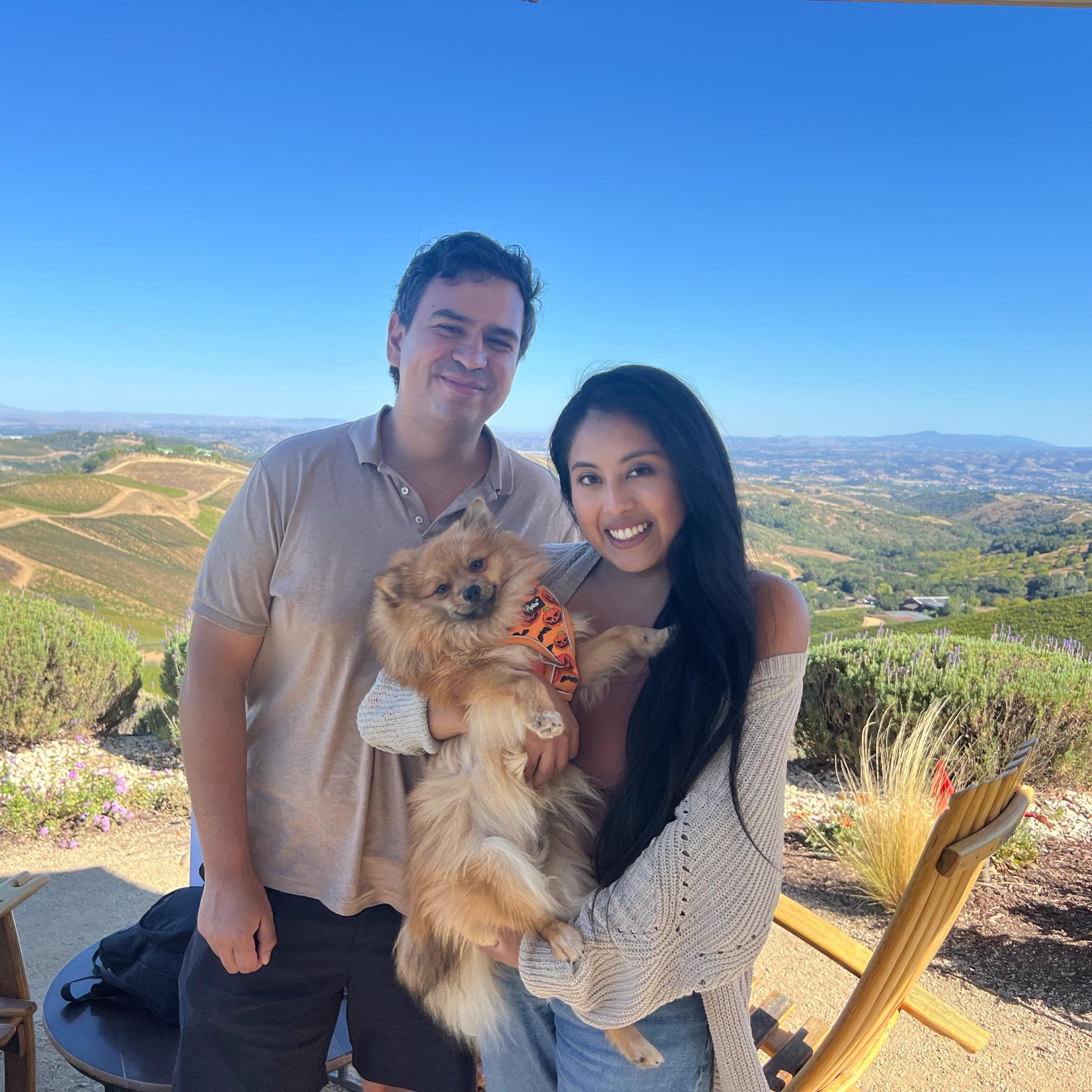 The bride’s sister, her partner and their fur baby