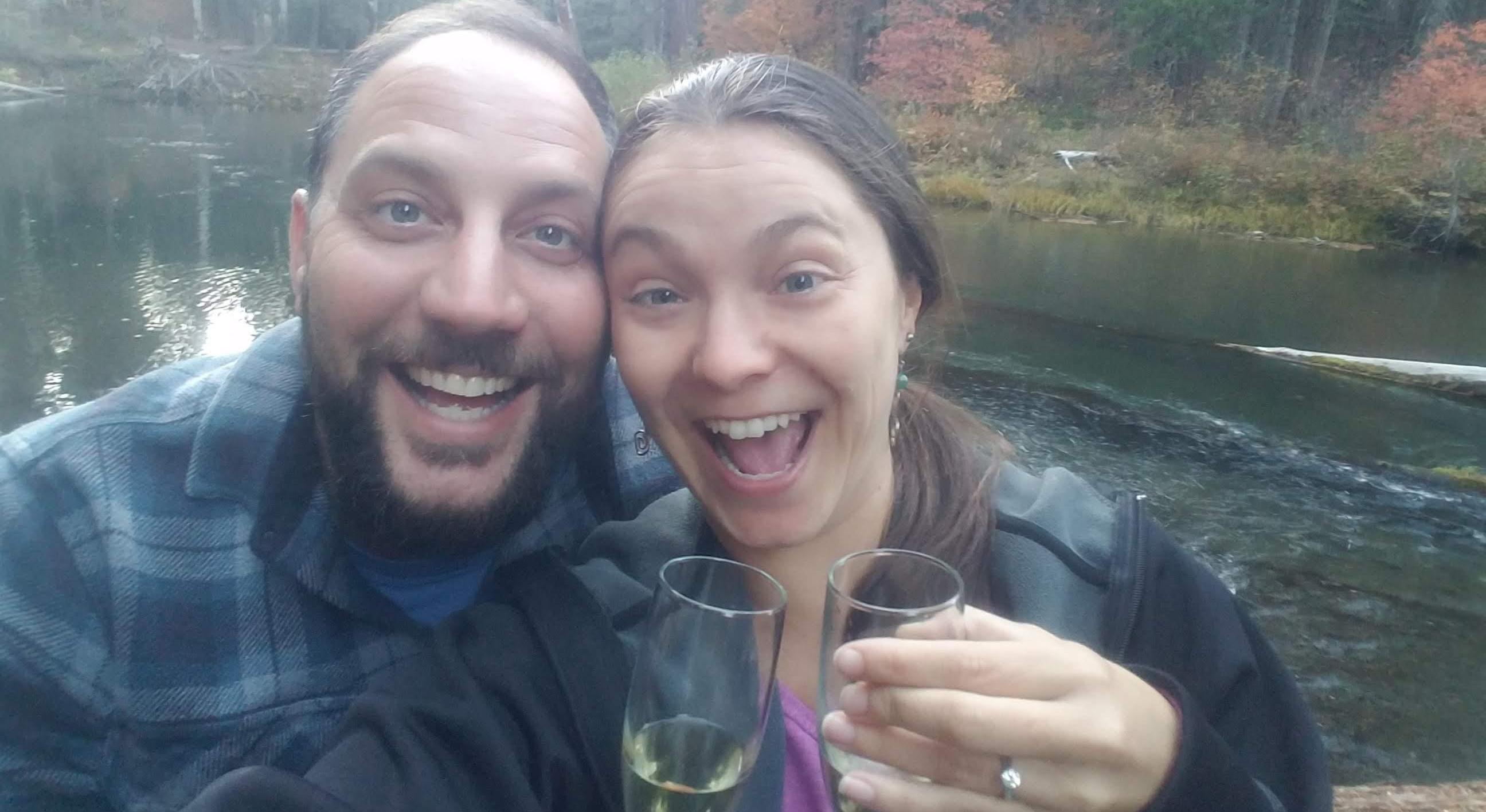 During a road trip back to Bend from our camper down in southern Oregon, Dan suggested a mid-way stop at our common meeting spot for a stretch, a quick hike, and of course some of Becky's world famous pie. It was a peaceful, fresh fall day in October and we hiked along Union Creek to where it meets the Rogue River. There's a big ole Ponderosa that has fallen and lays across the confluence. We climbed up to sit, relax and meditate. After taking in the beauty of the area, we got up to continue our hike when Dan said "hold on Mel, you've got some leaves on your back, let me brush them off." Innocently, Melanie turned around, Dan brushed a bit and said, "Ok, turn back around" and when she did, he was on one knee. The rest is history <3