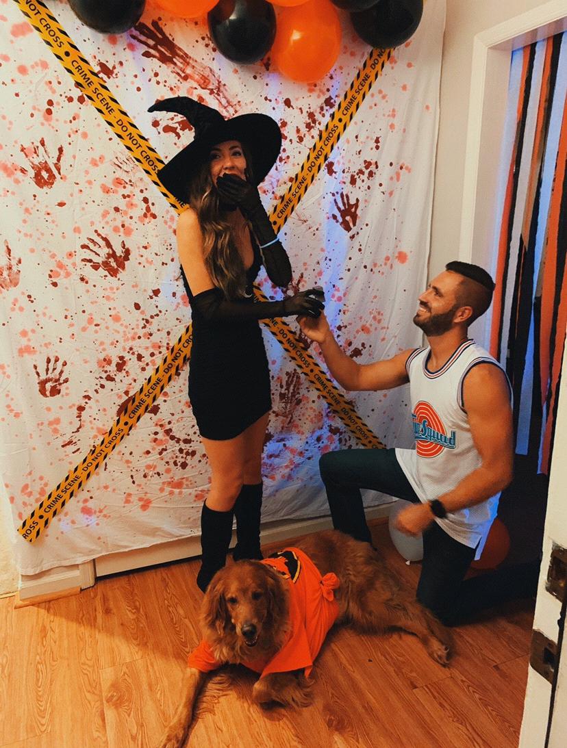 Proposal at our Halloween party, in the foyer of our first home