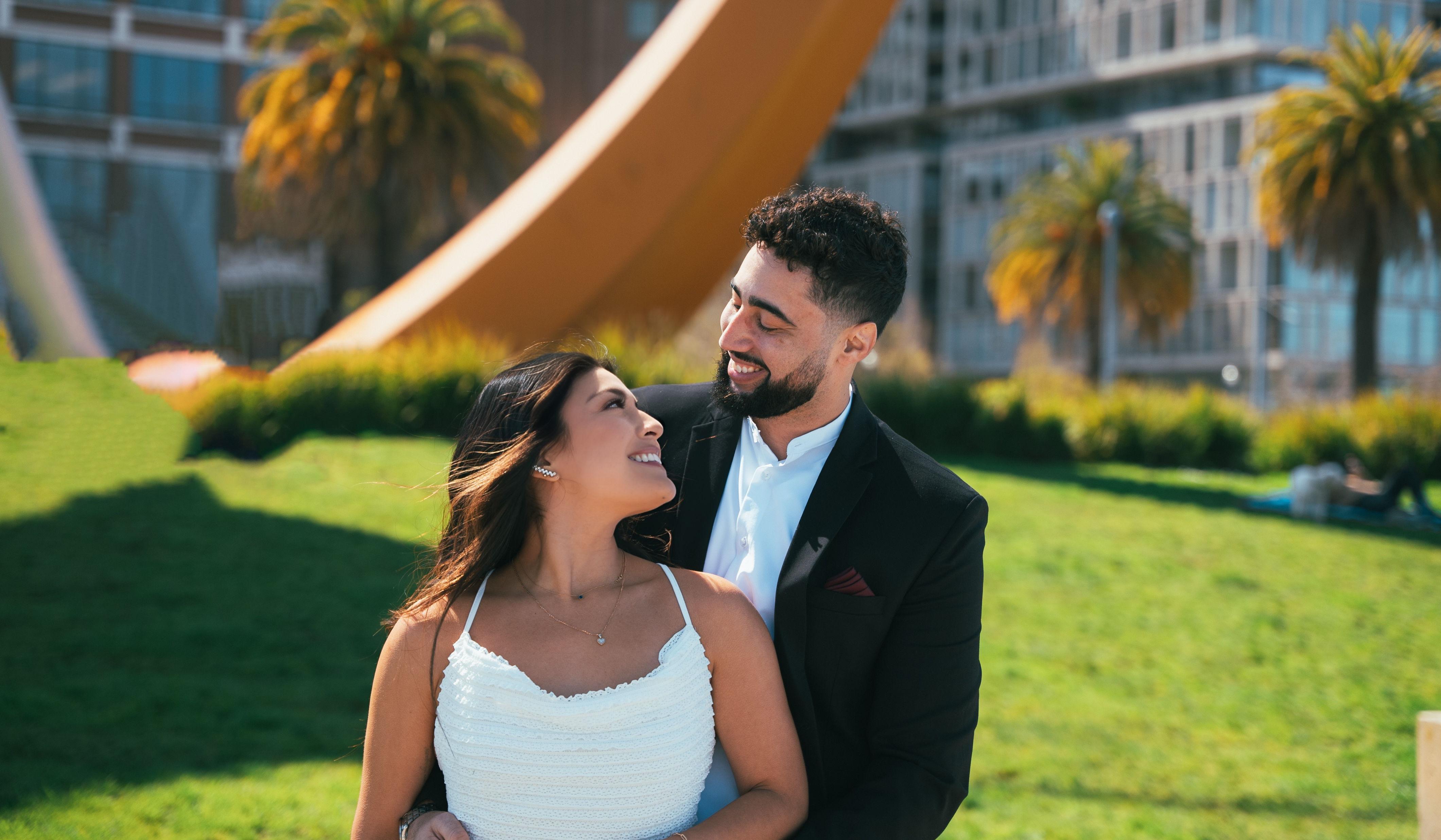 Angie and Paul originally crossed paths as members of Fogo Na Roupa, a Brazilian Carnaval dance and percussion company based in the San Francisco Bay Area. The group can get pretty big during SF Carnaval season, so they didn't know each other at first. Angie is a dancer and would go to class regularly to do what she loves while working on her craft. Paul would be one of the drummers providing the soundtrack and energy that kept class moving. After a few months Paul began to really take notice of Angie. He could tell that dancing was her happy place (still is) and was drawn to seeing how joyful she was while moving down the line (still am). Eventually, he worked up the courage to approach her after class one day at the water fountain. Neither can remember exactly what he said, but it must have been sweet, funny, and charming because, well, clearly it worked out ;). The two spent the next few weeks lightly getting to know each other until Angie took the first step and asked Paul out on a date. They went to dinner and a movie and quickly realized how much they enjoyed spending time together. As soon as they could they started setting up regular dates and a love connection began to blossom. To this day there is still some debate over who asked who to officially be their boyfriend/girlfriend. Ask either side of the couple and you'll get different answers. While we may never know for sure, what we do know is that this couple was building the foundation that would one day lead to them wanting to spend their lives together. Angie and Paul are each other's best friends, travel partners, forever dinner dates, dog co-parents, and more. They still regularly attend Fogo classes and enjoy being able to perform together as well. They care for their friends and family deeply and are looking forward to celebrating the love they have for each with the people that mean the most in their lives.
