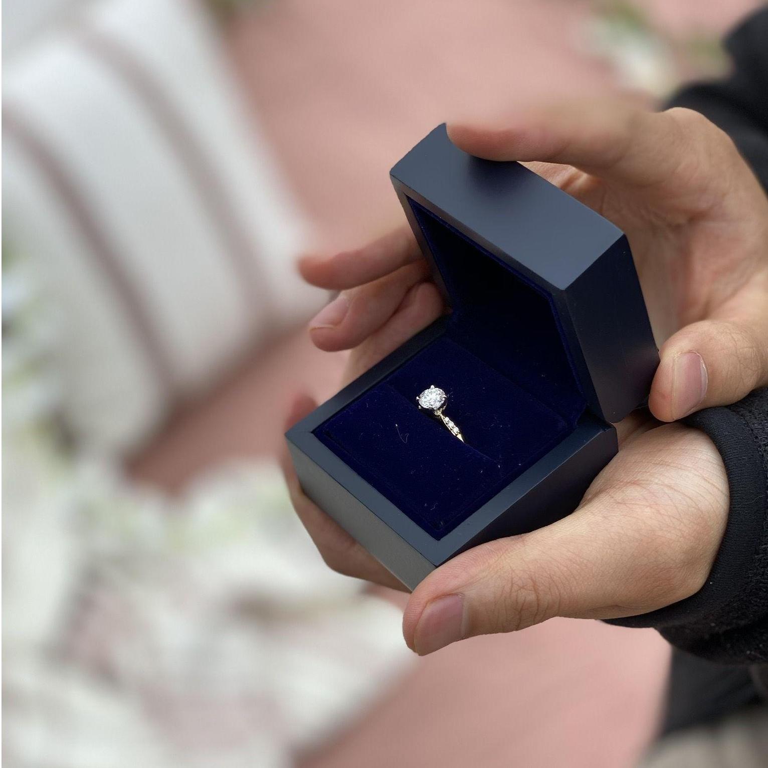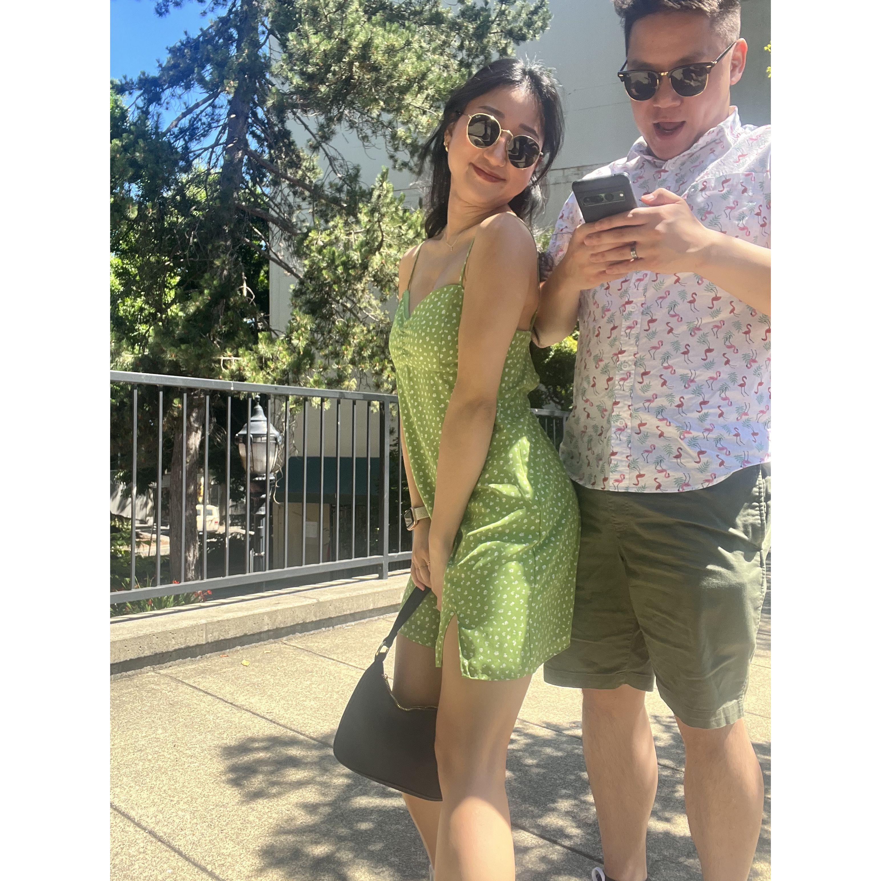 Wedding dress shopping, Garrett stood outside