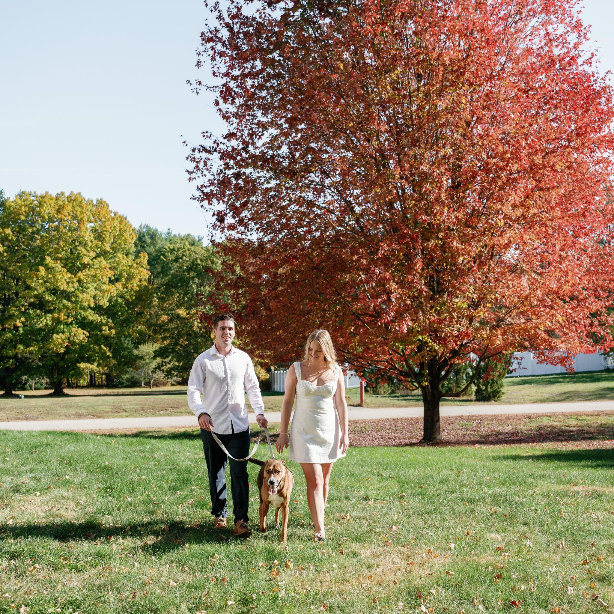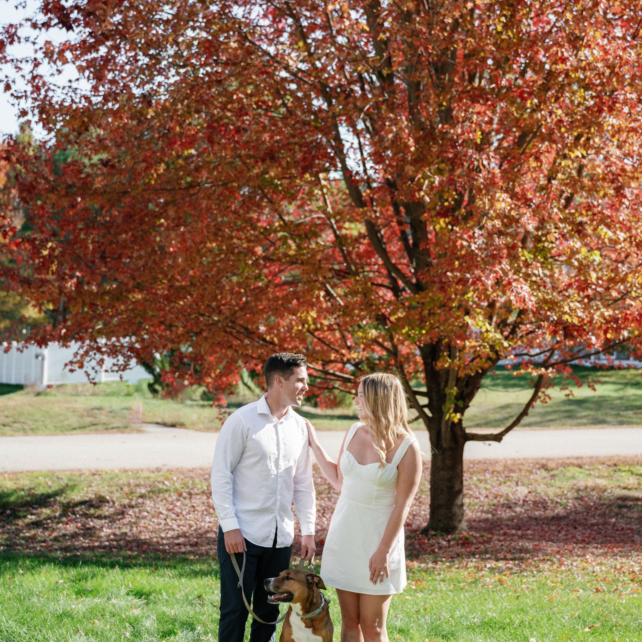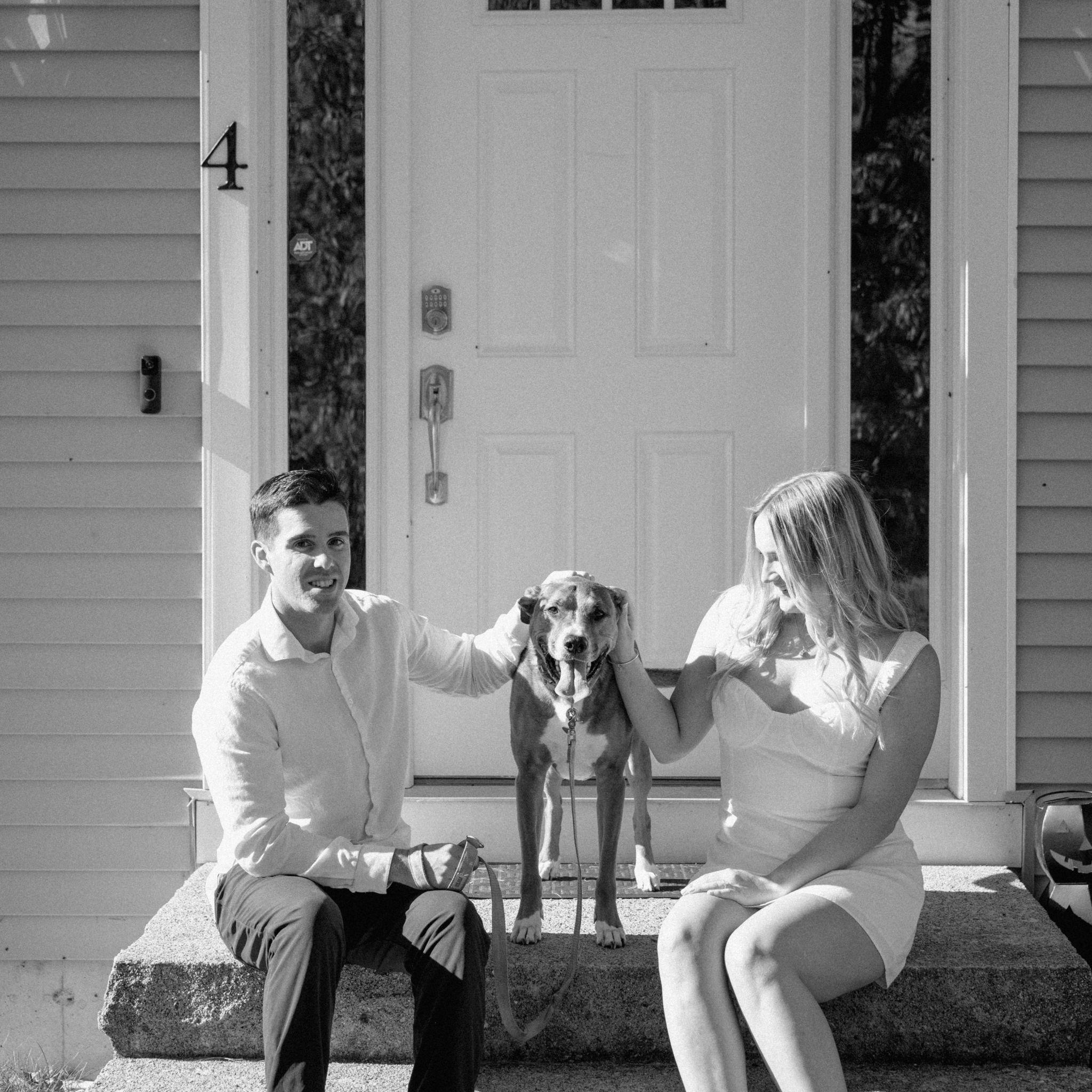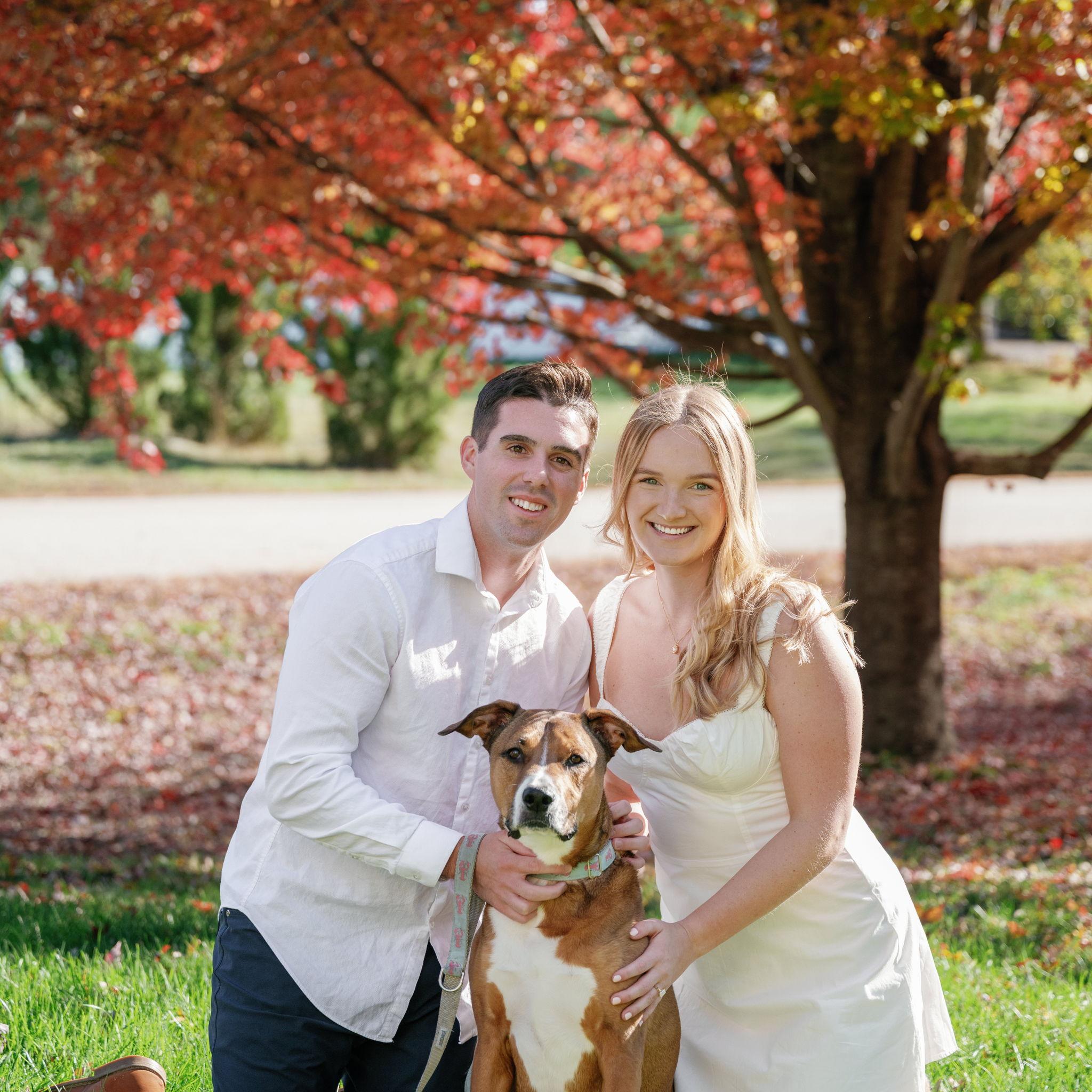 Kelly and Tommy both found their way to Raleigh, North Carolina, after college—by chance—where they met in 2020 through mutual friends just before COVID shut everything down. What started as a night out turned into three years in Raleigh filled with friends, adventures to the beach, trips to Key West (yes, more than once) and the Virgin Islands. In 2022, they moved north to Maine, bought their first home in January 2024, and added plenty of snow shoveling to their routine (well, Tommy did). Tommy also taught Kelly how to ski—though she may enjoy après-ski a little more. Life in Maine has been full of Pine Point Beach days, brewery stops, home projects, and new adventures. Their dog Ella, who Tommy got in college, has been along for the ride, happily collecting more than her fair share of treats. From Raleigh rooftops to Maine winters, it’s been an adventure they wouldn’t trade for anything.