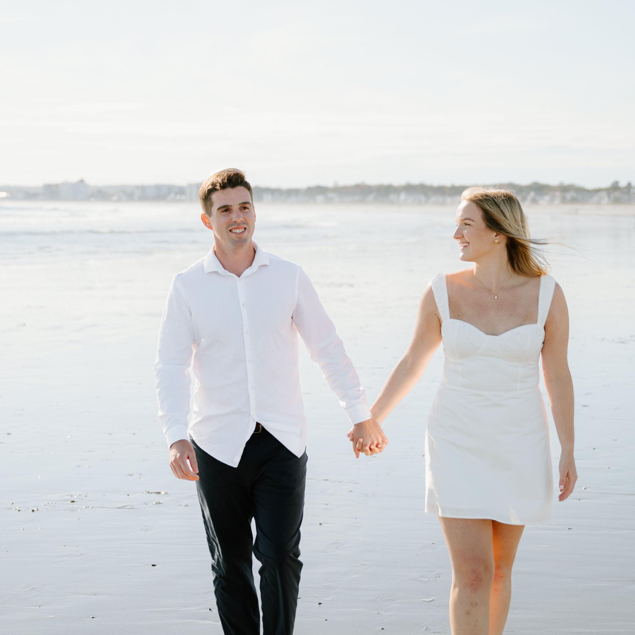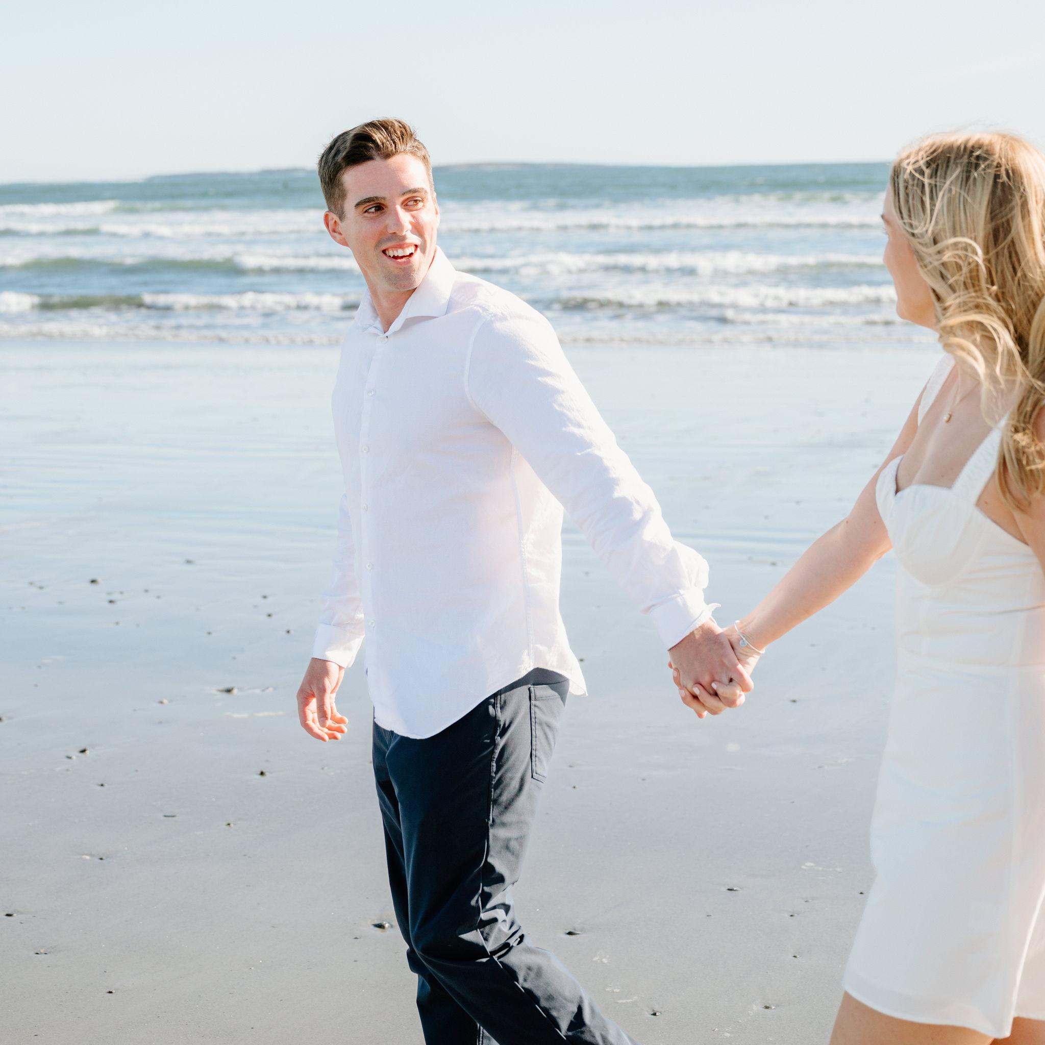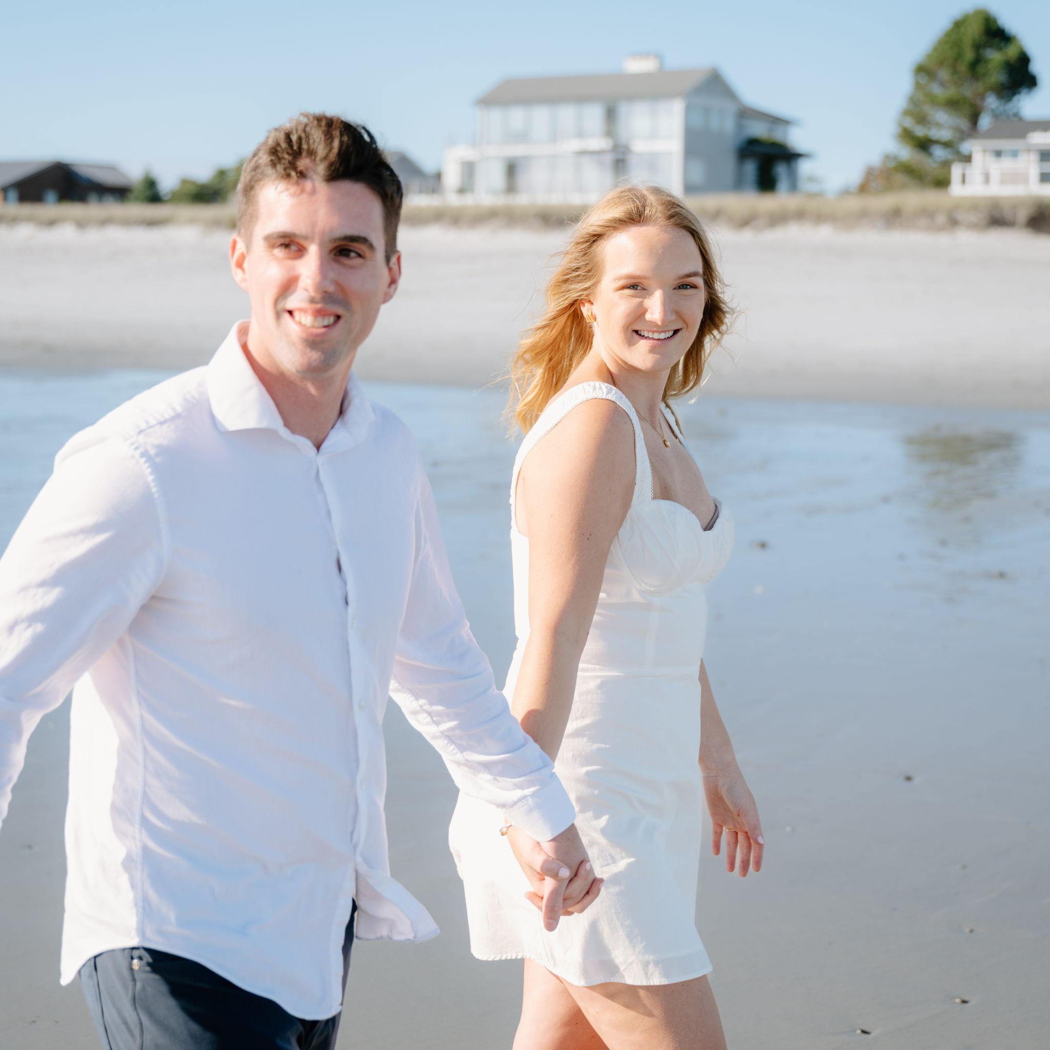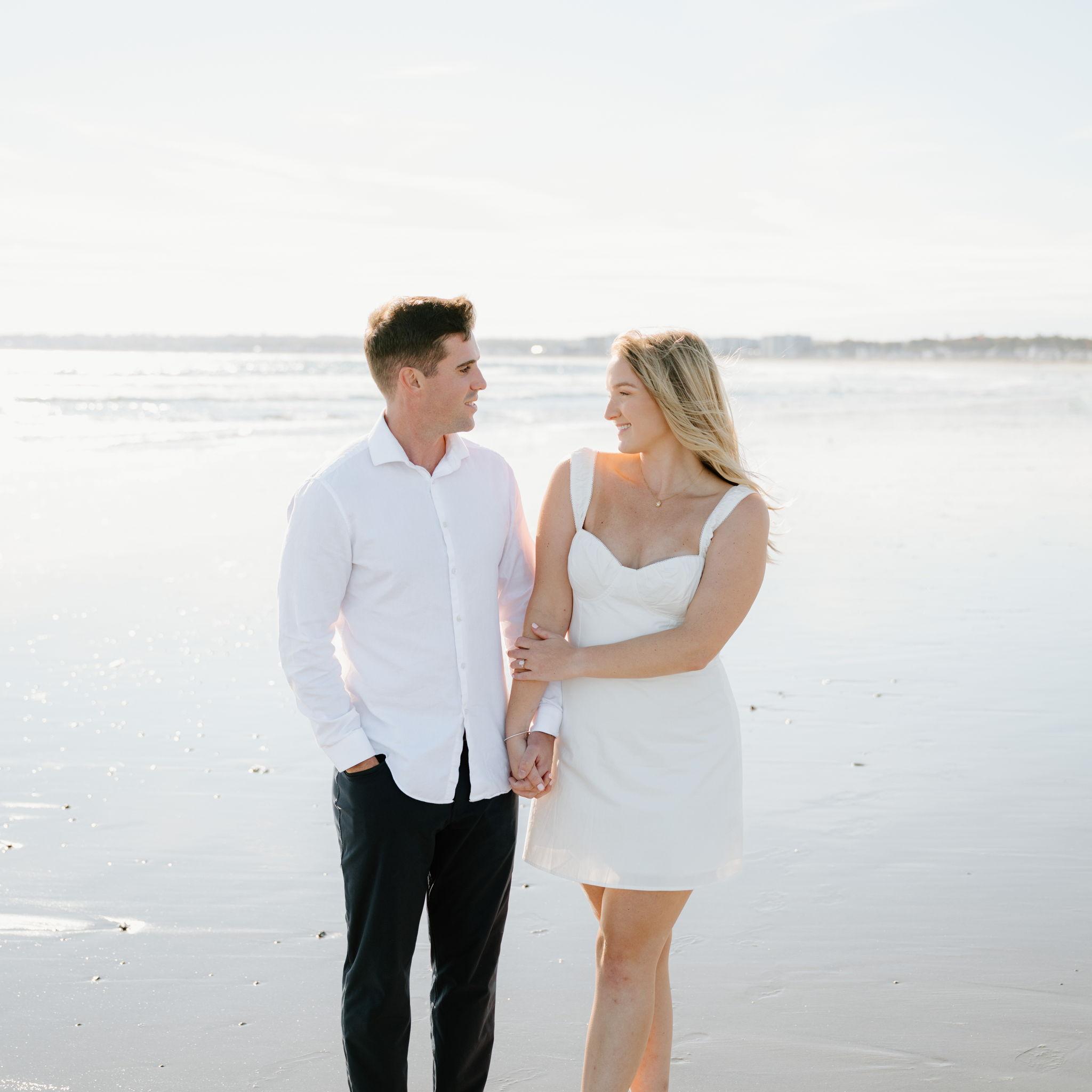 Kelly and Tommy both found their way to Raleigh, North Carolina, after college—by chance—where they met in 2020 through mutual friends just before COVID shut everything down. What started as a night out turned into three years in Raleigh filled with friends, adventures to the beach, trips to Key West (yes, more than once) and the Virgin Islands. In 2022, they moved north to Maine, bought their first home in January 2024, and added plenty of snow shoveling to their routine (well, Tommy did). Tommy also taught Kelly how to ski—though she may enjoy après-ski a little more. Life in Maine has been full of Pine Point Beach days, brewery stops, home projects, and new adventures. Their dog Ella, who Tommy got in college, has been along for the ride, happily collecting more than her fair share of treats. From Raleigh rooftops to Maine winters, it’s been an adventure they wouldn’t trade for anything.