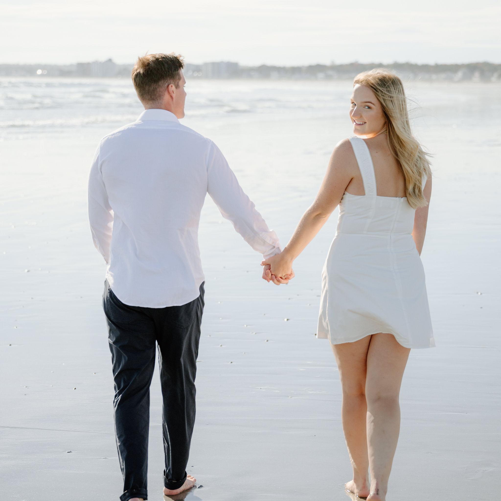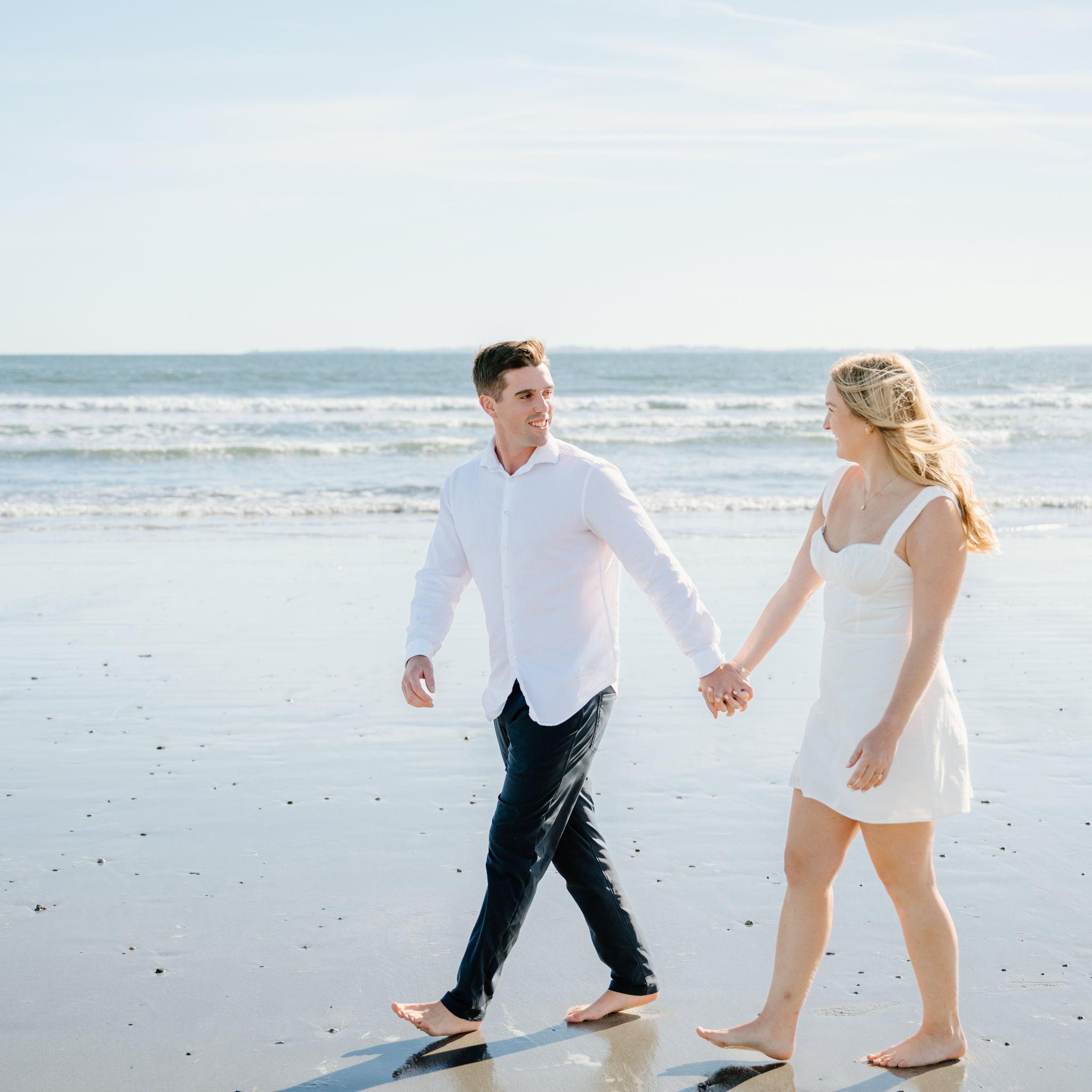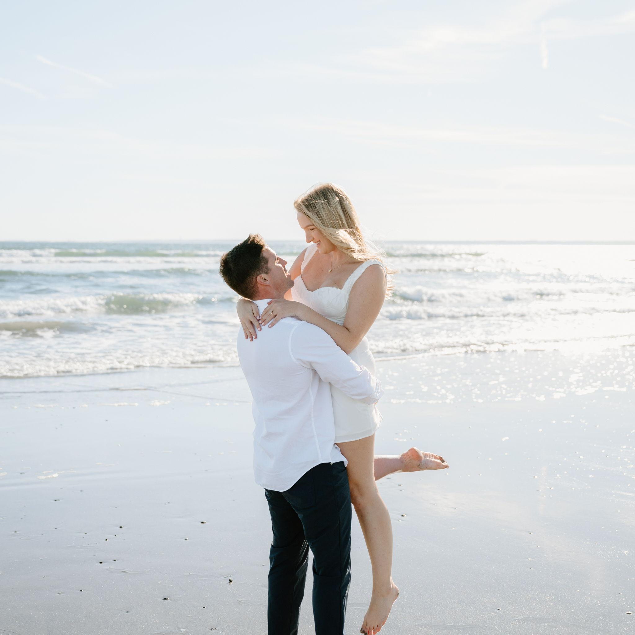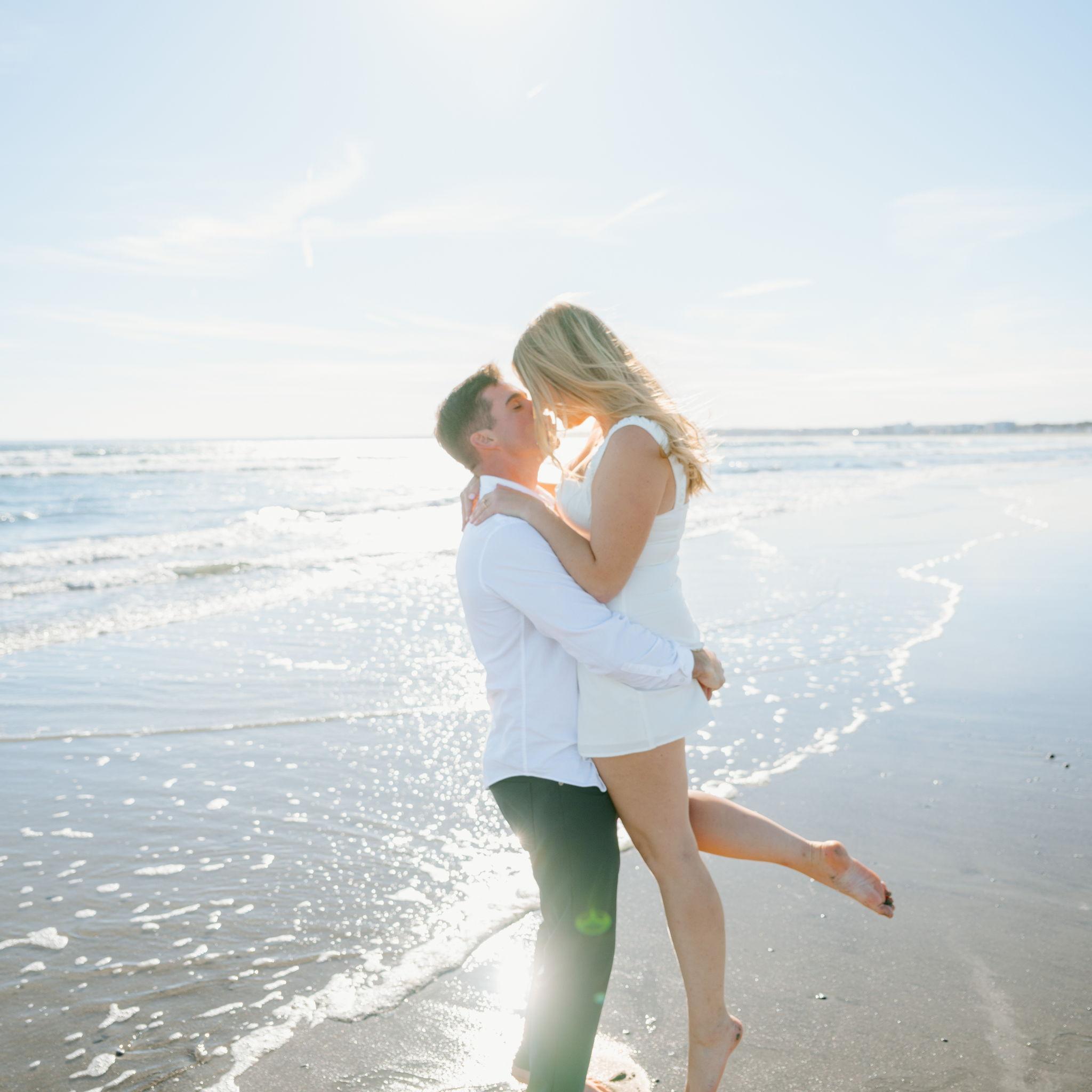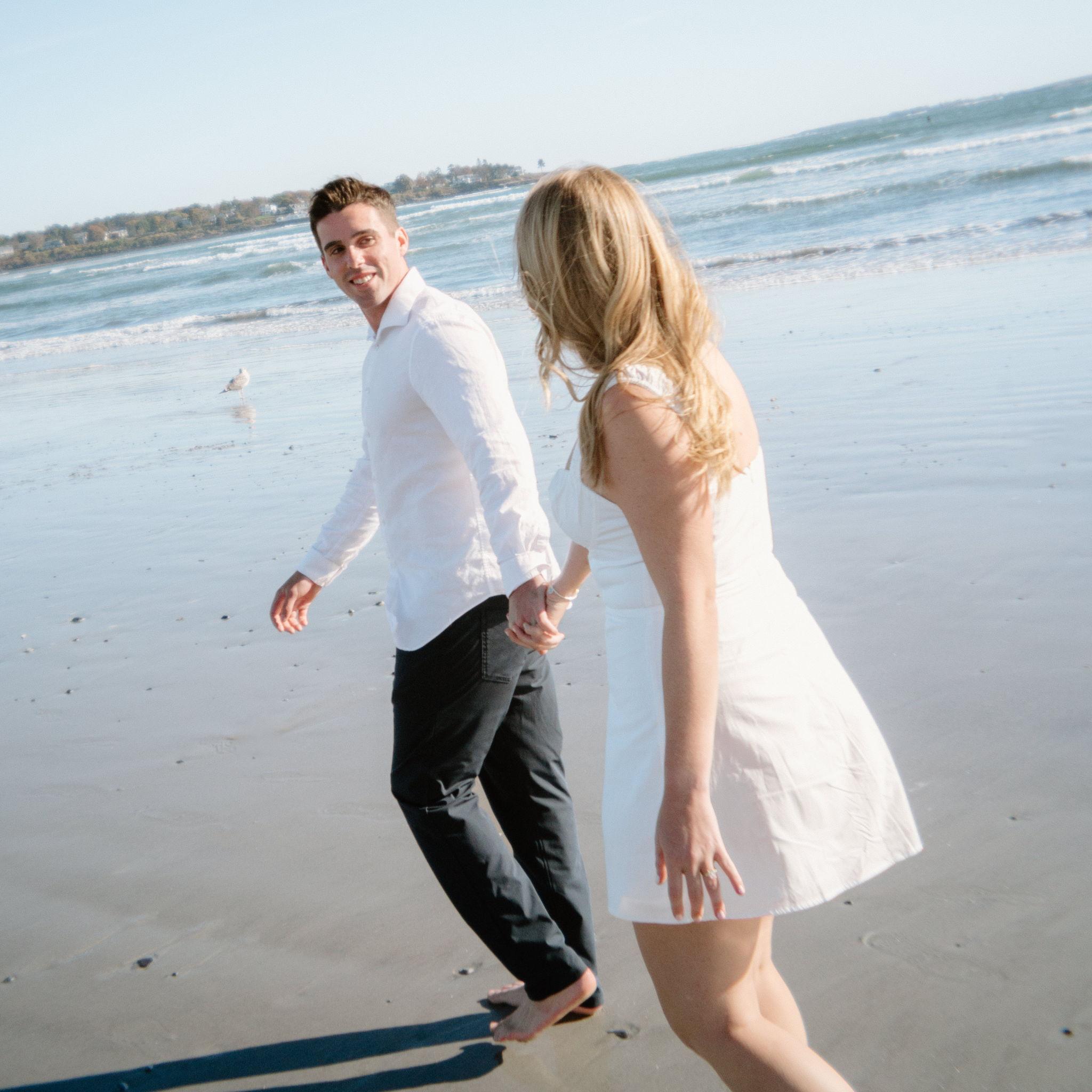 Kelly and Tommy both found their way to Raleigh, North Carolina, after college—by chance—where they met in 2020 through mutual friends just before COVID shut everything down. What started as a night out turned into three years in Raleigh filled with friends, adventures to the beach, trips to Key West (yes, more than once) and the Virgin Islands. In 2022, they moved north to Maine, bought their first home in January 2024, and added plenty of snow shoveling to their routine (well, Tommy did). Tommy also taught Kelly how to ski—though she may enjoy après-ski a little more. Life in Maine has been full of Pine Point Beach days, brewery stops, home projects, and new adventures. Their dog Ella, who Tommy got in college, has been along for the ride, happily collecting more than her fair share of treats. From Raleigh rooftops to Maine winters, it’s been an adventure they wouldn’t trade for anything.