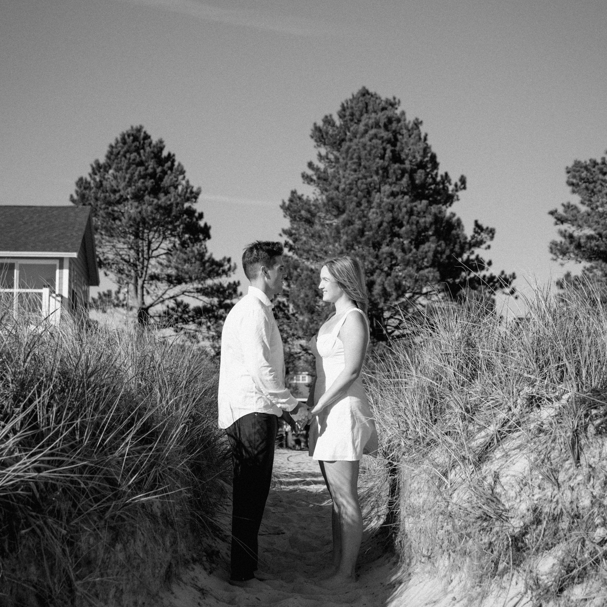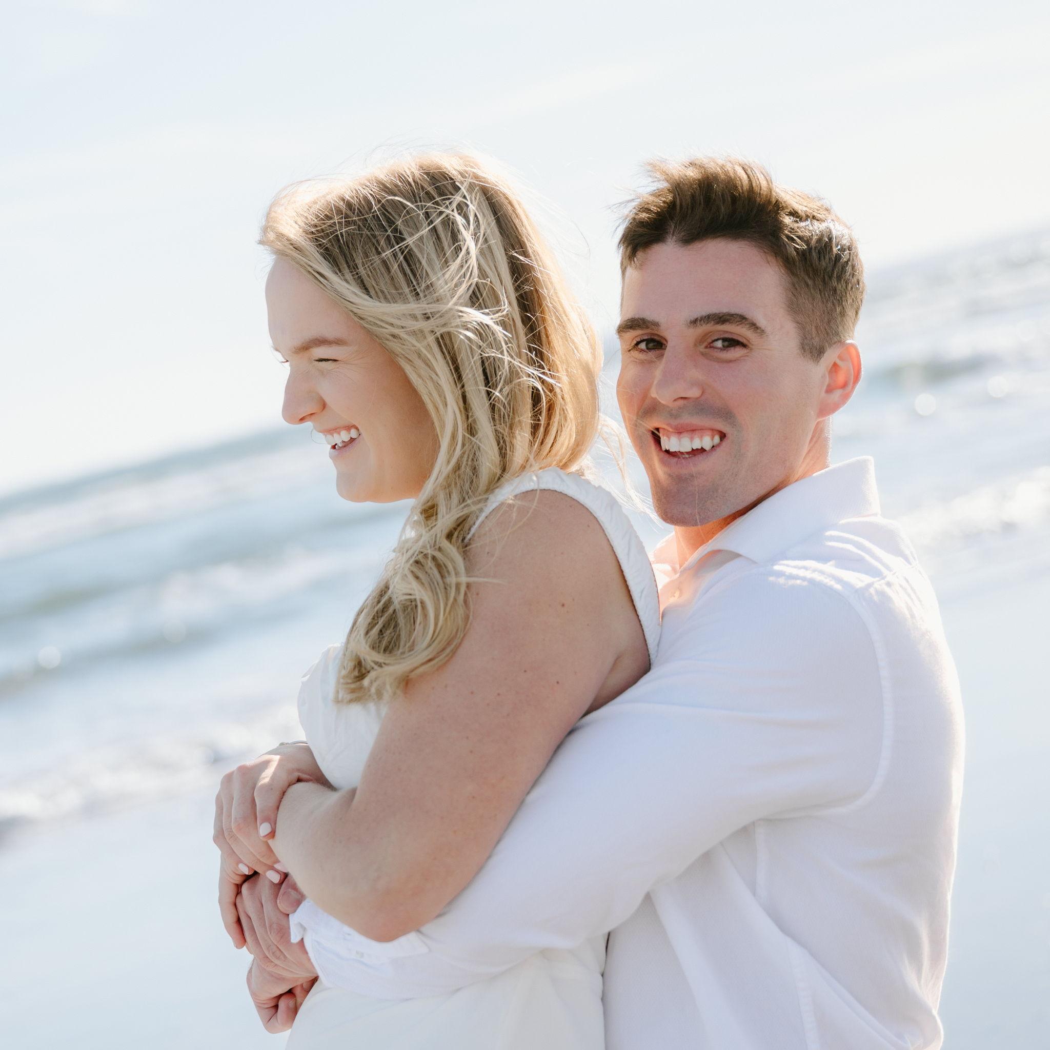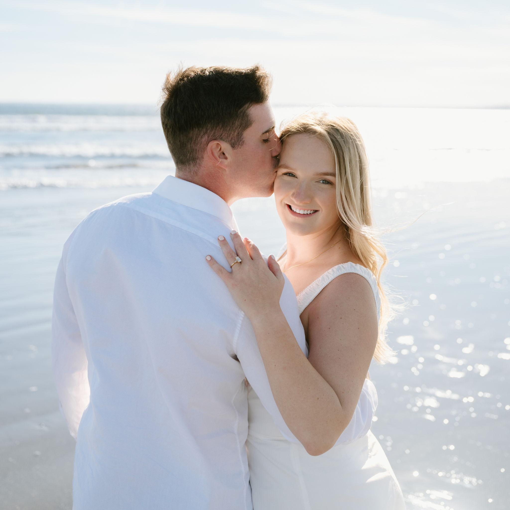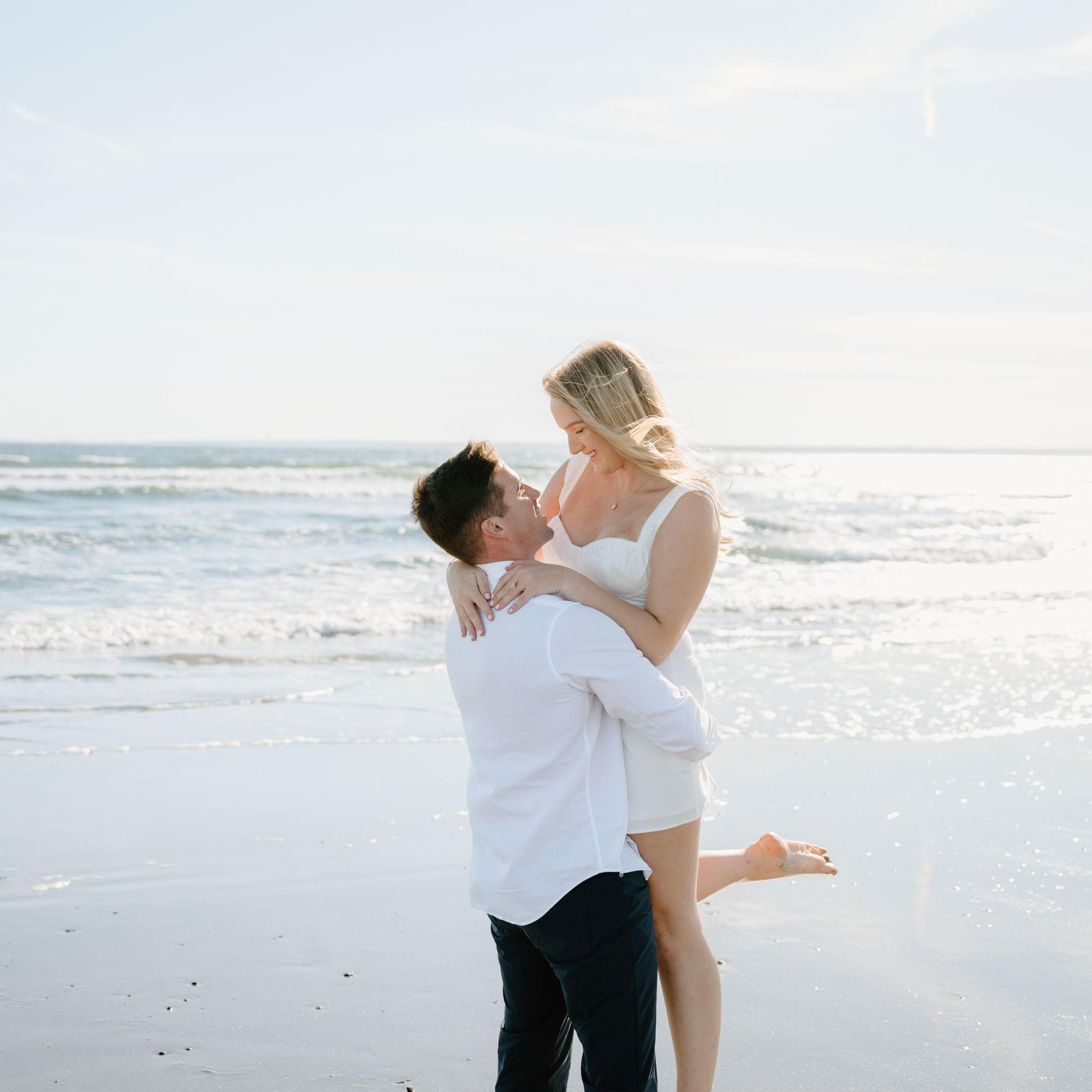 Kelly and Tommy both found their way to Raleigh, North Carolina, after college—by chance—where they met in 2020 through mutual friends just before COVID shut everything down. What started as a night out turned into three years in Raleigh filled with friends, adventures to the beach, trips to Key West (yes, more than once) and the Virgin Islands. In 2022, they moved north to Maine, bought their first home in January 2024, and added plenty of snow shoveling to their routine (well, Tommy did). Tommy also taught Kelly how to ski—though she may enjoy après-ski a little more. Life in Maine has been full of Pine Point Beach days, brewery stops, home projects, and new adventures. Their dog Ella, who Tommy got in college, has been along for the ride, happily collecting more than her fair share of treats. From Raleigh rooftops to Maine winters, it’s been an adventure they wouldn’t trade for anything.