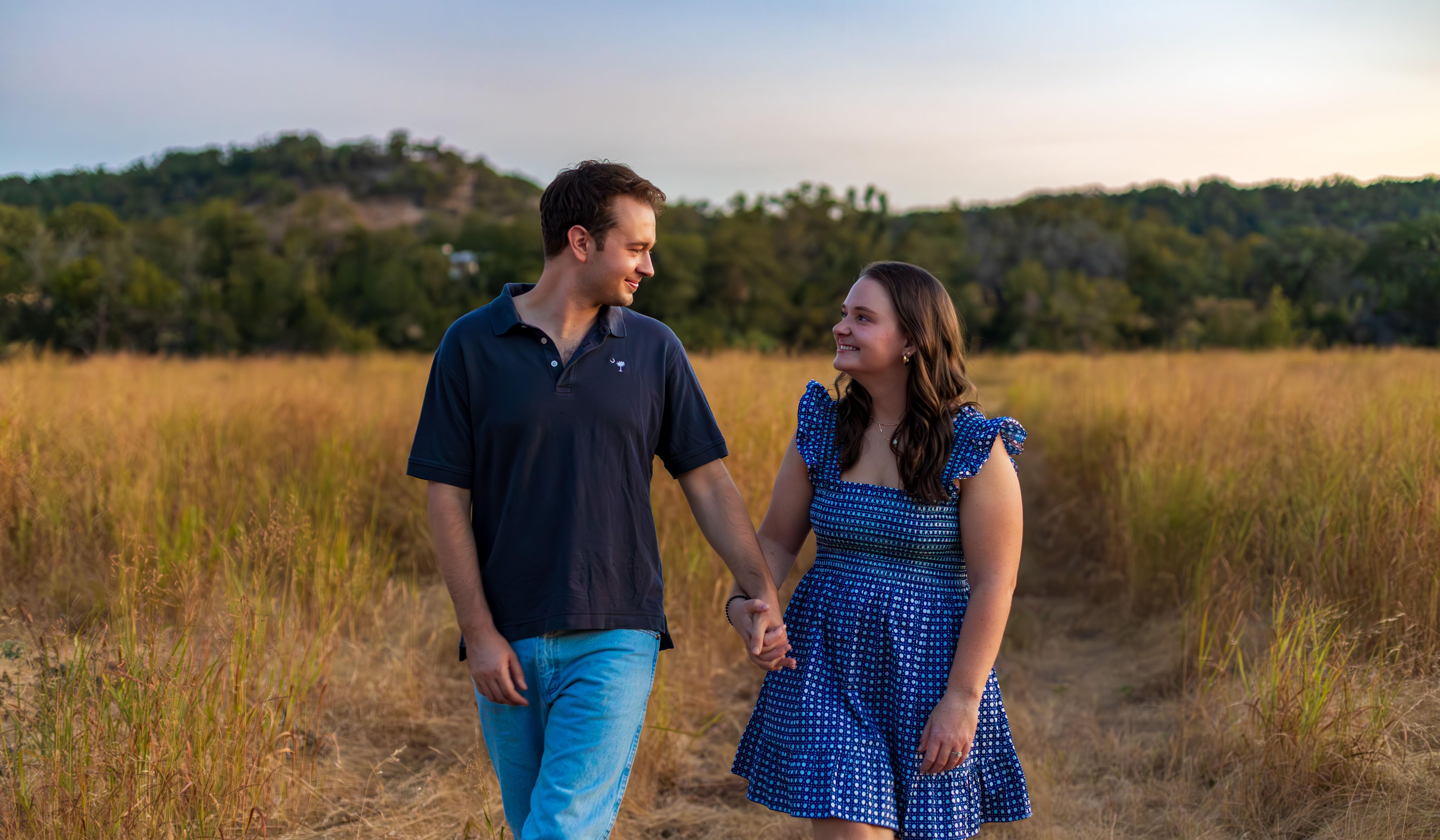 Shortly after Hannah moved to Texas to join George, they took a weekend trip to the hill country north of San Antonio. They hiked, enjoyed the rivers, and spent an evening in Fredricksburg. When they got back to their cabin, they headed down to the creek to watch the sunset. Once there, George got down down on one knee and proposed. We are so excited to celebrate this next chapter with the people that we love the most!