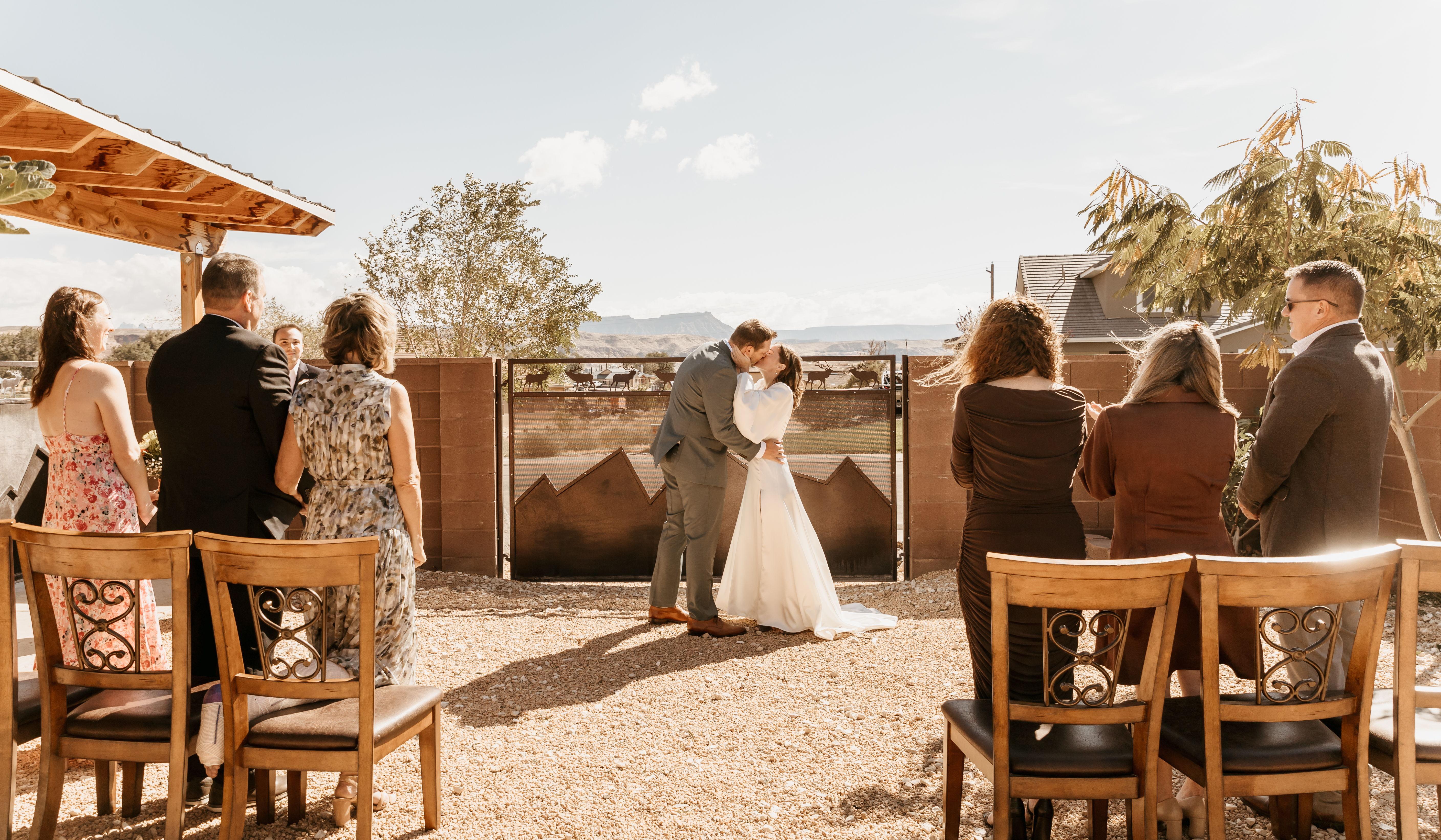 We had an intimate wedding ceremony in the backyard of an Airbnb outside of Zion. Jon's cousin, Brandon, officiated the wedding. Given Brandon single-handedly kept our relationship together during college on a few separate occasions, he more than earned the right. Our weekend consisted of family dinners, board games, Iowa State football games, and last-minute wedding prep. It was so wonderful that our parents had a whole weekend to get to know each other. We feel very fortunate to have seamlessly fit into each other's families and watching our families mesh the same way made it even sweeter.