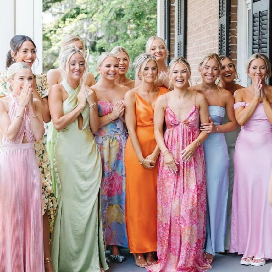 Our vibe is garden party chic—think semi-formal with playful florals, bright colors, and fresh, elegant touches. Since the ceremony will be outdoors, we recommend wedges, block heels, or flats (skinny heels and grass don’t mix!). Dress polished, comfortable, and ready to celebrate… and kindly, no jeans.