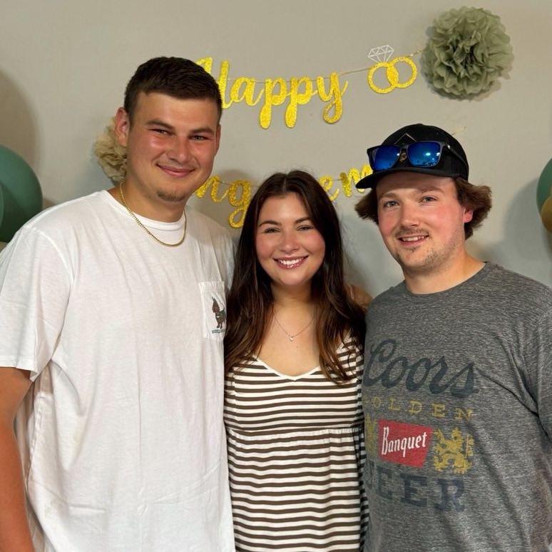 The groom and DJ first met in high school, but their friendship really took off in the summer of 2018. That summer was full of adventures — hanging out with the bride and groom, afternoons at the rope swing, and the unforgettable attempt to chew an entire container of Hubba Bubba. Since then, DJ has been a loyal friend and someone the groom can always count on to talk through life with a real and honest perspective. Some of the best memories together include hunting trips to North Dakota — especially the day DJ came strolling through the field in bright pumpkin underwear, proudly carrying a handful of ducks like it was the most normal thing in the world — and weekends at the cabin swapping stories. DJ’s loyalty, humor, and friendship mean the world to the groom, and he couldn’t imagine his wedding day without him by his side.