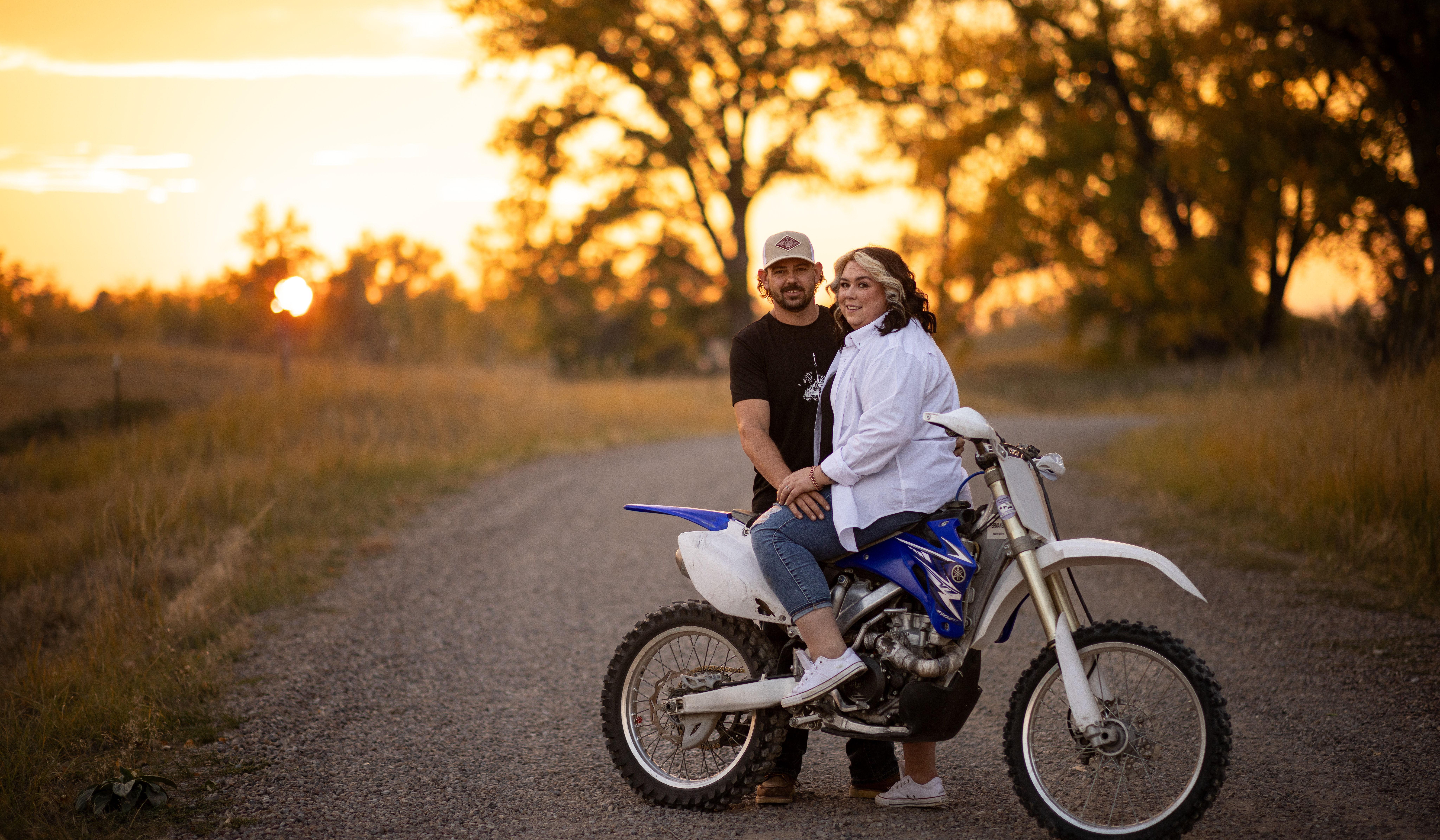 Dylan and I met in April 2023 at the Cowboys Bar through one of our amazing friends Katie, without her we would not be where we are today. Although I do not remember exactly how we started talking but just know our conversation ended with a whole lot of dirt bike talk. Little did I know that not only did I just meet one of the most amazing men in my life, but my world would change for the better. Dylan and I became your typical friends on Facebook sending the occasional GIF back and forth and asking how each other's days have been until we ran into each other again on a random night and that's really when things changed. I was out with some friends celebrating their birthday, once again at the Cowboys, we hung out there for a bit but when it was time to go, I asked Dylan if he wanted to tag along with us. Next thing you know here is Dylan out and about with a bunch of girls having a good time and if you have ever met Dylan, he knows how to make the party fun. That is the night that truly put us were we are today. Growing our love, future, and family together.