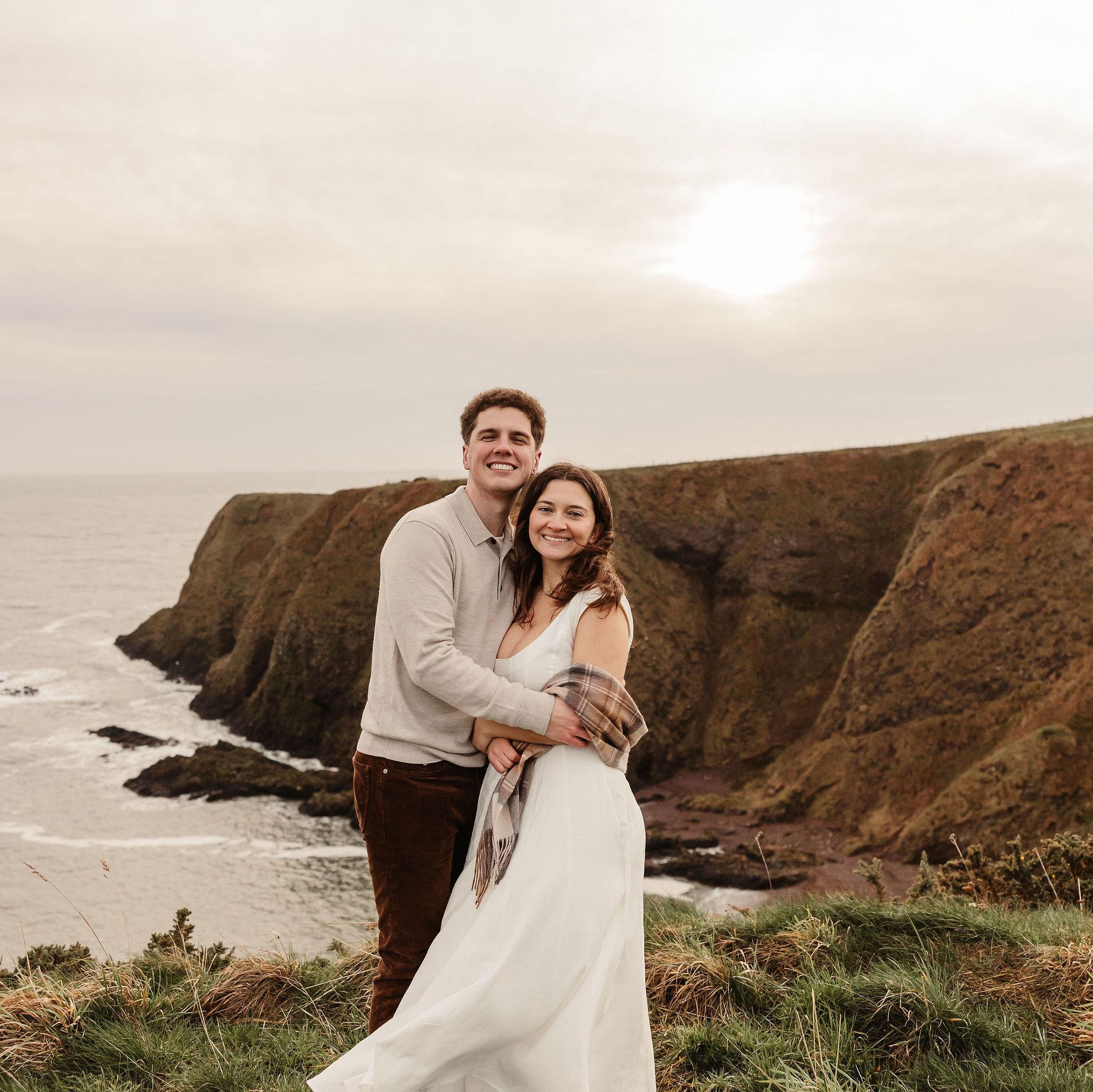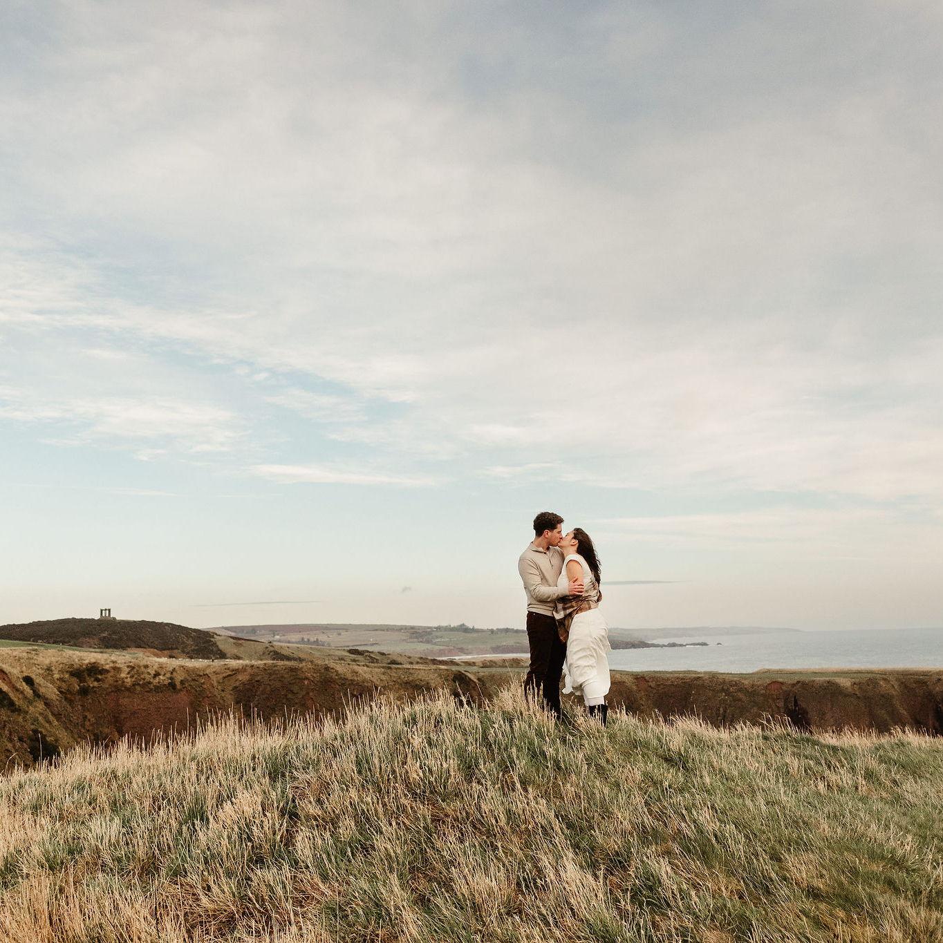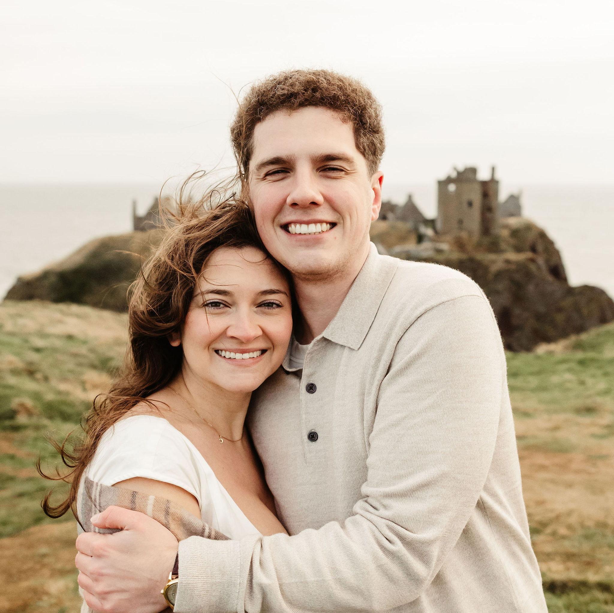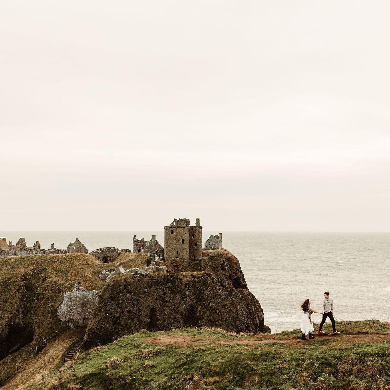 Engagement photos at Dunnottar Castle, 20 minutes from Drumtochty!
