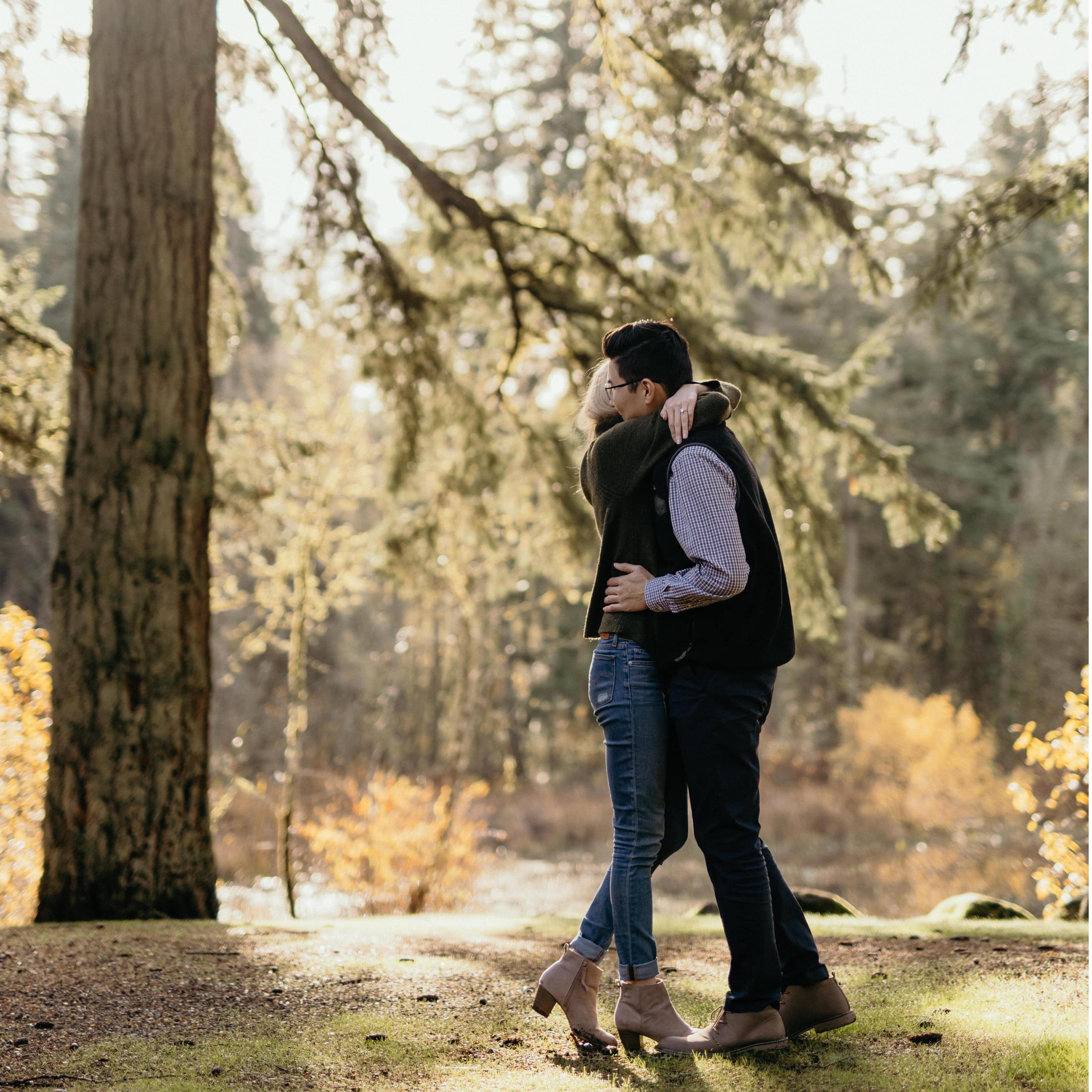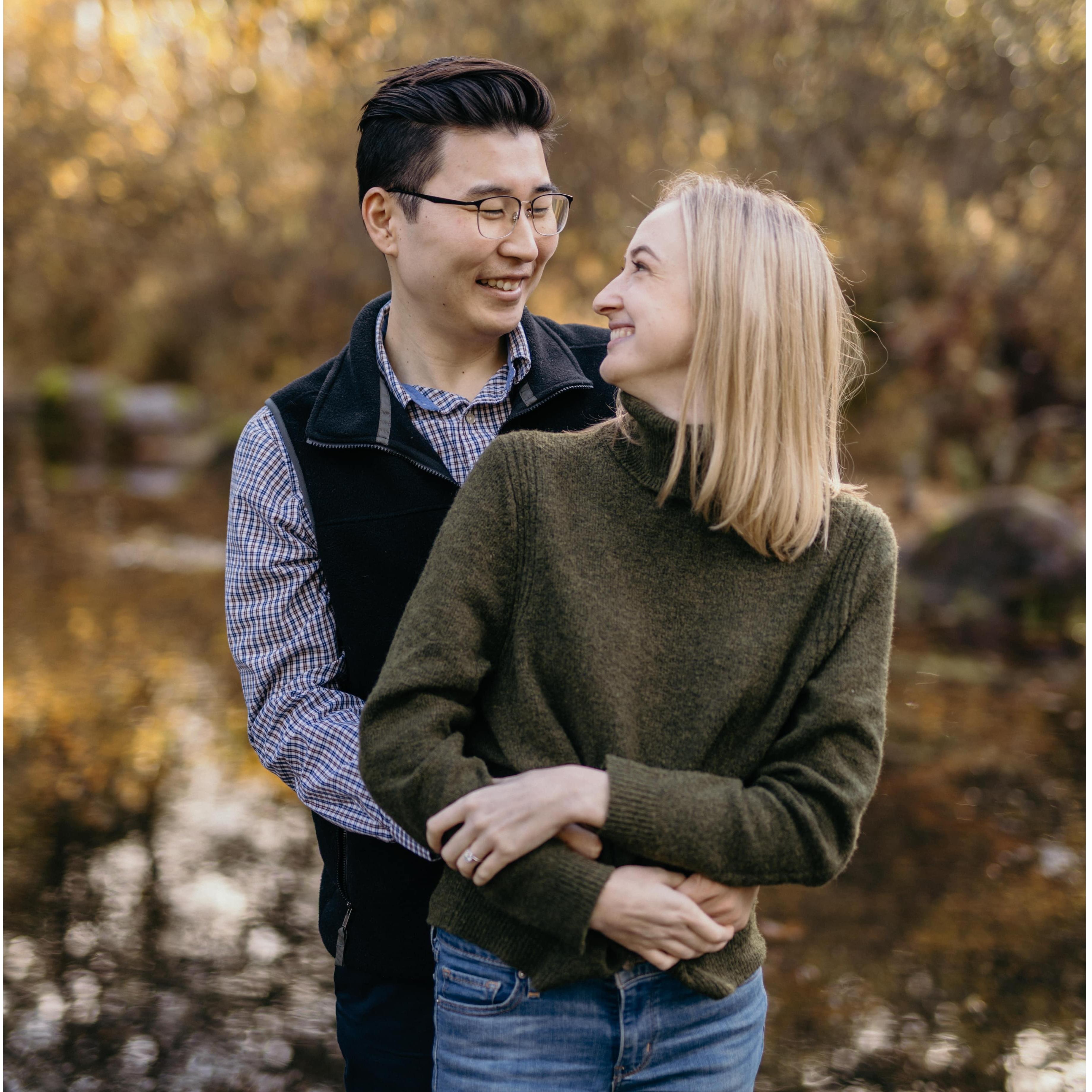 We’re engaged! Kai proposed while on a hike on the Columbia River.