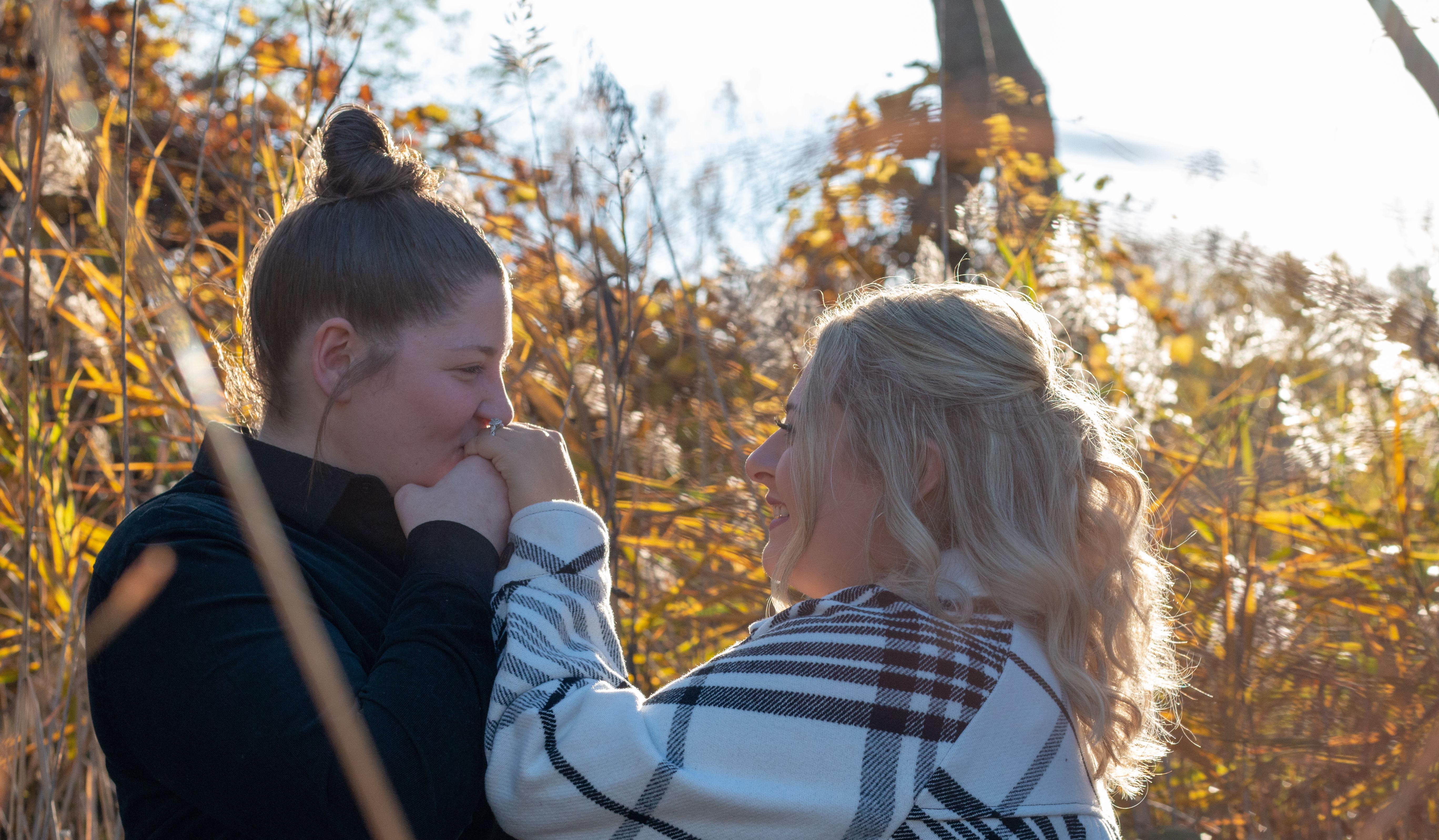 We met on the dating app "Bumble". Macee used her 1 "SUPER SWIPE" on Hannah and the rest has been history. We quickly bonded over our passion for animals, food and true crime. Our first date was on April 1, 2019 at Paninis in Strongsville and we haven't been separated since. What was supposed to be an hour date, quickly turned into 3 hours. On April 11, 2019 at 4am Hannah asked Macee if she "wanted to do this thing" to which Macee replied yes. Our first vacation was to Niagara Falls in June of 2019. We spent two days exploring the beautiful caves, taking a ride on "Maid of the Mist" and viewing the breathtaking falls. But little did we know, the best part of that trip was falling in love with one another overlooking the water. We quickly blended our lives together as Hannah moved to Massillon with her chihuahua, Remy and he had to learn to share his mom with Finny the Saint Bernard and Sissy the Newfoundland. Our love flourished as did our pet count. Three dogs quickly turned into five and we quickly added in some cats, too. Our families melted and meshed so great together. Hannah would spend hours at Macee's parents house alone hanging out in the garage drinking "Twisted Teas" with Macee's dad. Macee would spend hours on the phone with Hannah's mom discussing dog related topics. On February 21, 2021 we took another trip to the place we fell in love. Down on one knee in front of the Falls, Hannah asked Macee for forever. Completely caught off guard, she agreed. A fun filled weekend turned into a weekend of celebrations. Over the course of the past 4 years, we have grown immensely as a couple. We will continue to put God first in everything we do, especially as we enter this journey into marriage. We want to thank each and everyone who has supported and loved us. We cant wait to celebrate with you all!