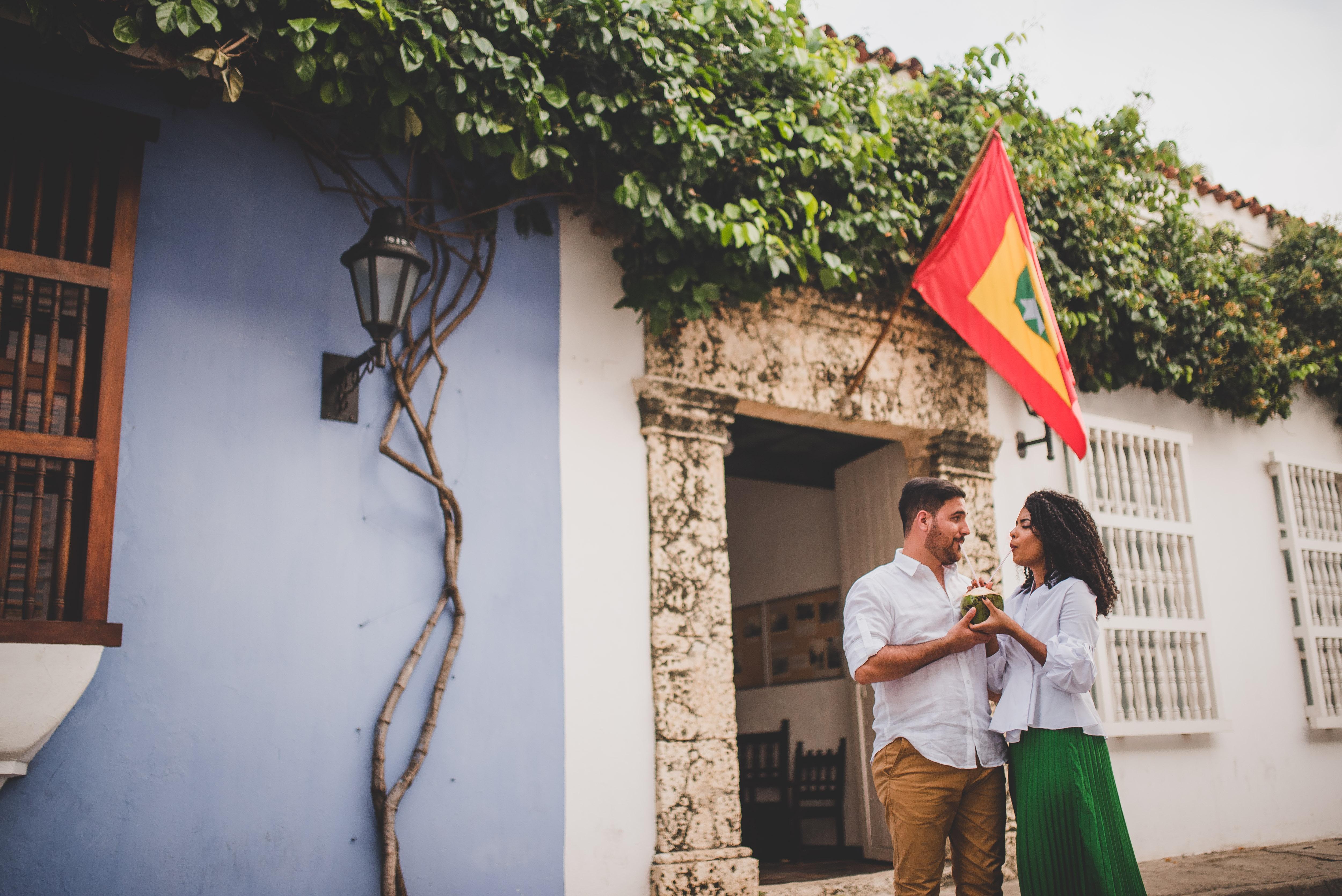 Cuenta La Novia: Conocí a Sebastian en enero de 2016. Nos vimos por primera vez en la iglesia y no hablamos hasta la tercera vez que nos vimos. La primera vez que salimos como amigos el me dijo “No te sientas prevenida cuando te invito a salir, yo solo quiero ser tu amigo” Y bueno… aqui estamos 3 años despues planeando nuestra boda jeje. Sebastian aprovecha hasta hoy cada pequeña oportunidad para verme sonreir. Luego de mi lucha interna por no enamorarme tan rapido, un día me declaro su amor sentados en el carro y ya a mi “se me habian aguado las paletas” Ademas de que siempre nos llevamos muy bien por que compartimos el mismo sentido del humor, amaba verlo en traje entero, yo me sentía que estaba saliendo con un professor y eso le daba un toque de aventura a la relación . Lo que mas nos unió fue nuestro sentido del humor. Me siento bendecida de estar con alguien con quien puedo ser la Hellen payasa, la champetua, la melaconlica etc y que nunca deja de disfrutarme y amarme. El, muchos dias se merece un noble por amarme con mis estados de animo, los que me conocen entienden. En 3 años este amor se ha hecho mucho mas fuerte y confío en Dios que guarde nuestras vidas para hacer Su voluntad. Según El Novio: Quedé intrigado al ver esos lindos crespos en la primera hilera de la iglesia. Era una noche normal, un servicio más, una persona nueva más, una invitada más; pensé. Aún no sabía que Dios había traido desde Cartagena mi ayuda idónea, quizás me hubiera vestido mejor. Pasaron los meses y sin esfuerzo nos hicimos amigos, pasábamos tardes improvisando nuestra historia de amor. Entre cafés, memes, chistes, y muy buena comida, terminé aceptando lo que traté de evadir tantas veces: me había enamorado de ella. ¿Cómo no enamorarse? Si es alegre como un carnaval, apasionada como el gol de una victoria sufrida, incondicional como la mejor de las amigas. Han pasado tres años desde que vi esos crespos por primera vez, y le pido a Dios que sea lo último que vea en esta vida.