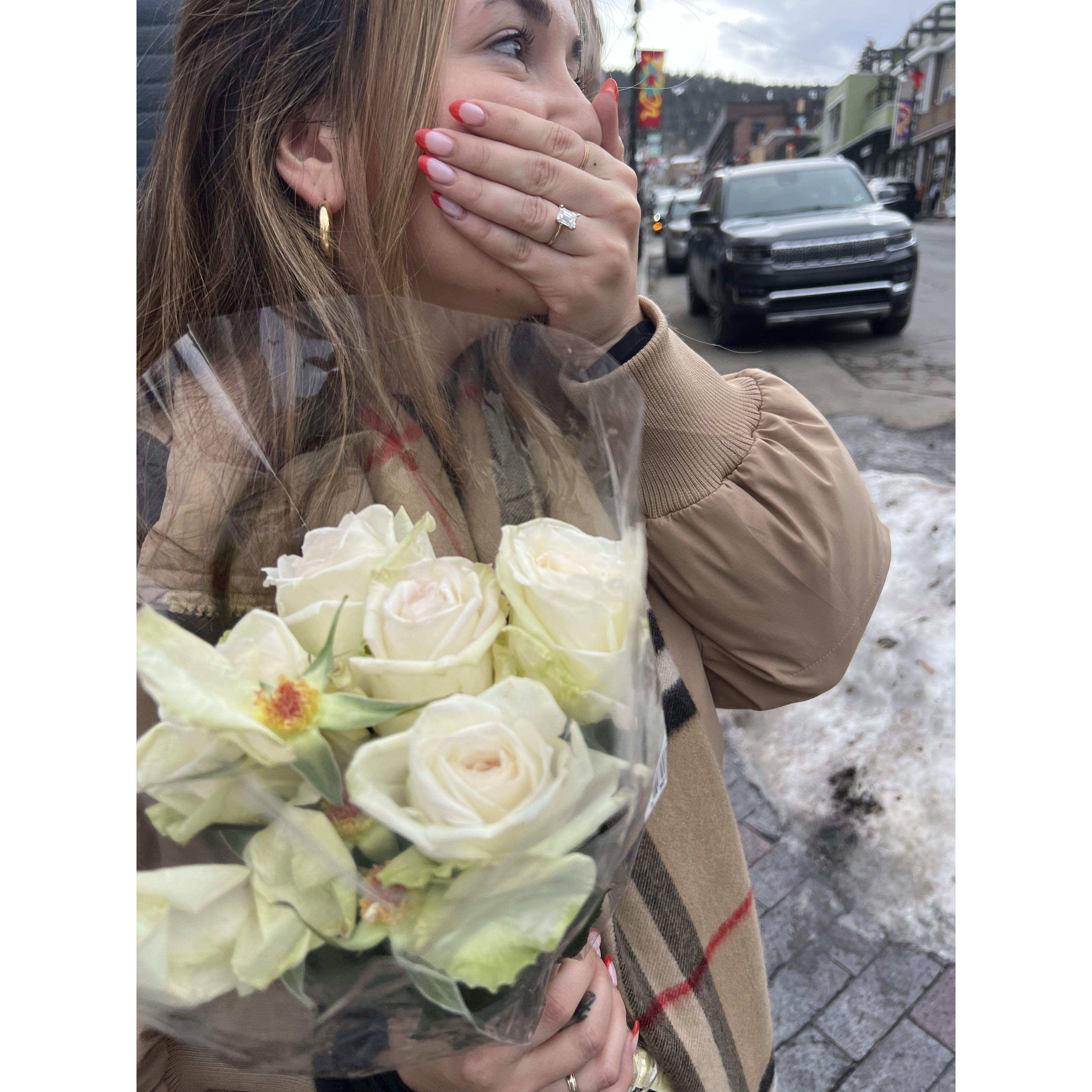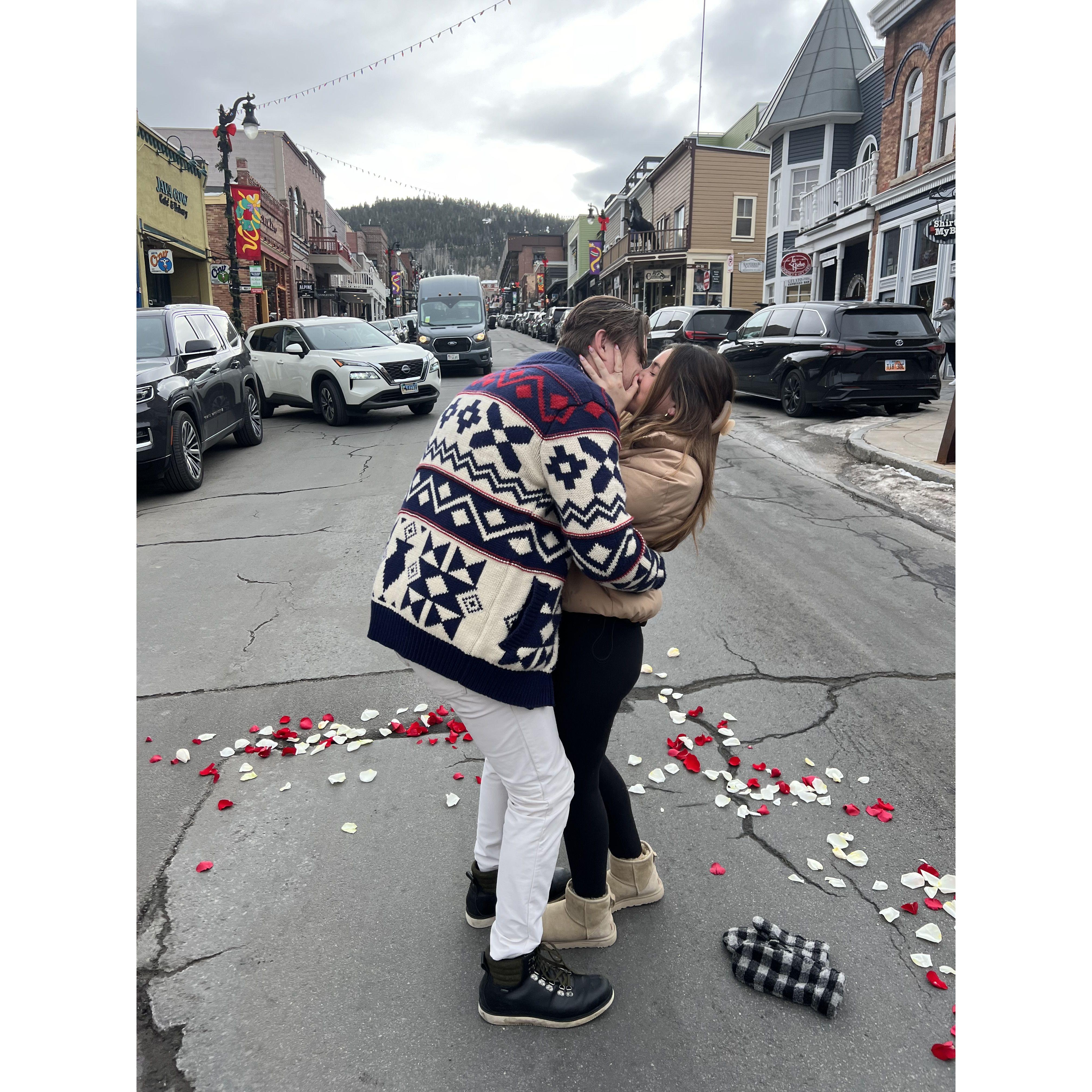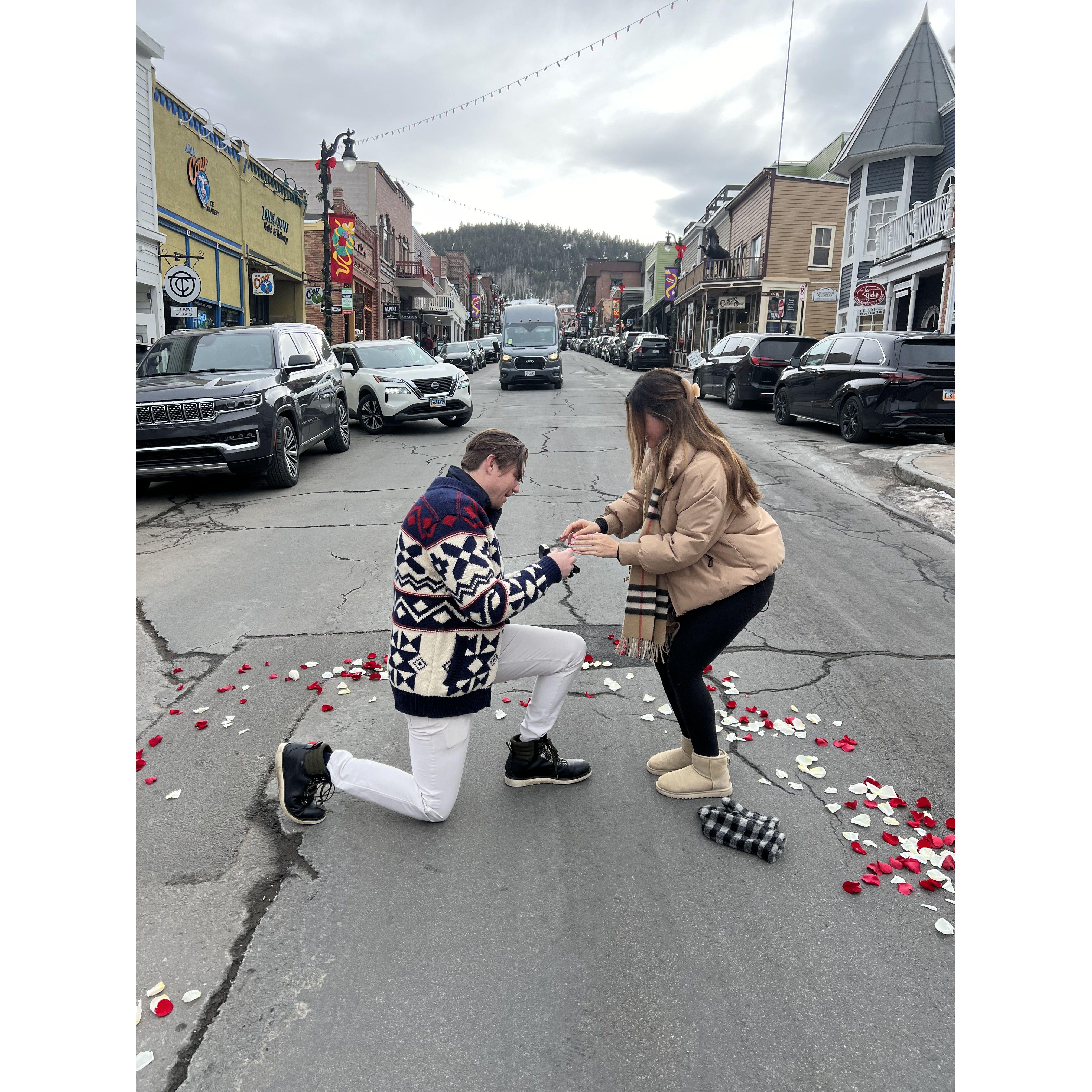 On December 30, 2023, he pulled me into the middle of Main Street, tossed some flower petals, and got down on one knee. It was the most special day. ❤️