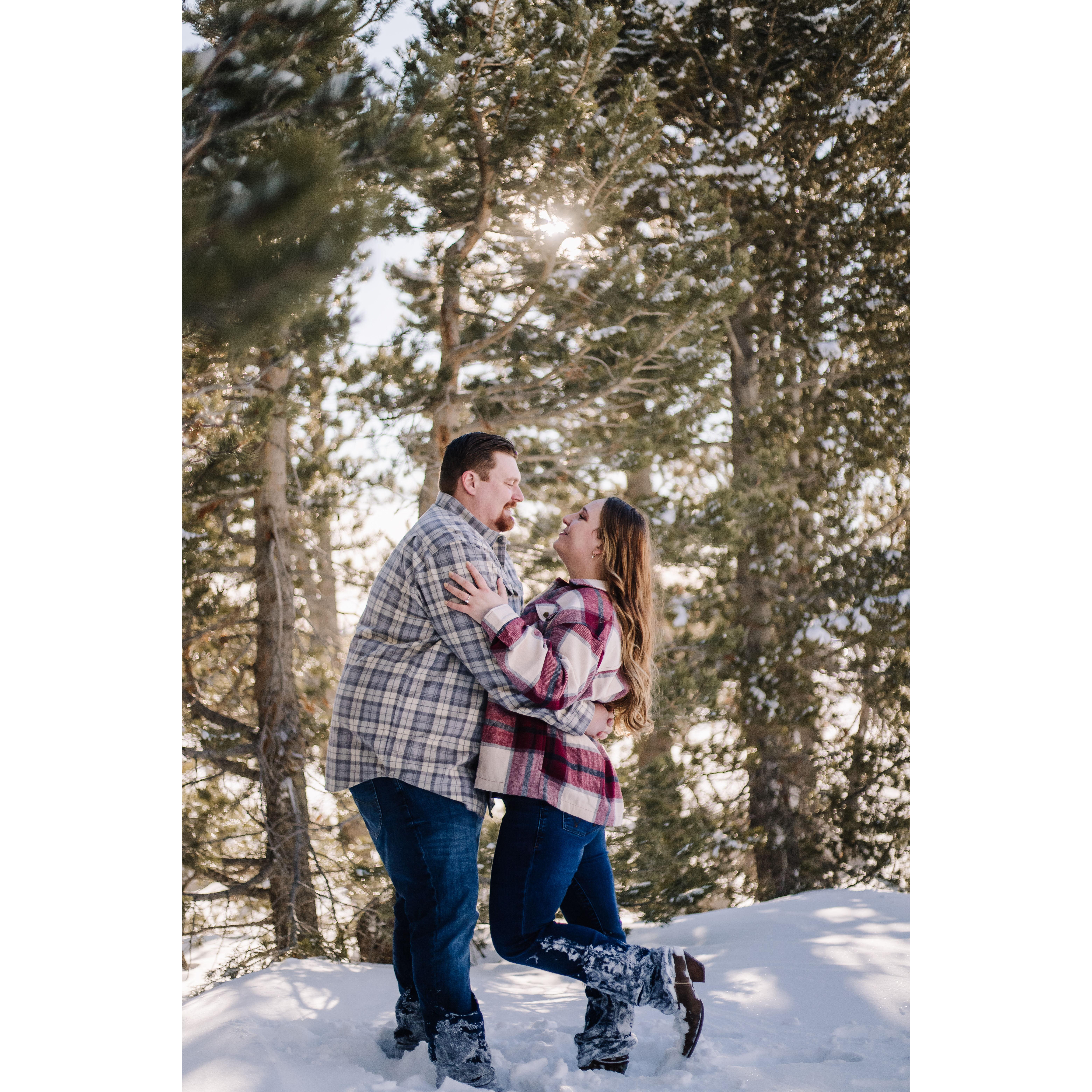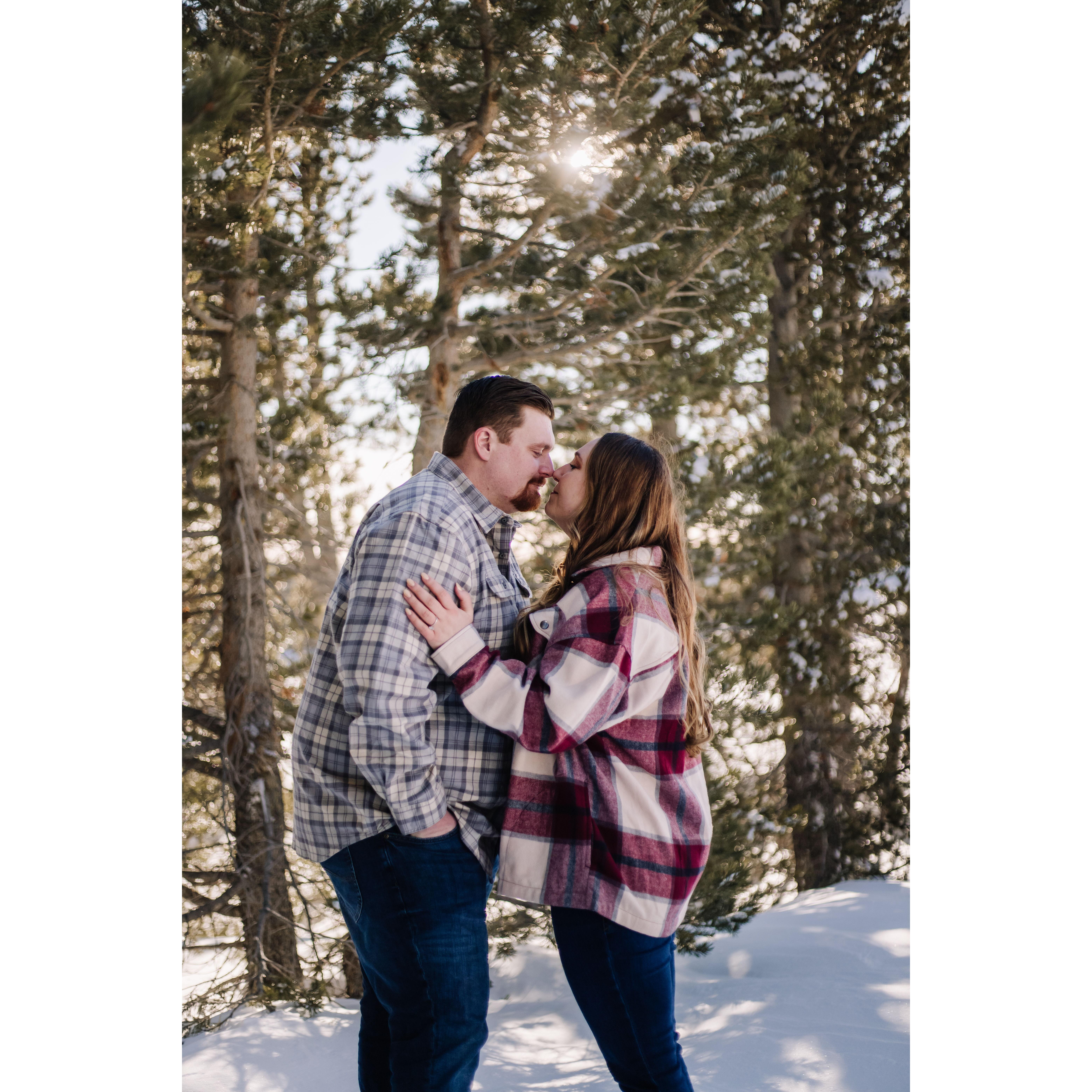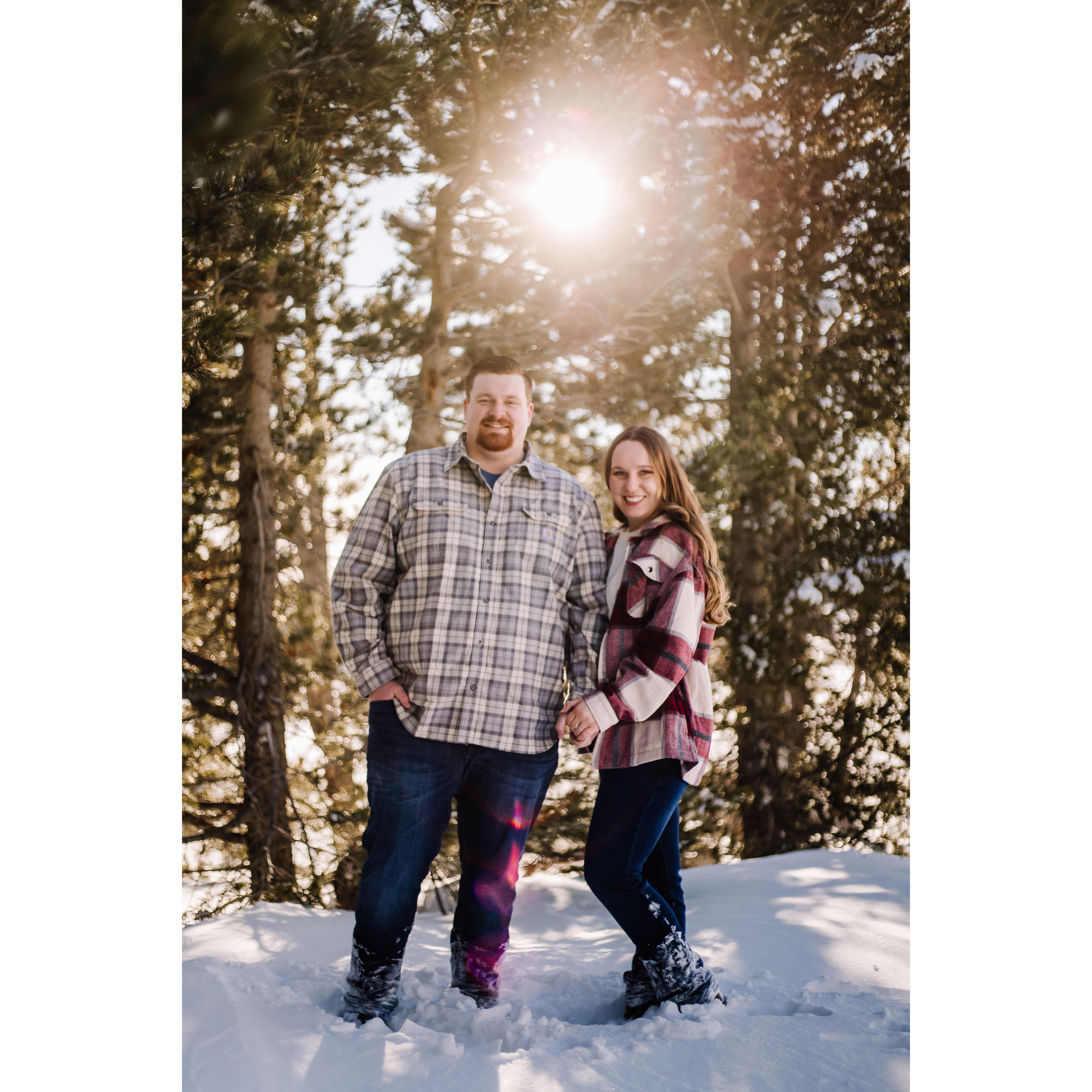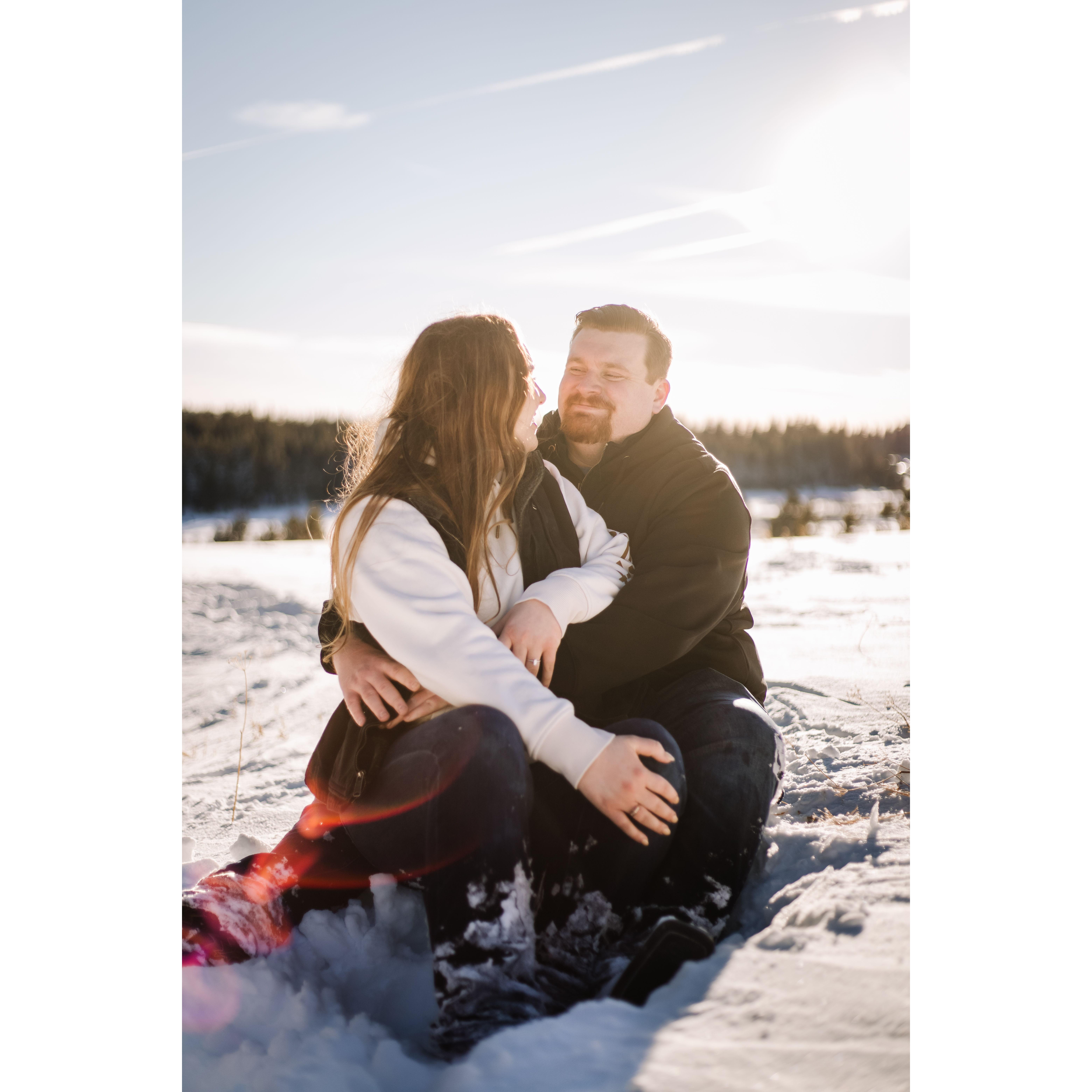 Post trekking around in 4 feet of snow for our engagement pictures.